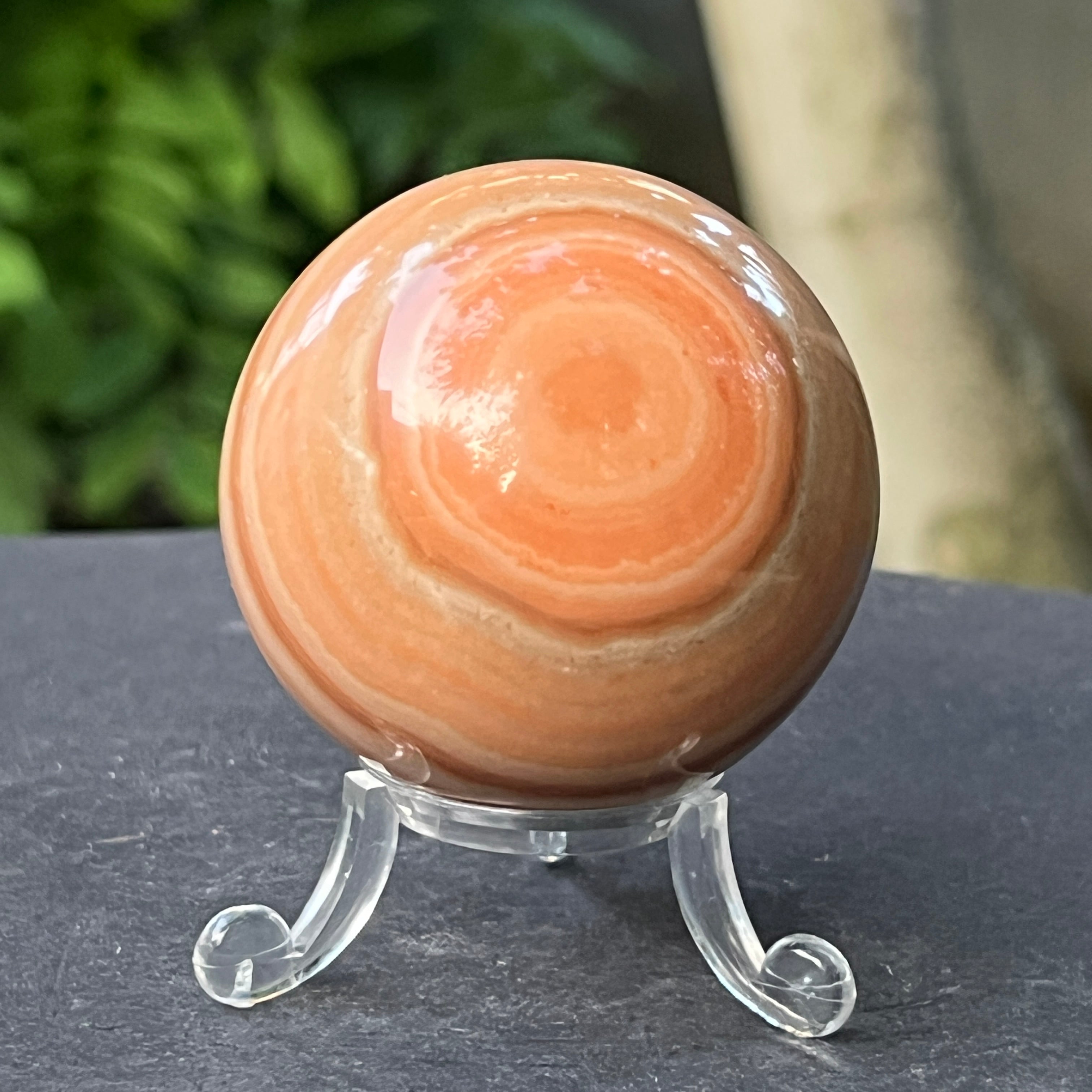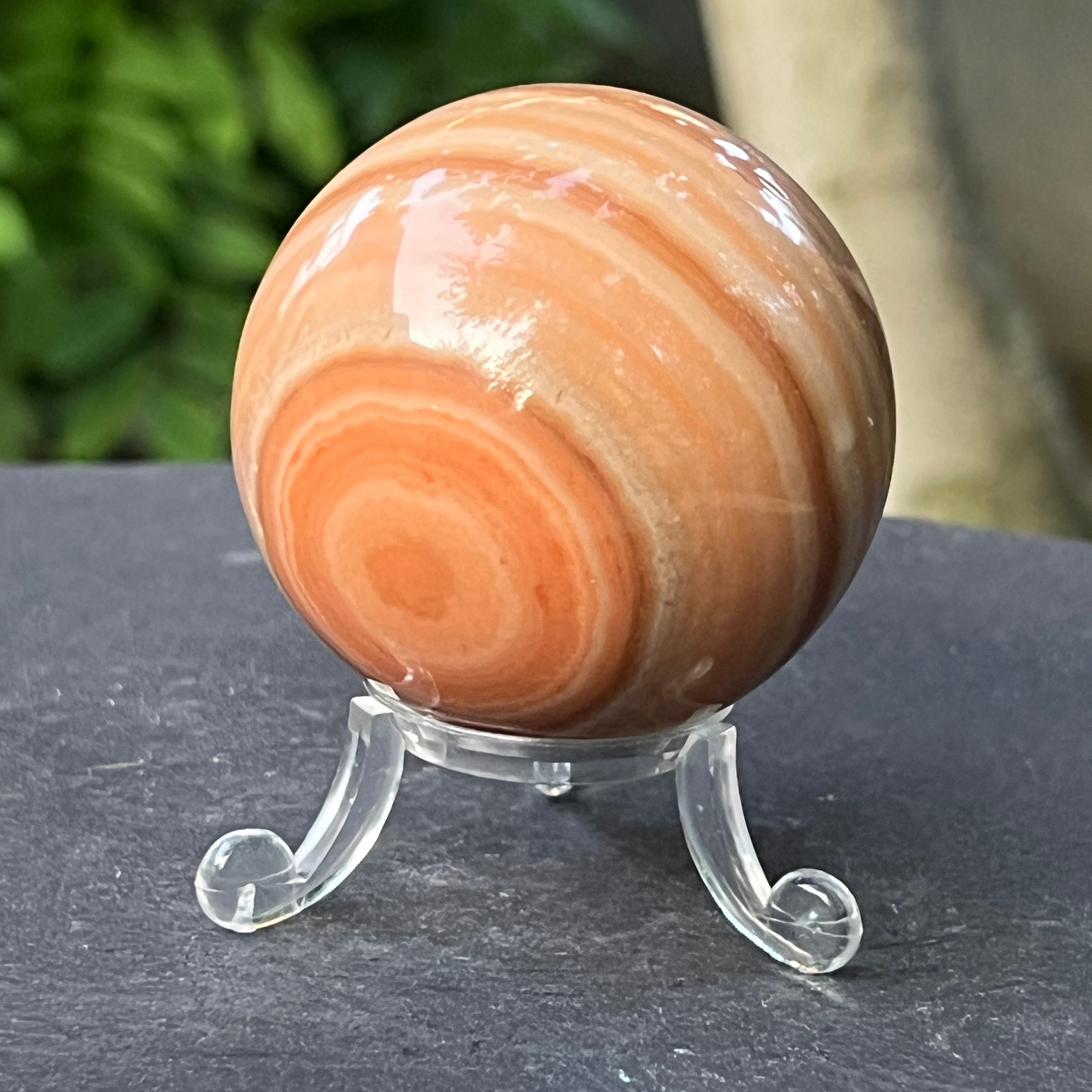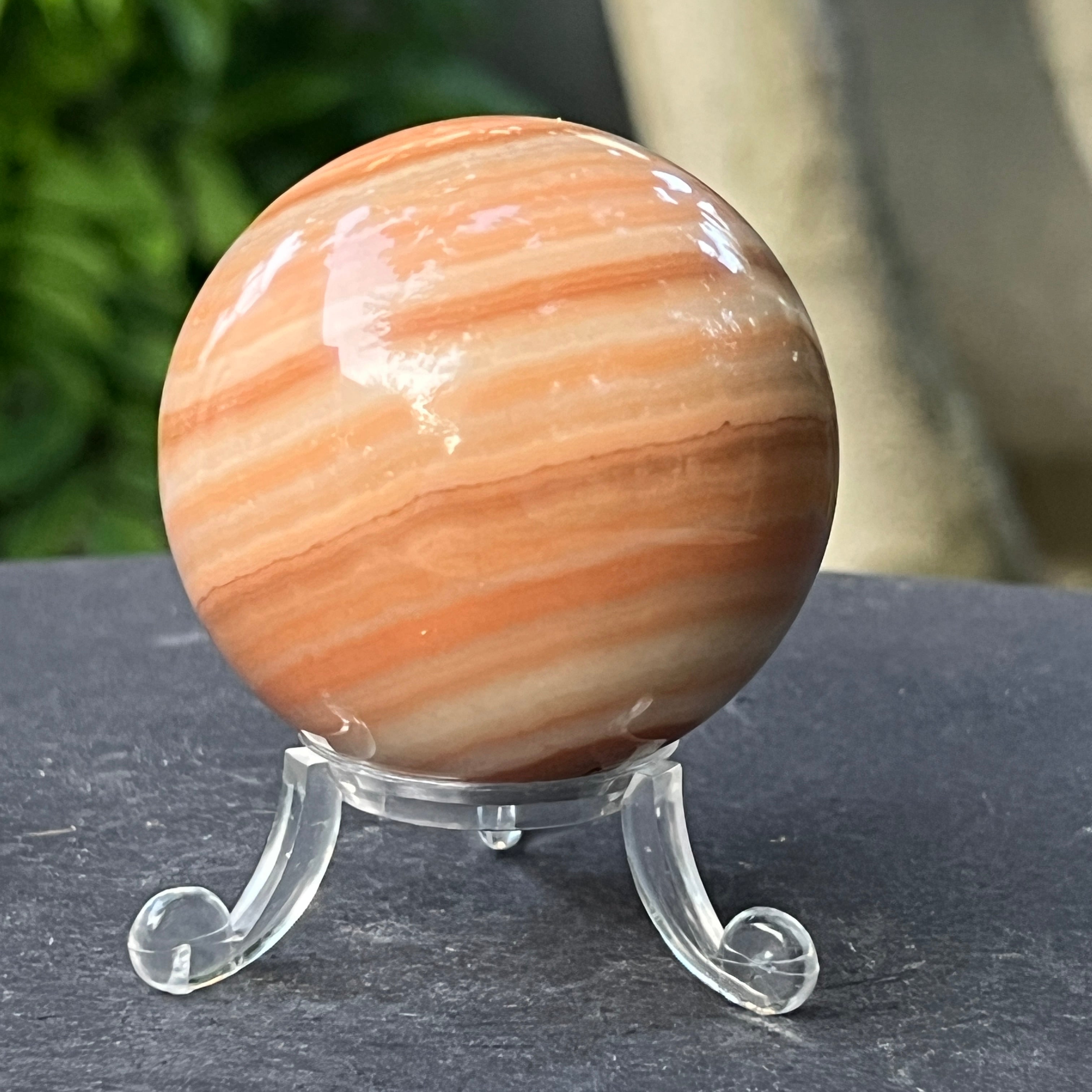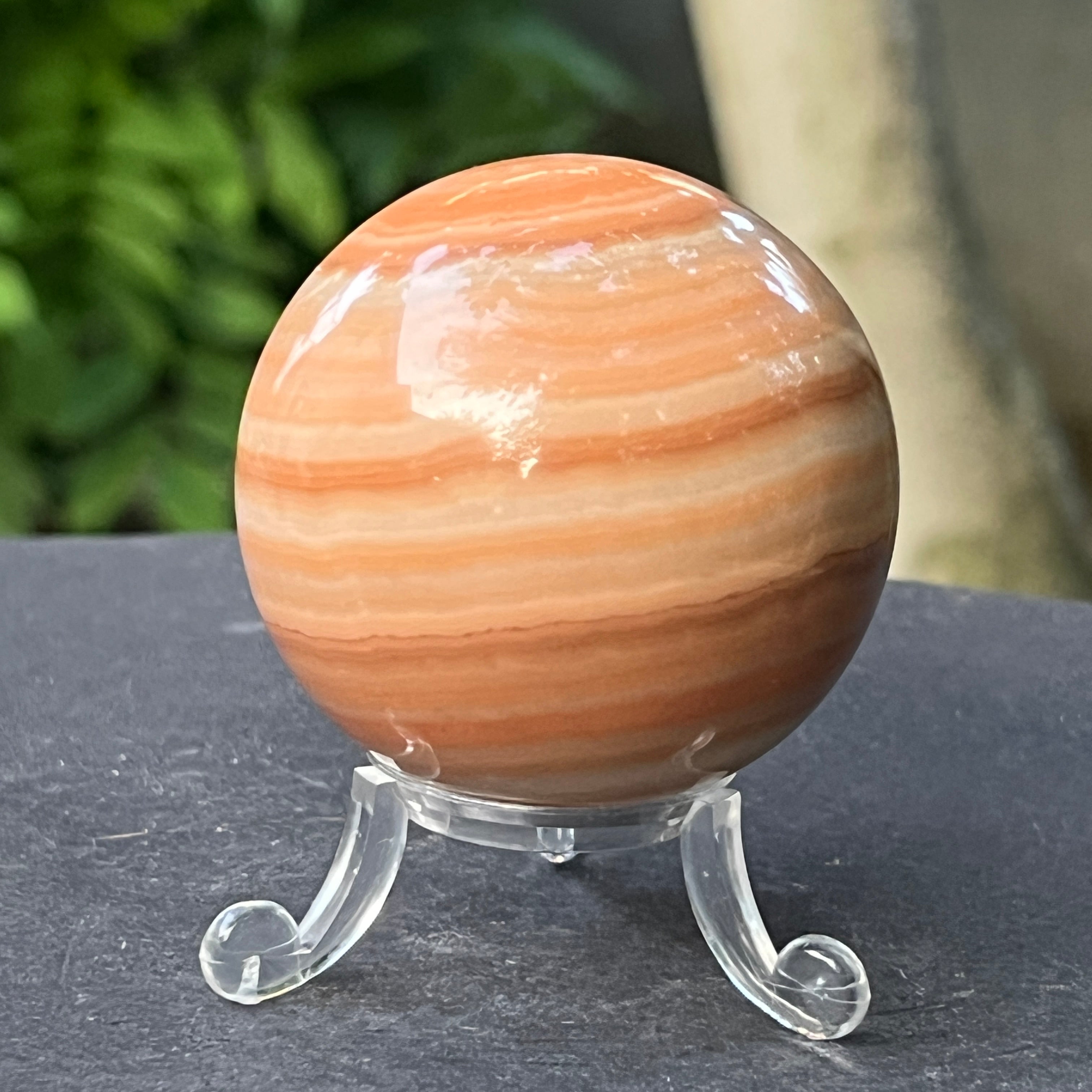 Оранжев ивициран ониксов сферичен камък | Модел 2