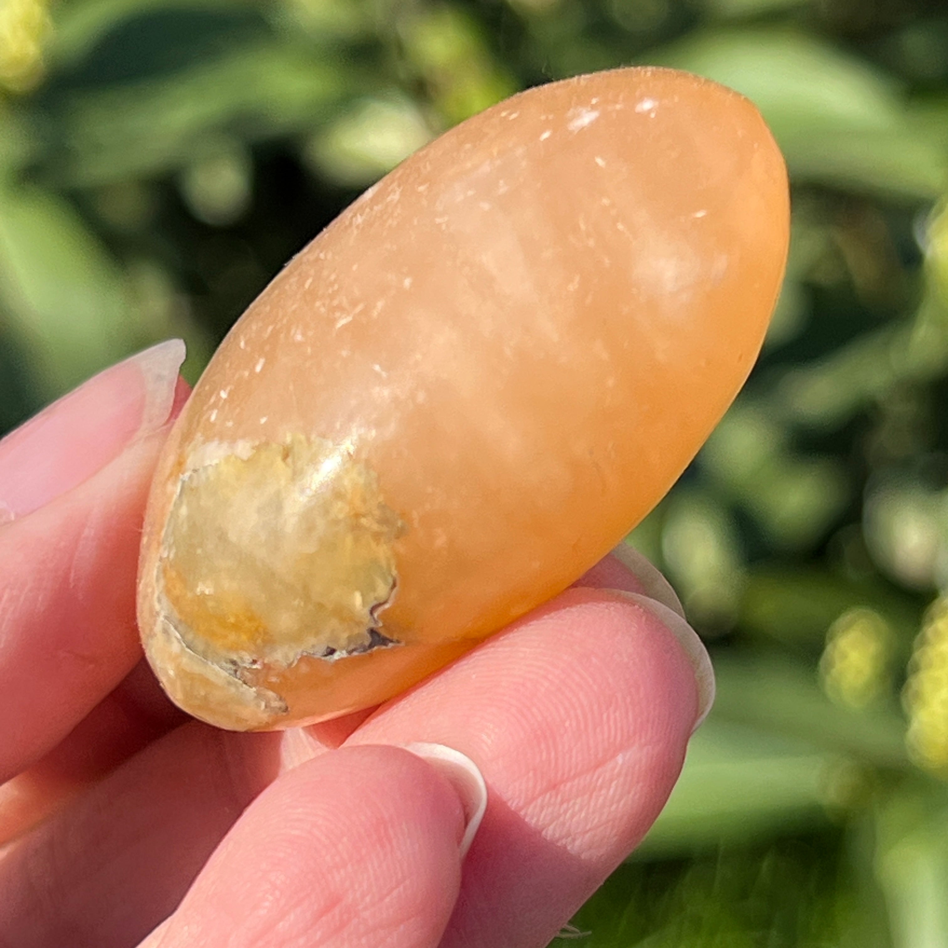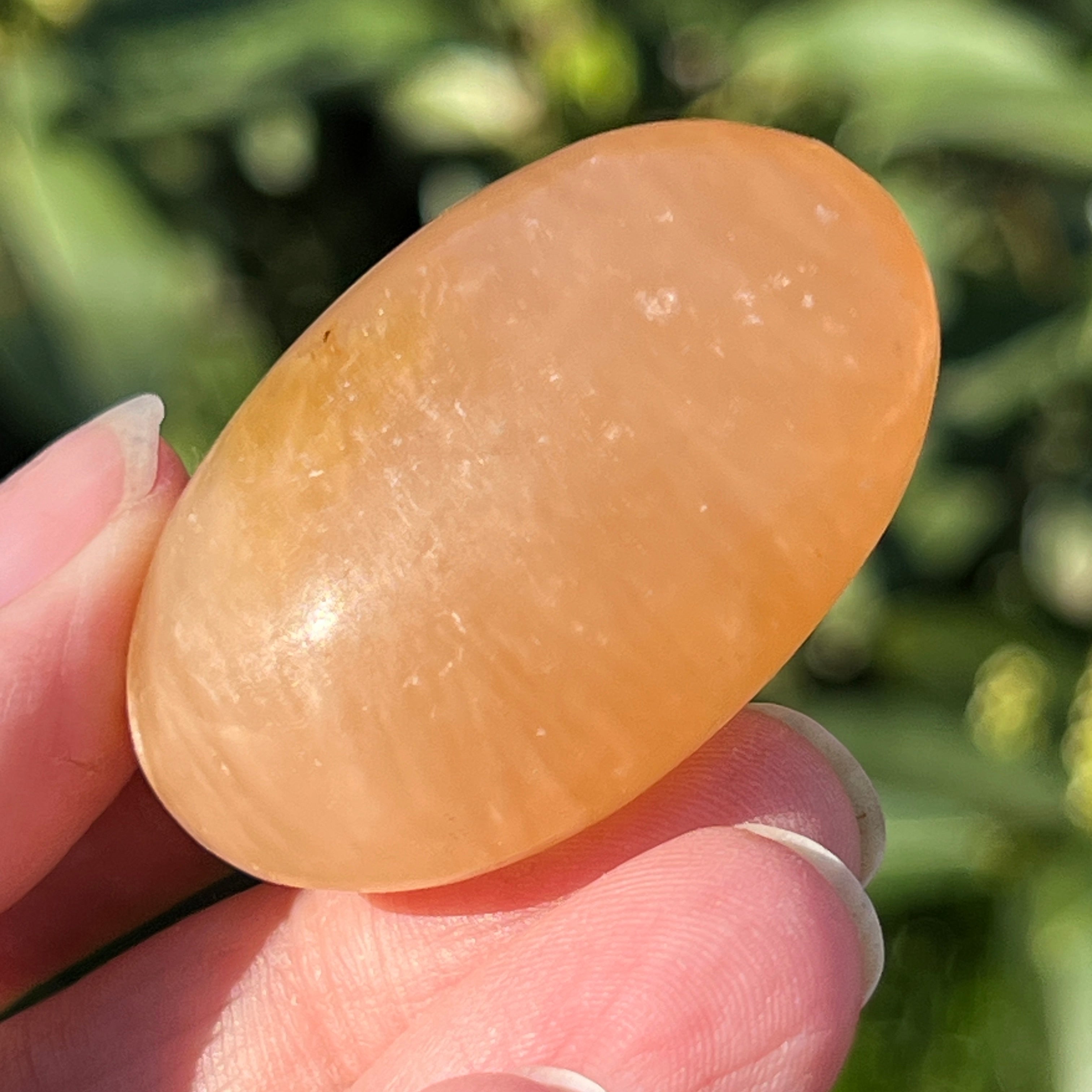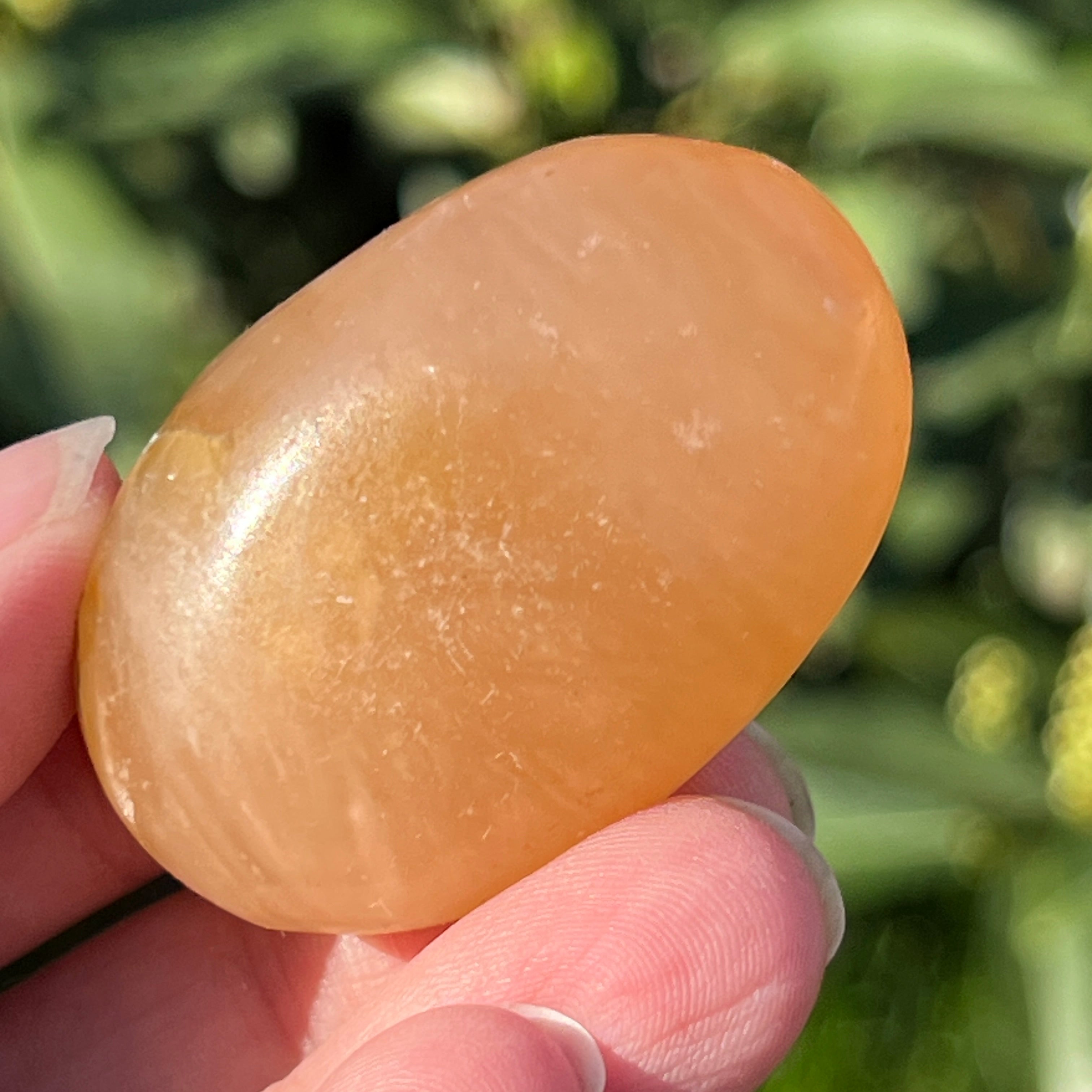 Оранжев калцит камък за длан модел 10 (от Мадагаскар)