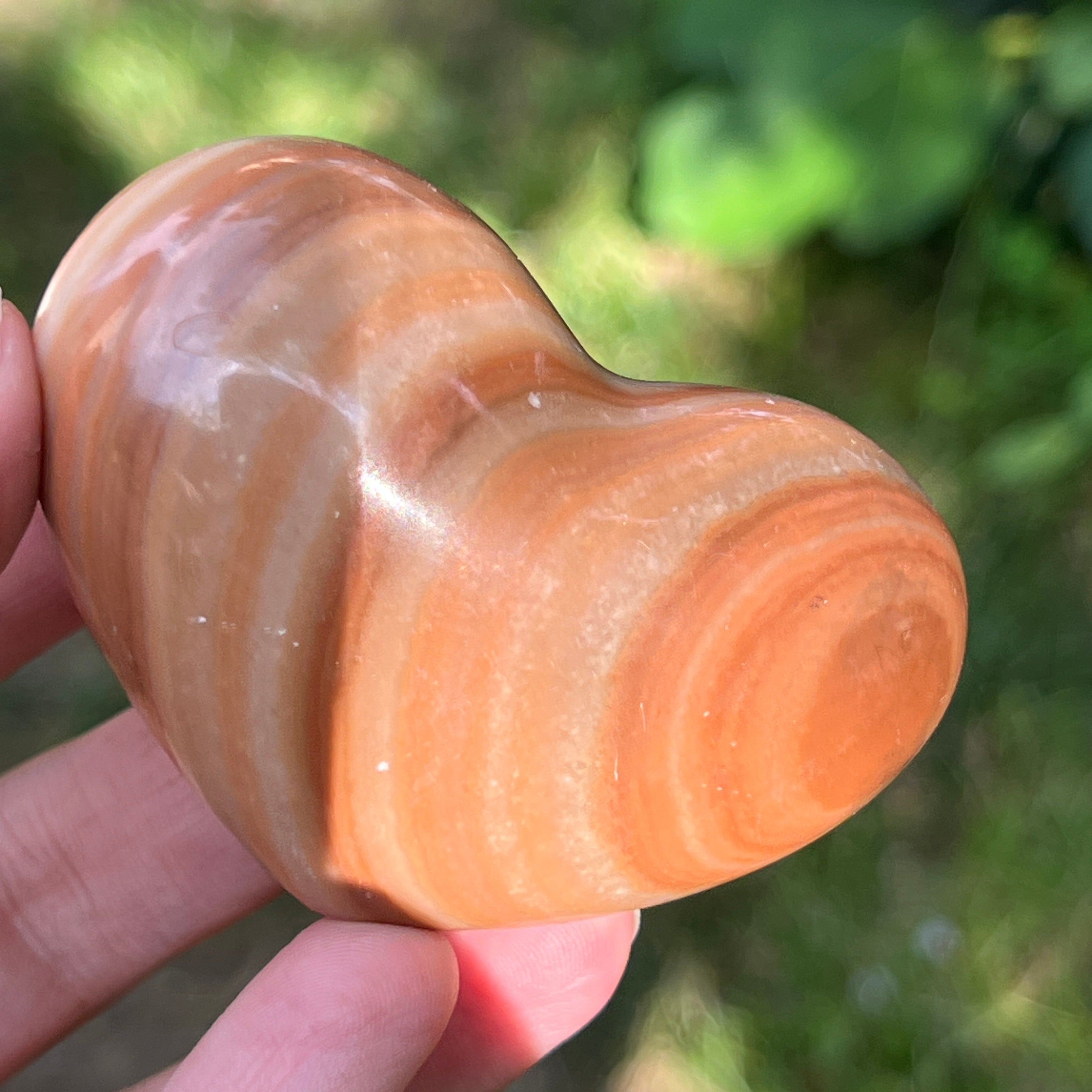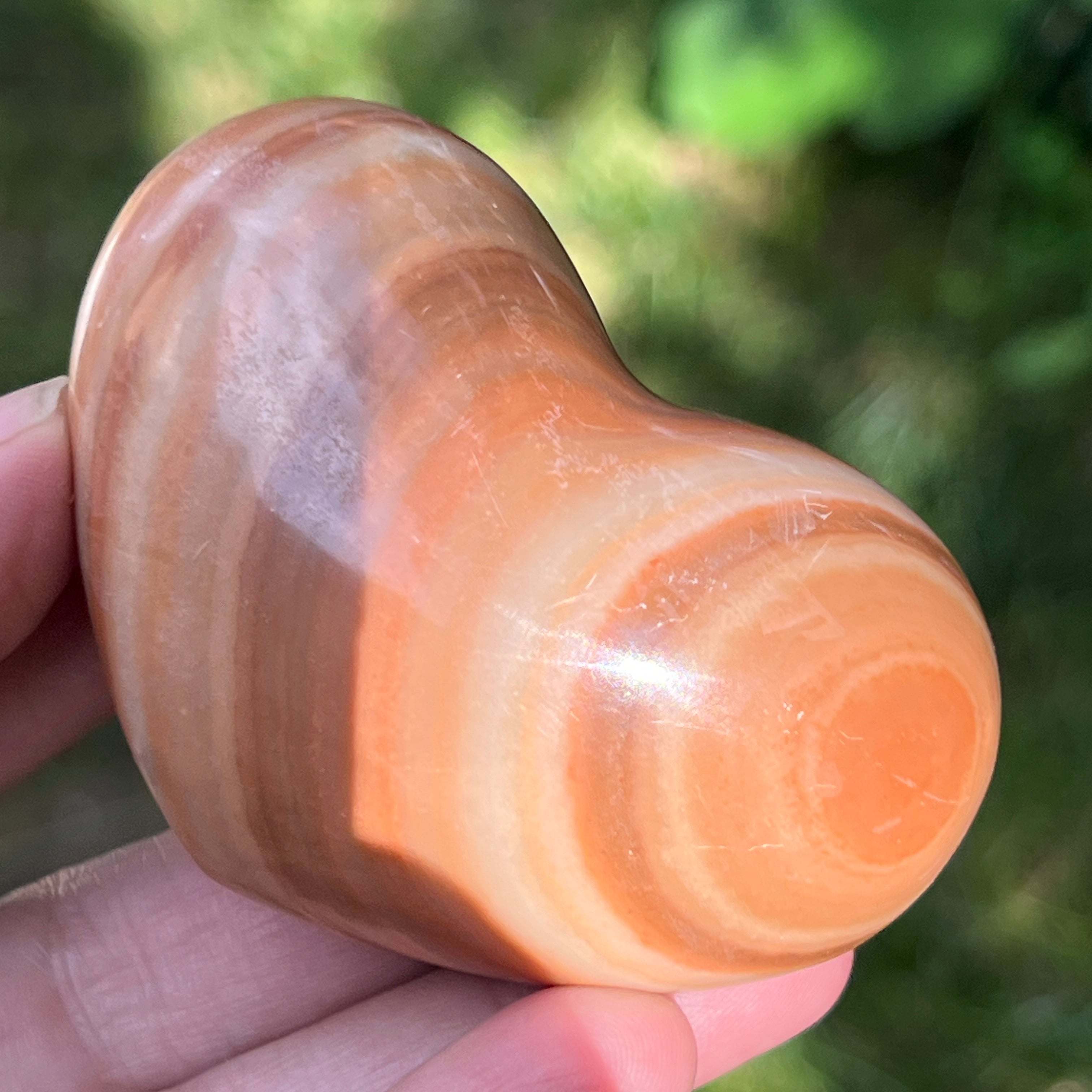 Топла сфера като залез в древна пустиня, този завладяващ камък съчетава оранжев оникс с нежни жилки от калцит, в слоеве, които изглеждат като нарисувани от времето. Живите нюанси на оранжево, мед и кехлибар пулсират с енергията на живота и носят нотка жизненост във всяко пространство. Това е артикул, който събужда сетивата и вдъхновява креативността, като същевременно запазва дълбок баланс, закотвен в енергията на земята.