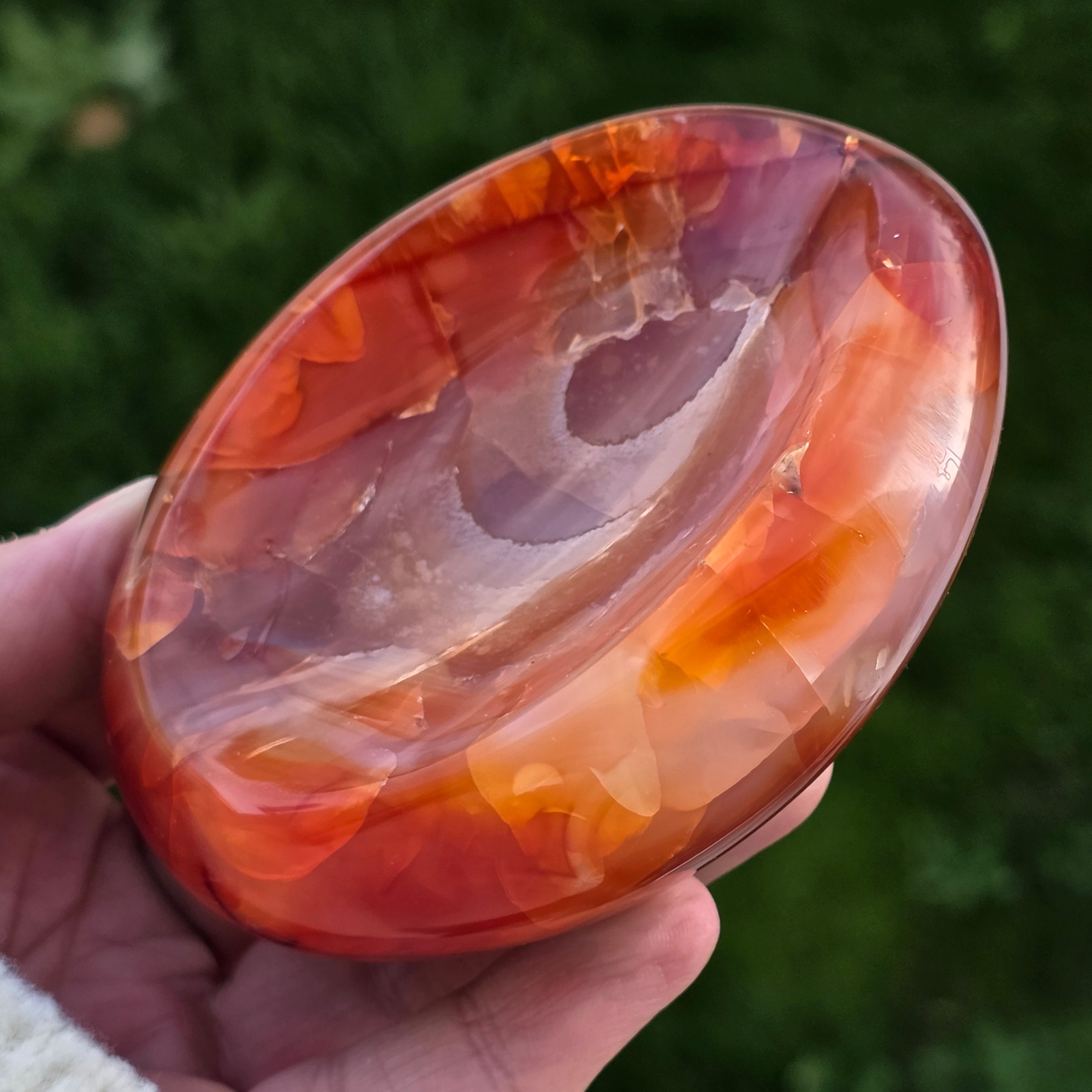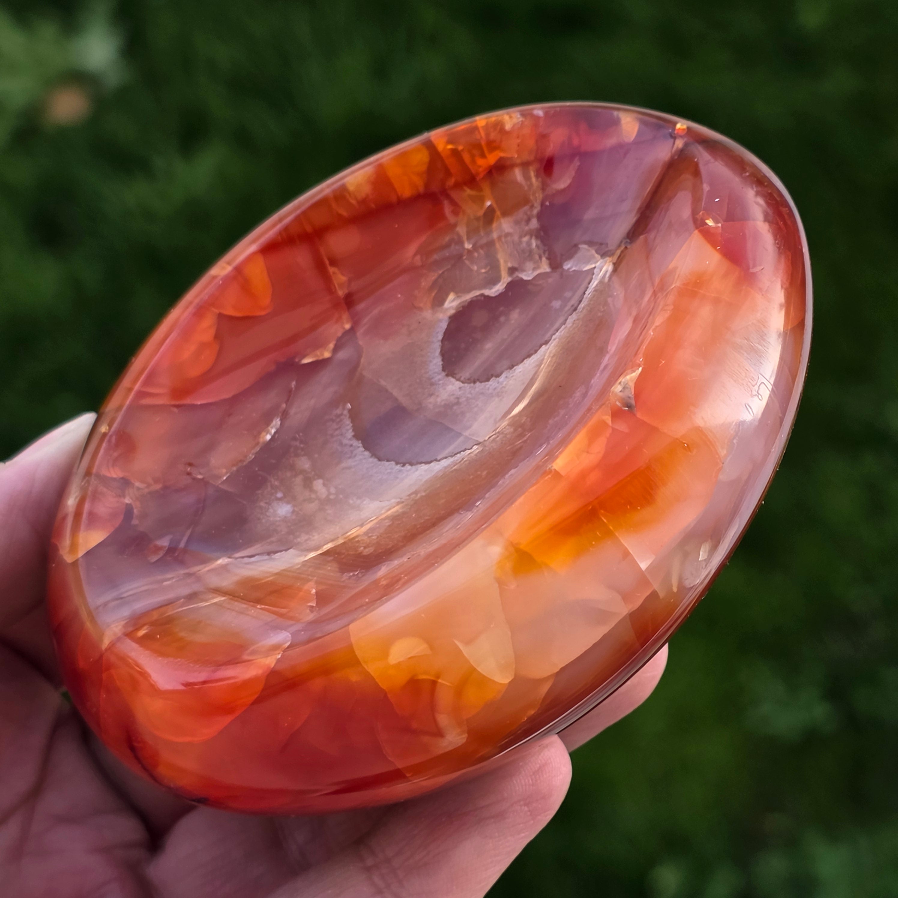 Съд от естествен карнеол, уникаленот Мадагаскар, грижливо изработен, за да подчертае естествената красота на камъка.