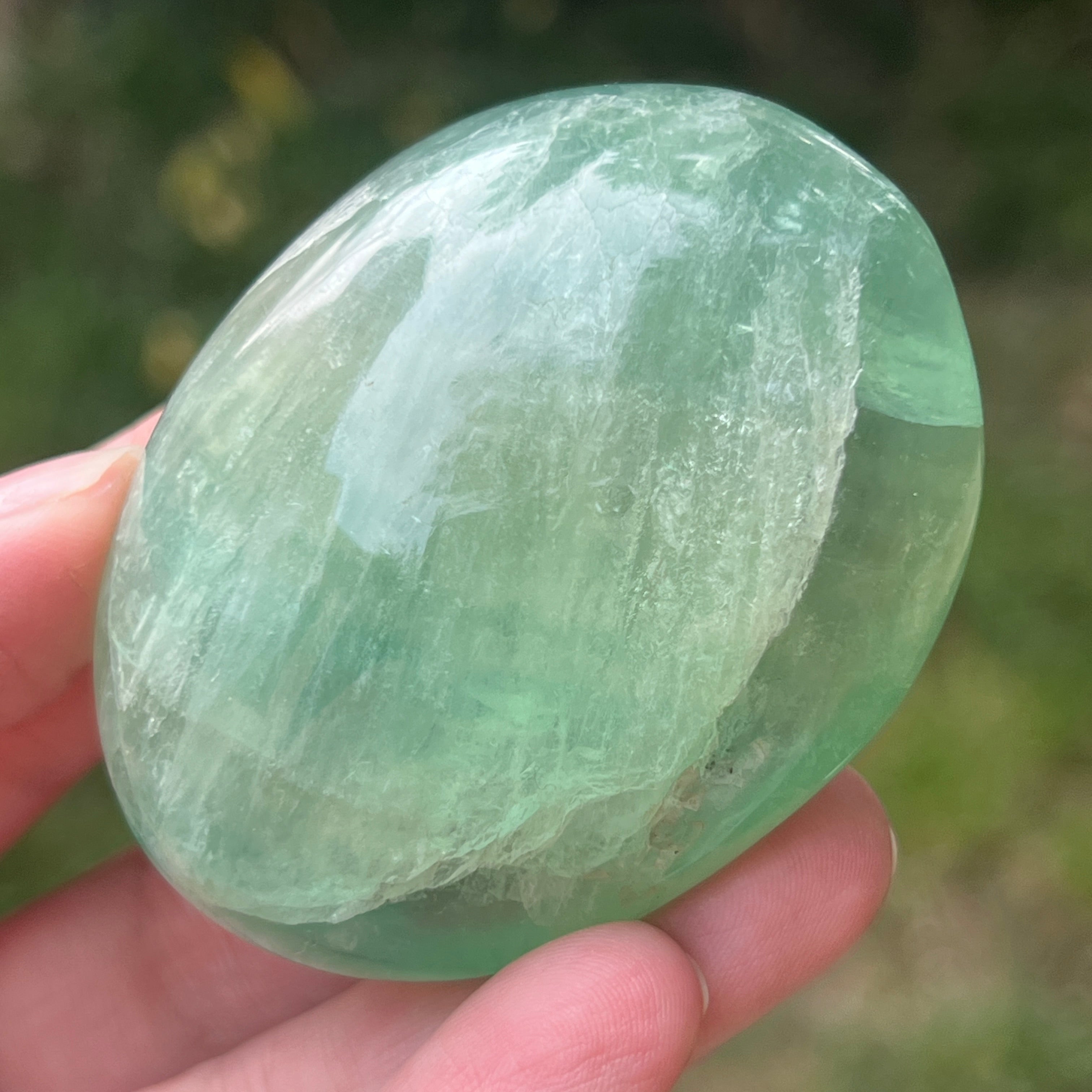 Зеленият флуорит балансира сърдечната чакра и помага за подобряване на междуличностните отношения. Той свързва ума и сърцето, за да донесе баланс между мислите и емоциите.