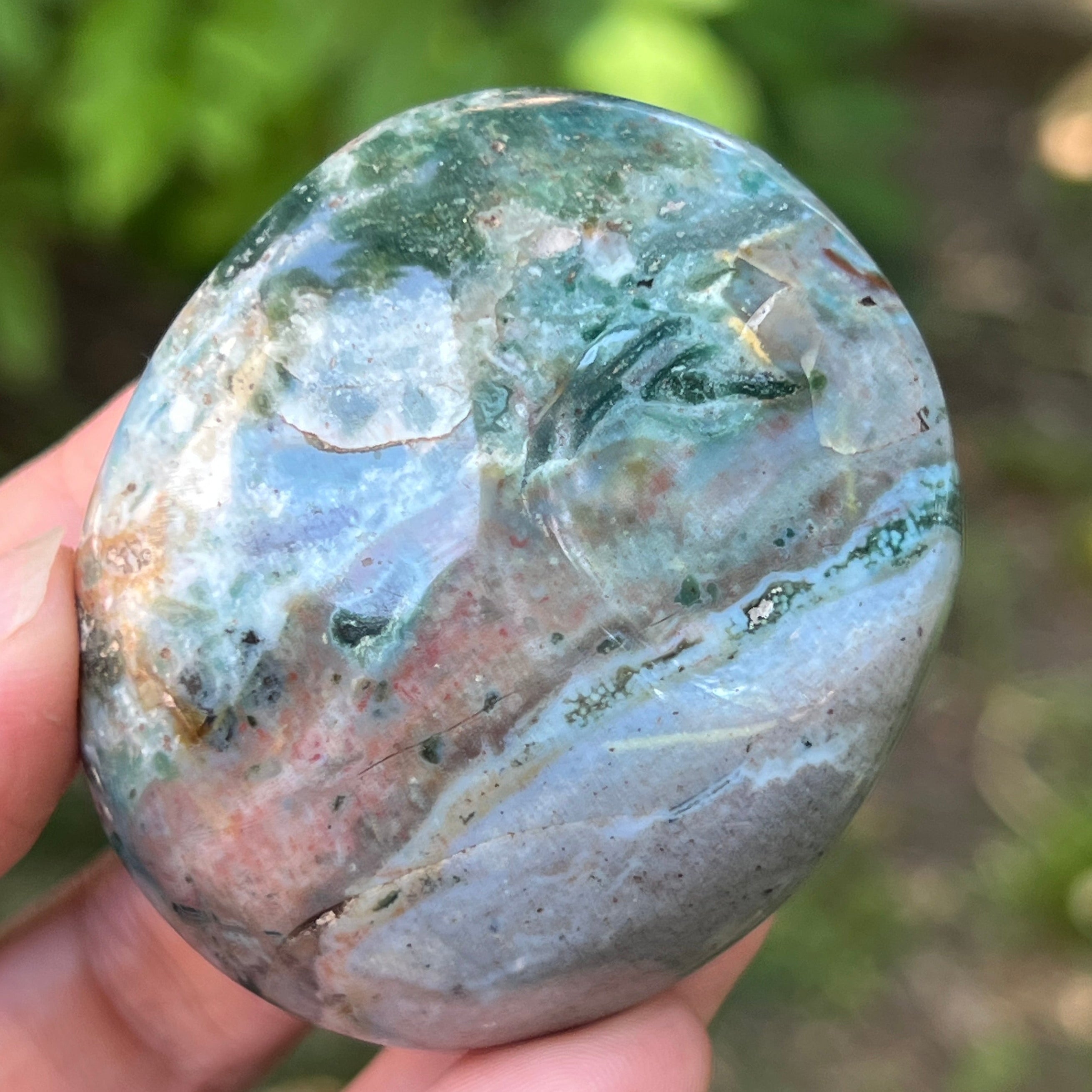 Също така, той е свързан с чакрата на гърлото, която е свързана с комуникацията и творчеството. Смята се, че океанският яспис може да стимулира тези аспекти в пространствата, улеснявайки ясната комуникация, творческото изразяване и вдъхновението.