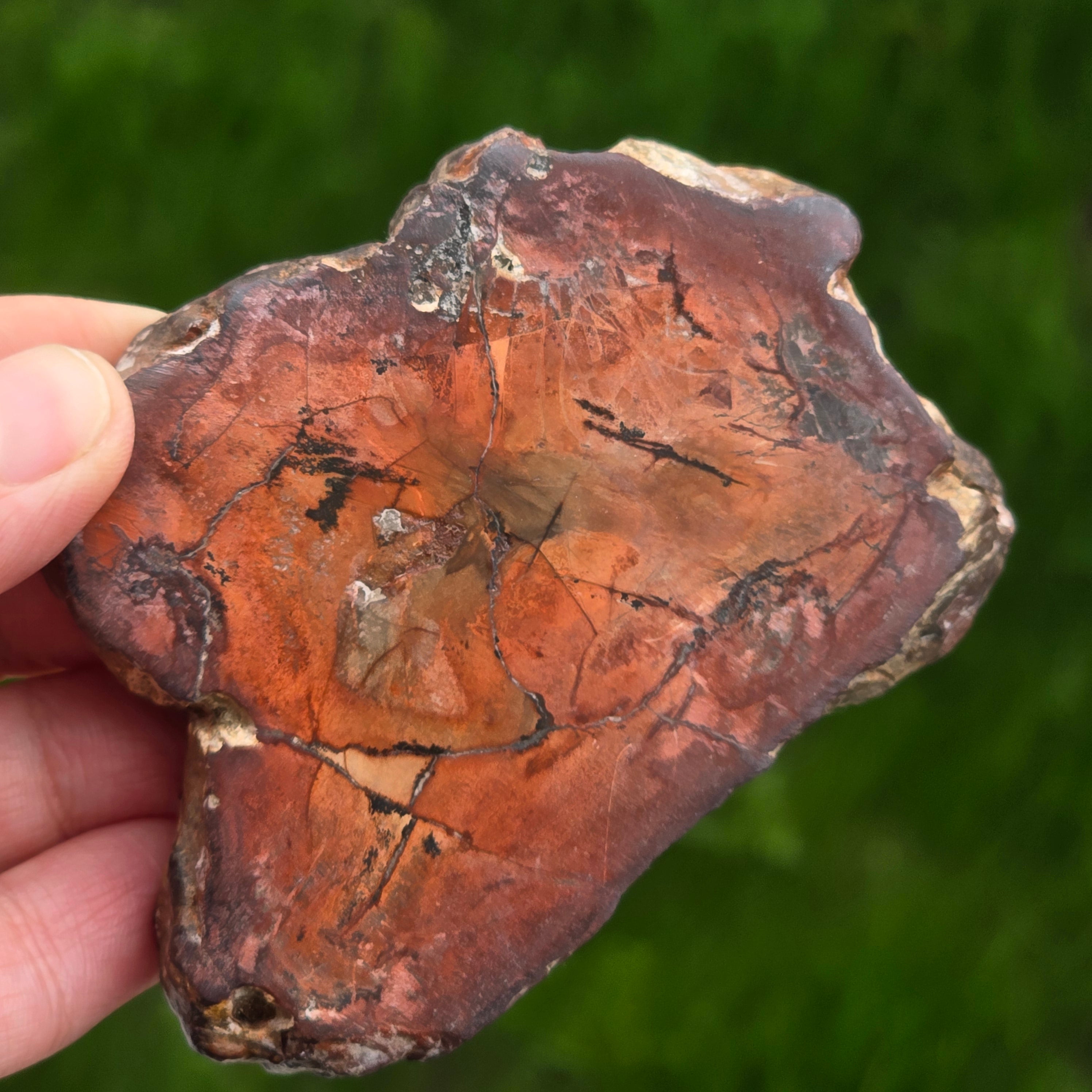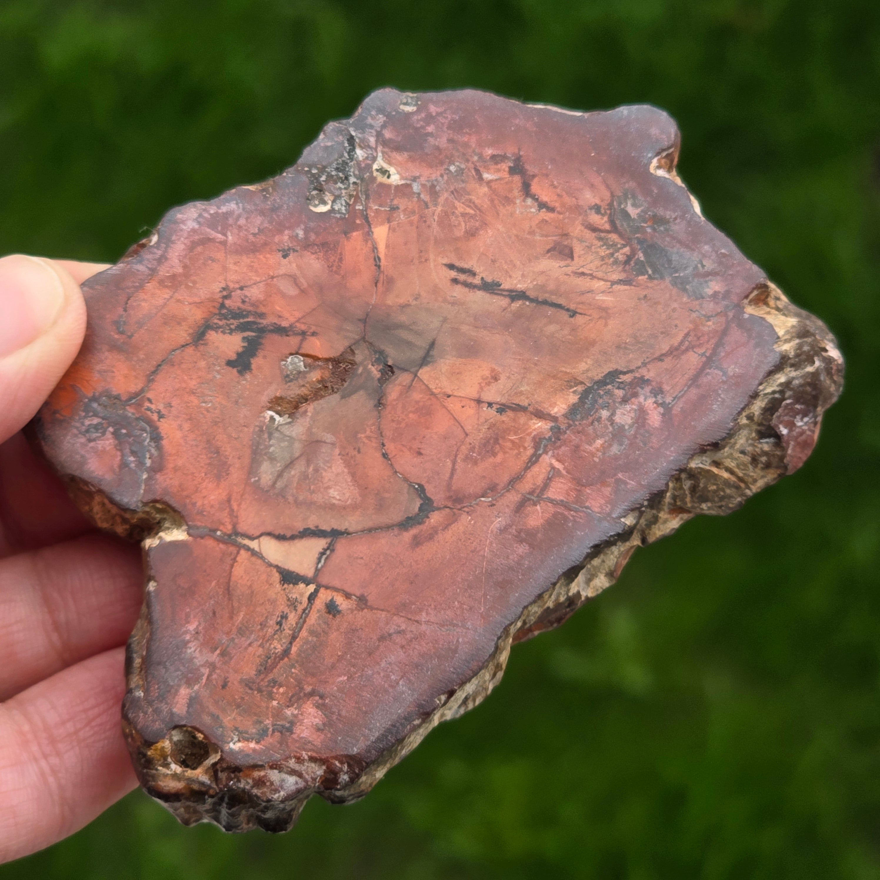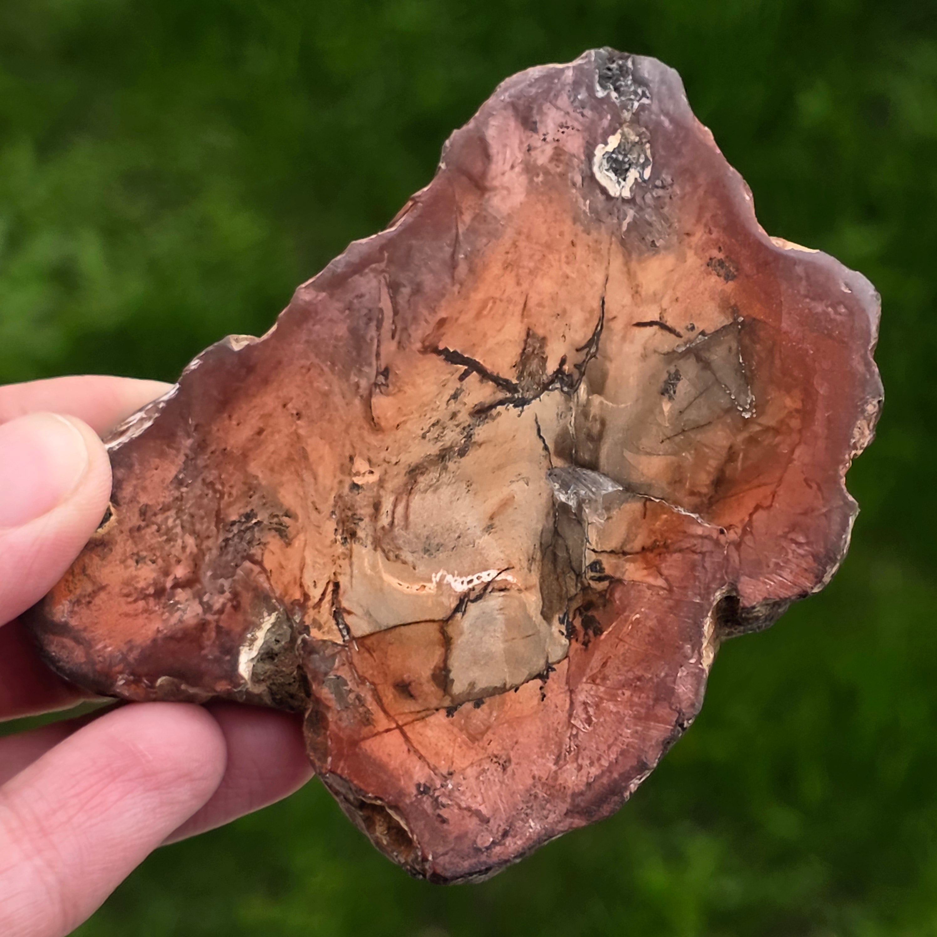 С течение на времето цветовете на вкамененото дърво се развиват поради минерални примеси: желязото добавя червеникави или оранжеви нюанси, манганът носи черни и лилави тонове, а медта може да въведе зеленикави или синкави акценти. Въпреки че на пръв поглед изглежда като дърво, този камък е напълно минерализиран, притежаващ Твърдост по Моос около 6,5 – 7, подобно на това на кварца.