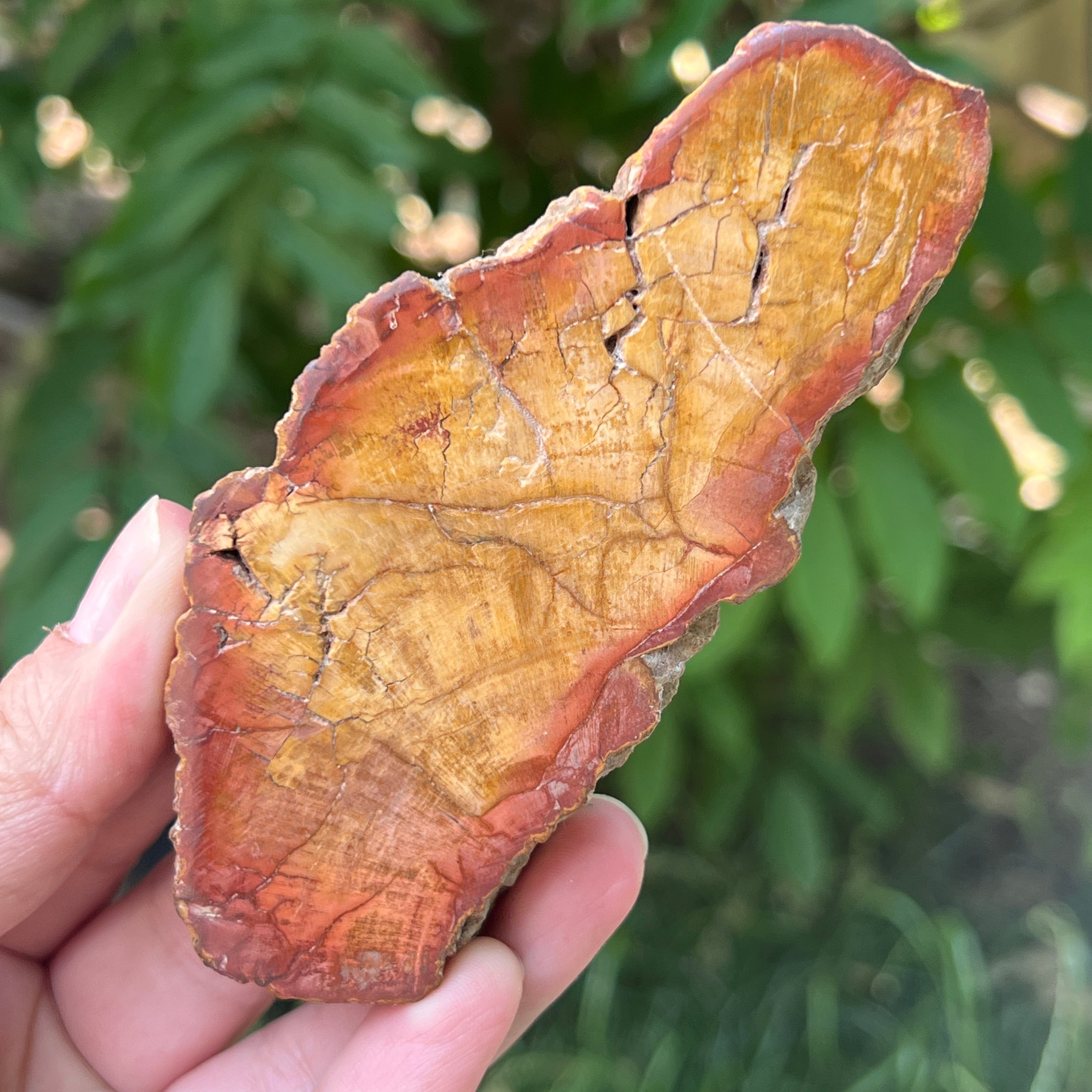 С течение на времето цветовете на вкамененото дърво се развиват поради минерални примеси: желязото добавя червеникави или оранжеви нюанси, манганът носи черни и лилави тонове, а медта може да въведе зеленикави или синкави акценти. Въпреки че на пръв поглед изглежда като дърво, този камък е напълно минерализиран, притежаващ Твърдост по Моос около 6,5 – 7, подобно на това на кварца.