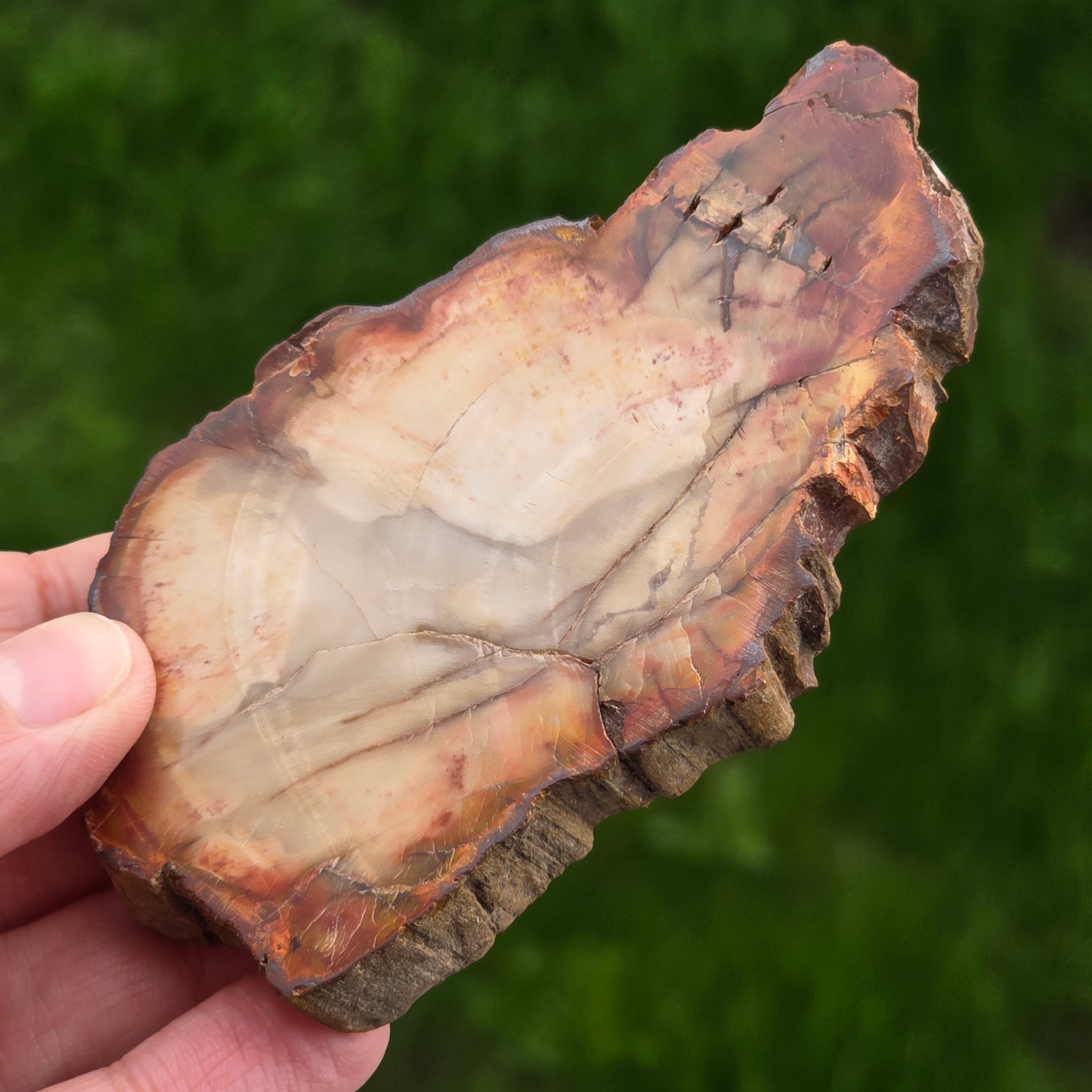 С течение на времето цветовете на вкамененото дърво се развиват поради минерални примеси: желязото добавя червеникави или оранжеви нюанси, манганът носи черни и лилави тонове, а медта може да въведе зеленикави или синкави акценти. Въпреки че на пръв поглед изглежда като дърво, този камък е напълно минерализиран, притежаващ Твърдост по Моос около 6,5 – 7, подобно на това на кварца.