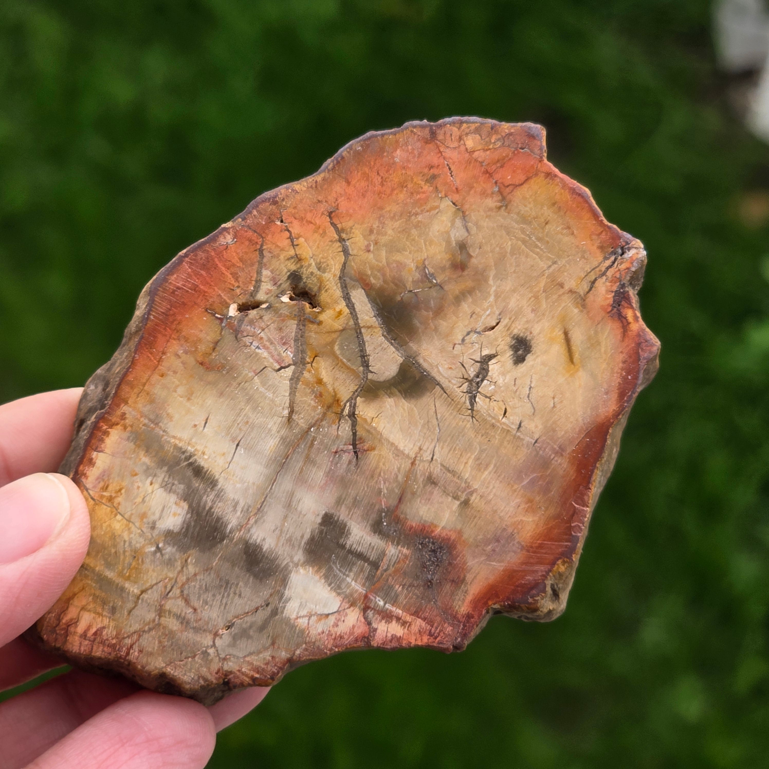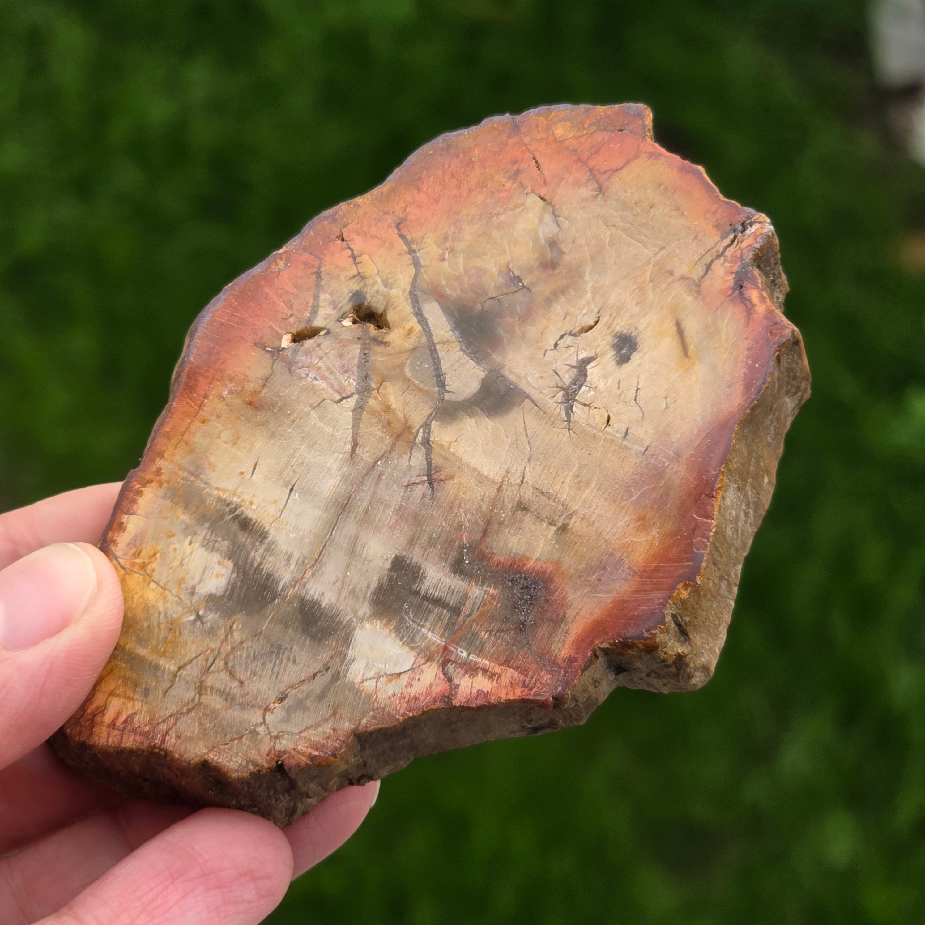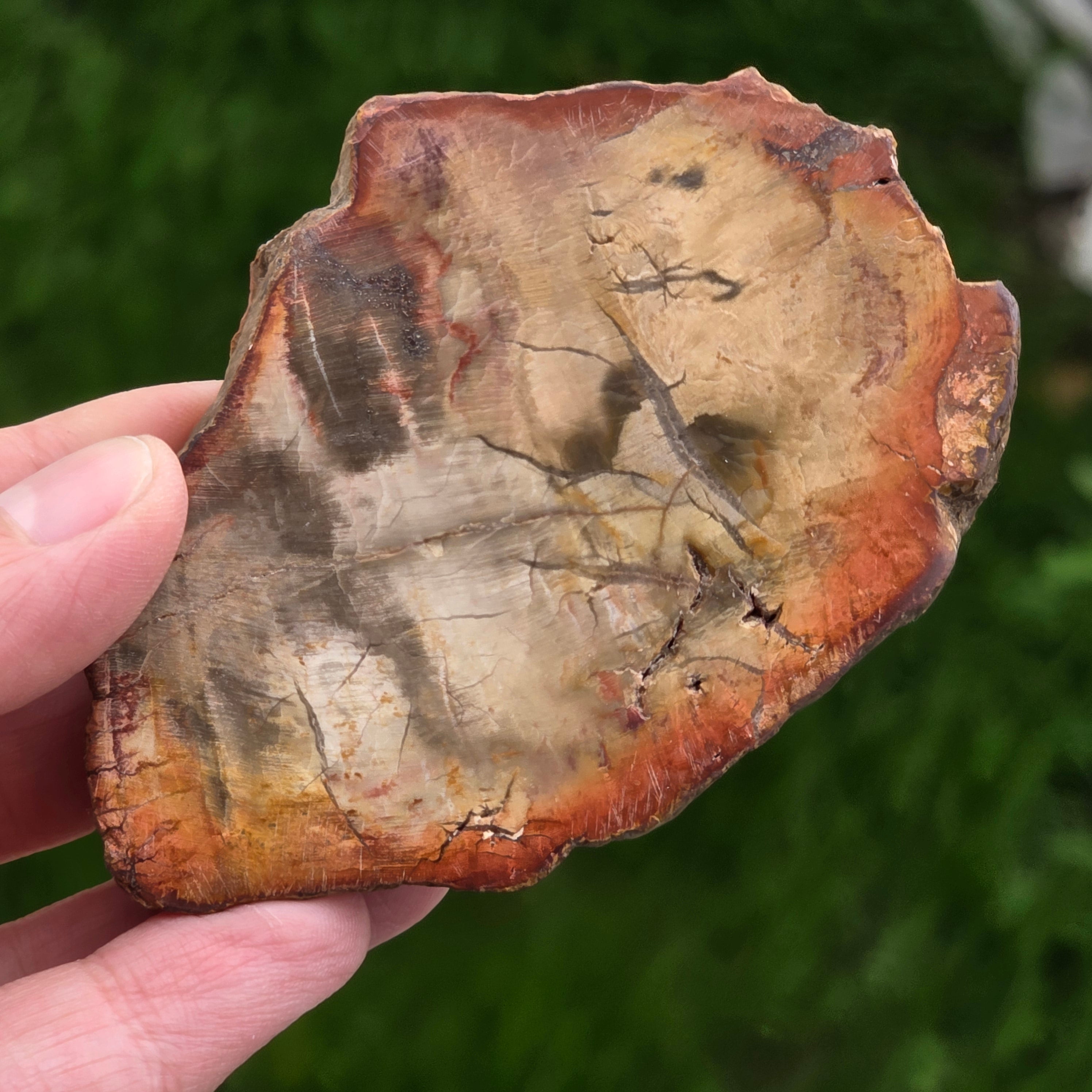 С течение на времето цветовете на вкамененото дърво се развиват поради минерални примеси: желязото добавя червеникави или оранжеви нюанси, манганът носи черни и лилави тонове, а медта може да въведе зеленикави или синкави акценти. Въпреки че на пръв поглед изглежда като дърво, този камък е напълно минерализиран, притежаващ Твърдост по Моос около 6,5 – 7, подобно на това на кварца.