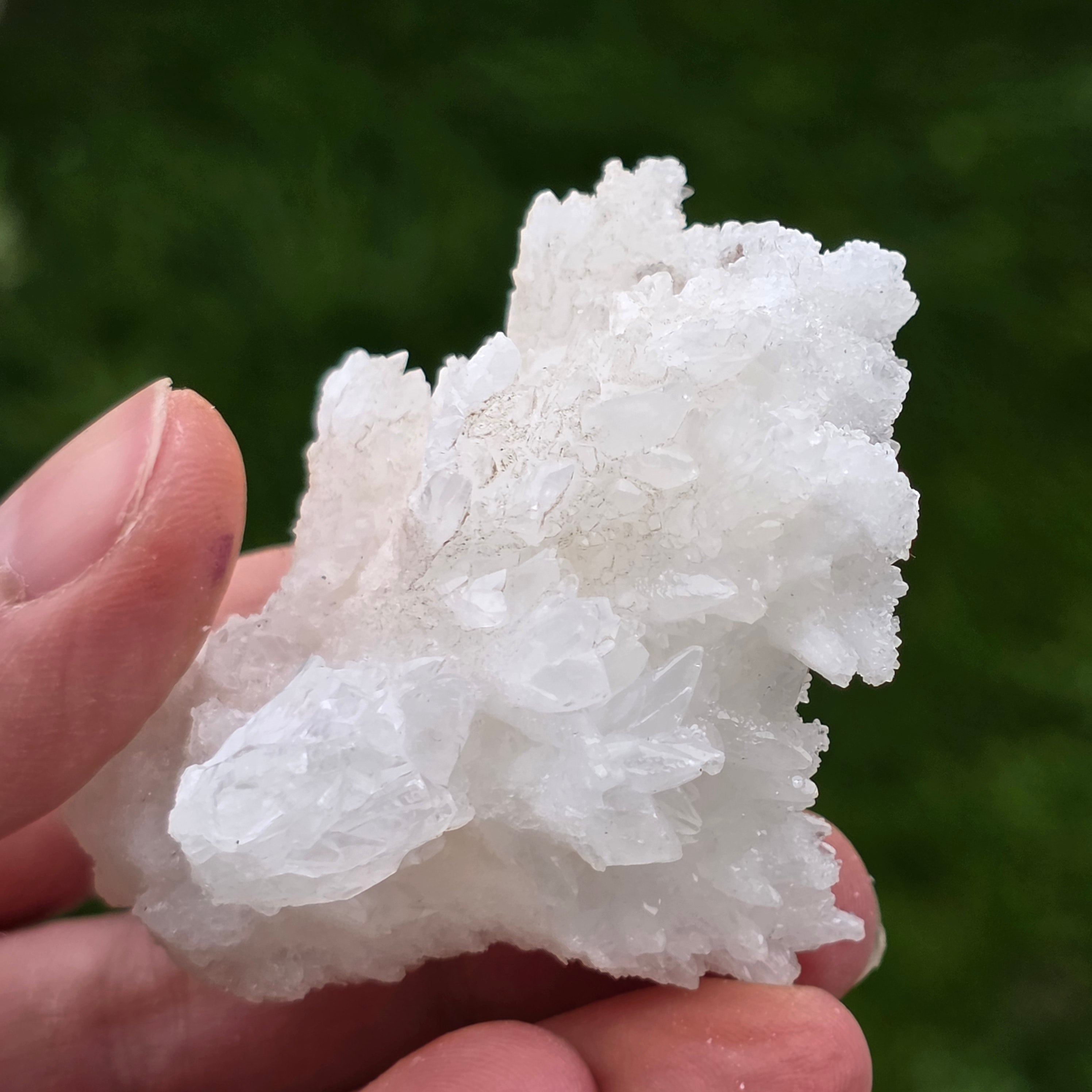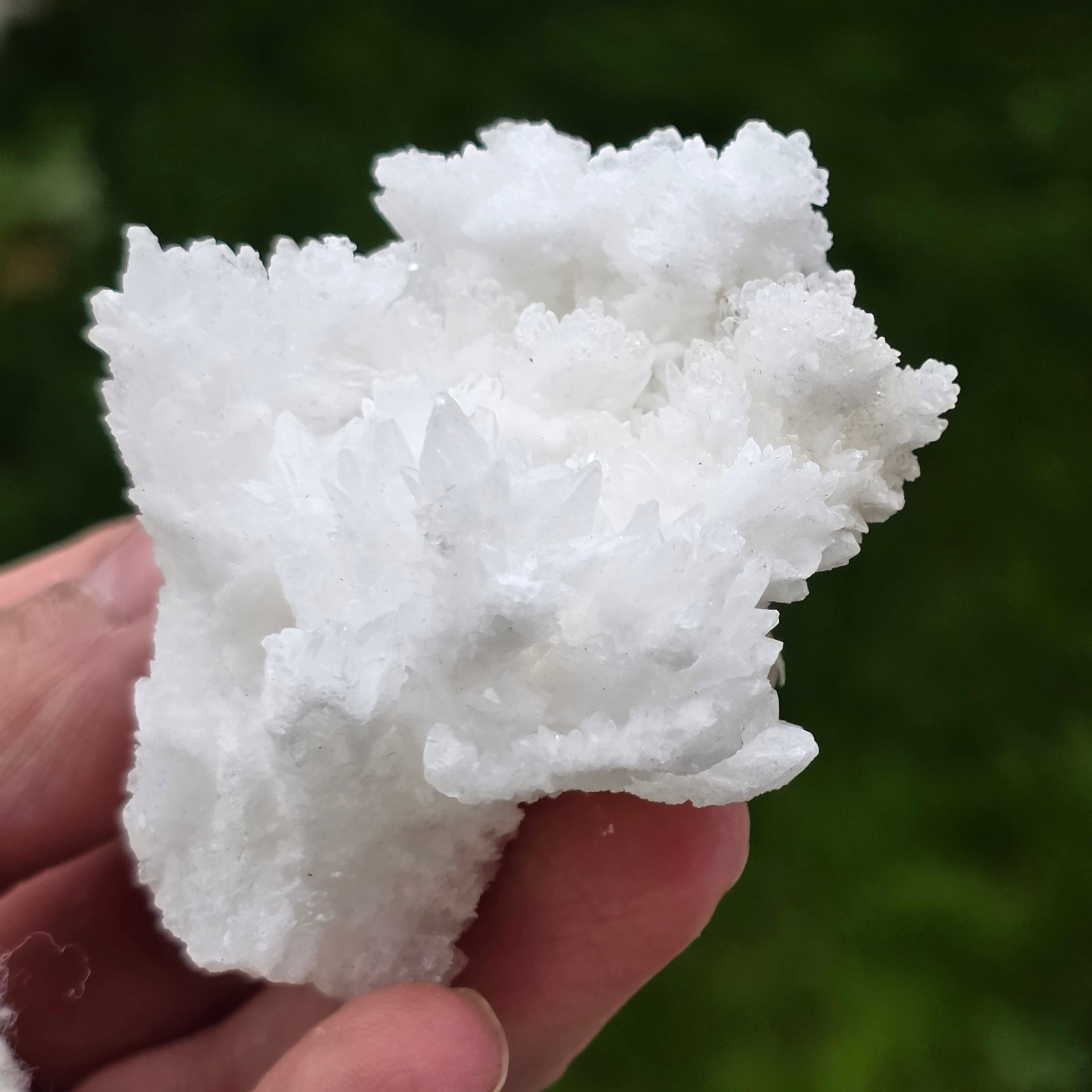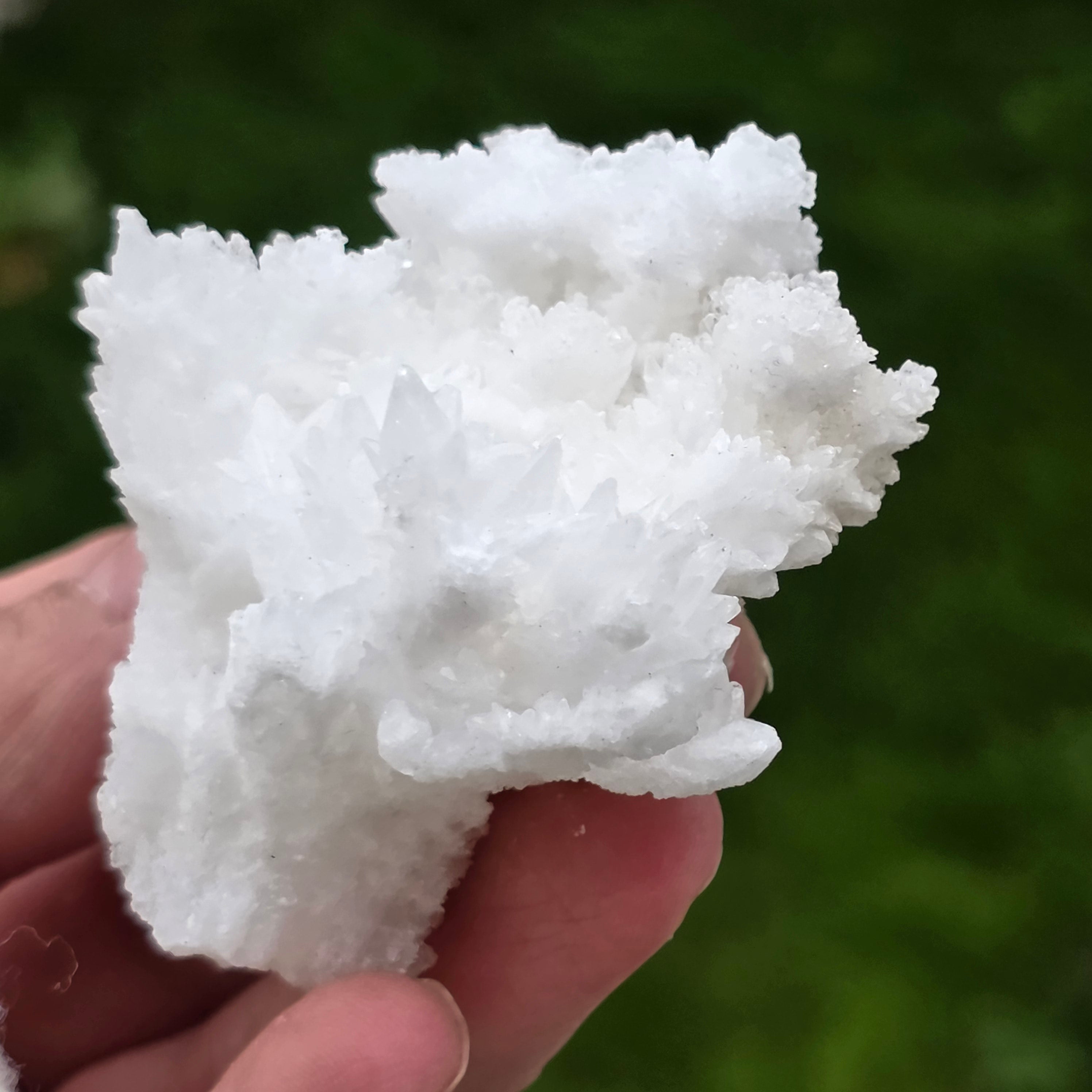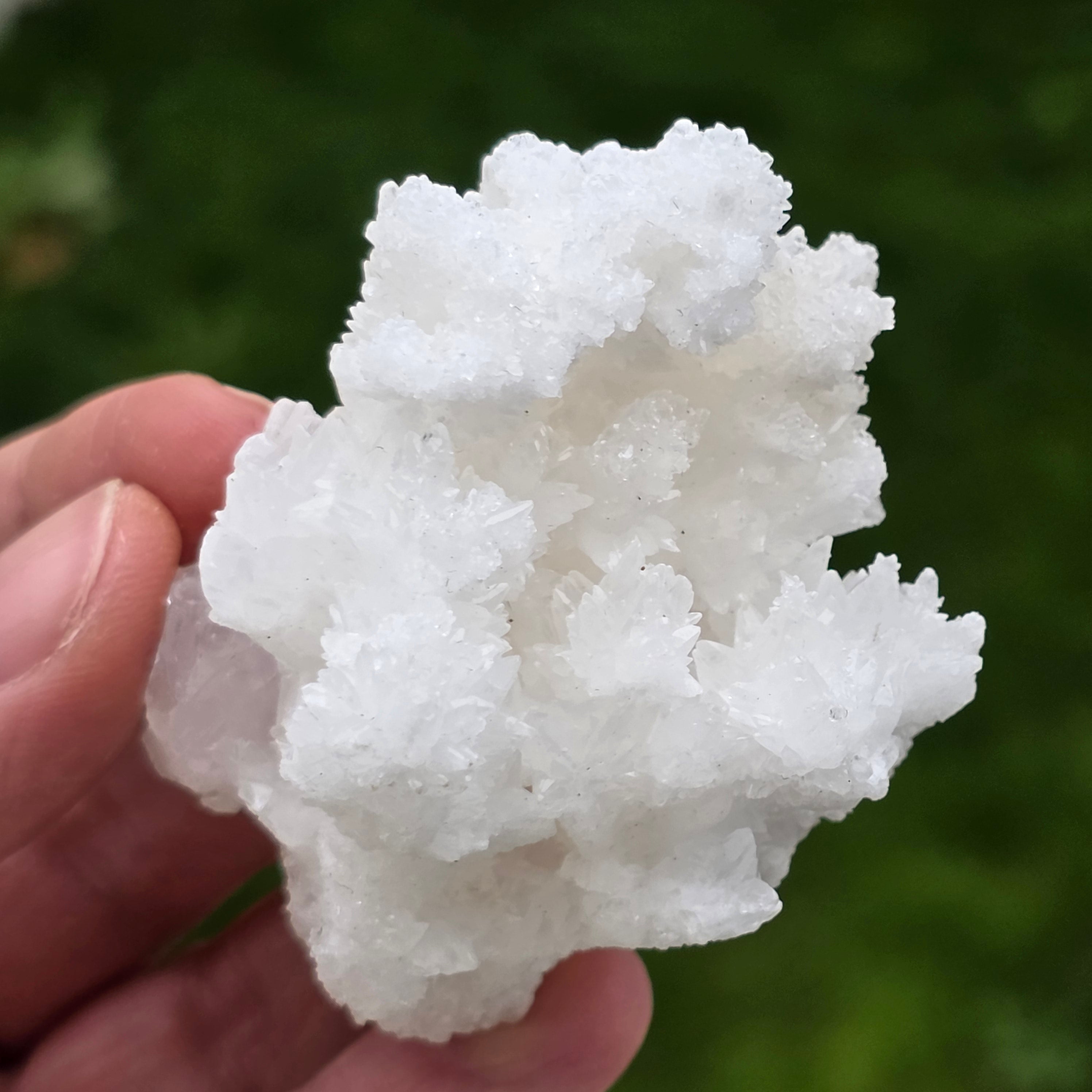 Този пещерен калцит (Cave Calcite) от Мексико е естествен минерален екземпляр, ценен заради своето органично, компактно и млечно-бяло излъчване, формиран от плътни агрегати от фини кристали. Екземплярите от този тип са резултат на бавни геоложки процеси, протичащи в подземни кухини, където стабилните условия позволяват развитие на тези хармонични естествени форми.