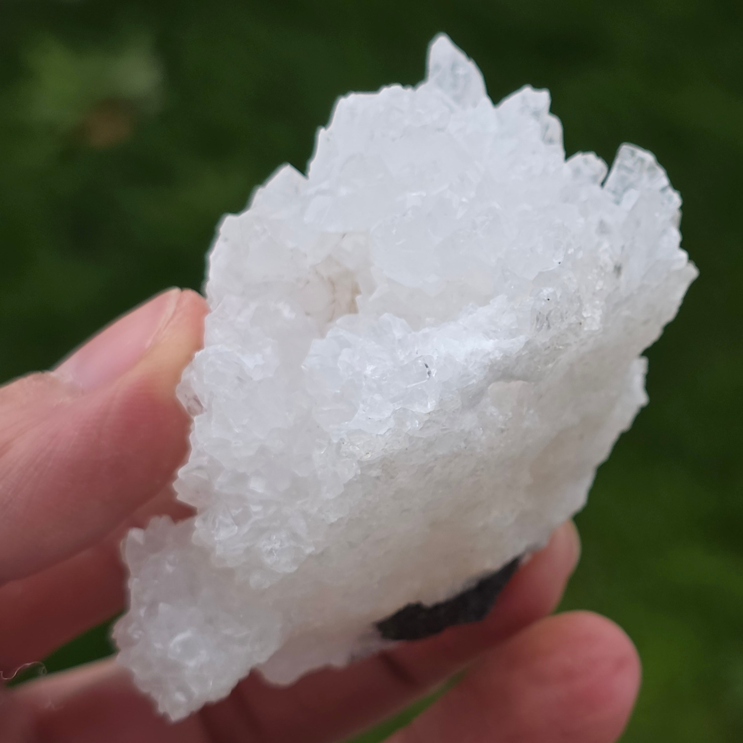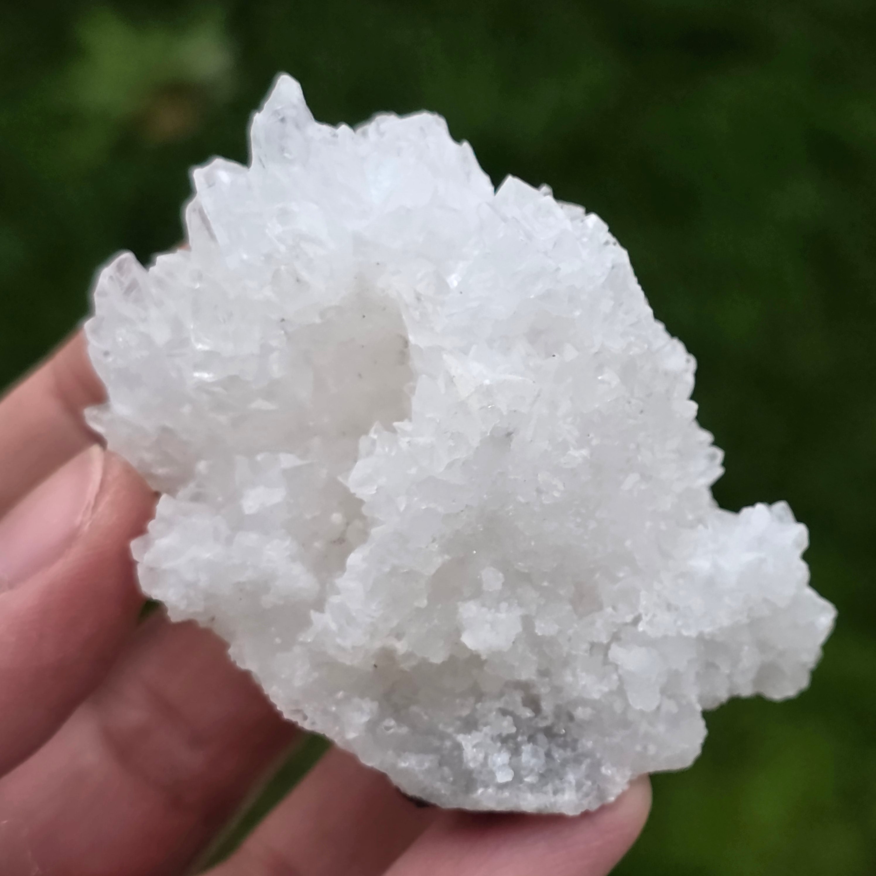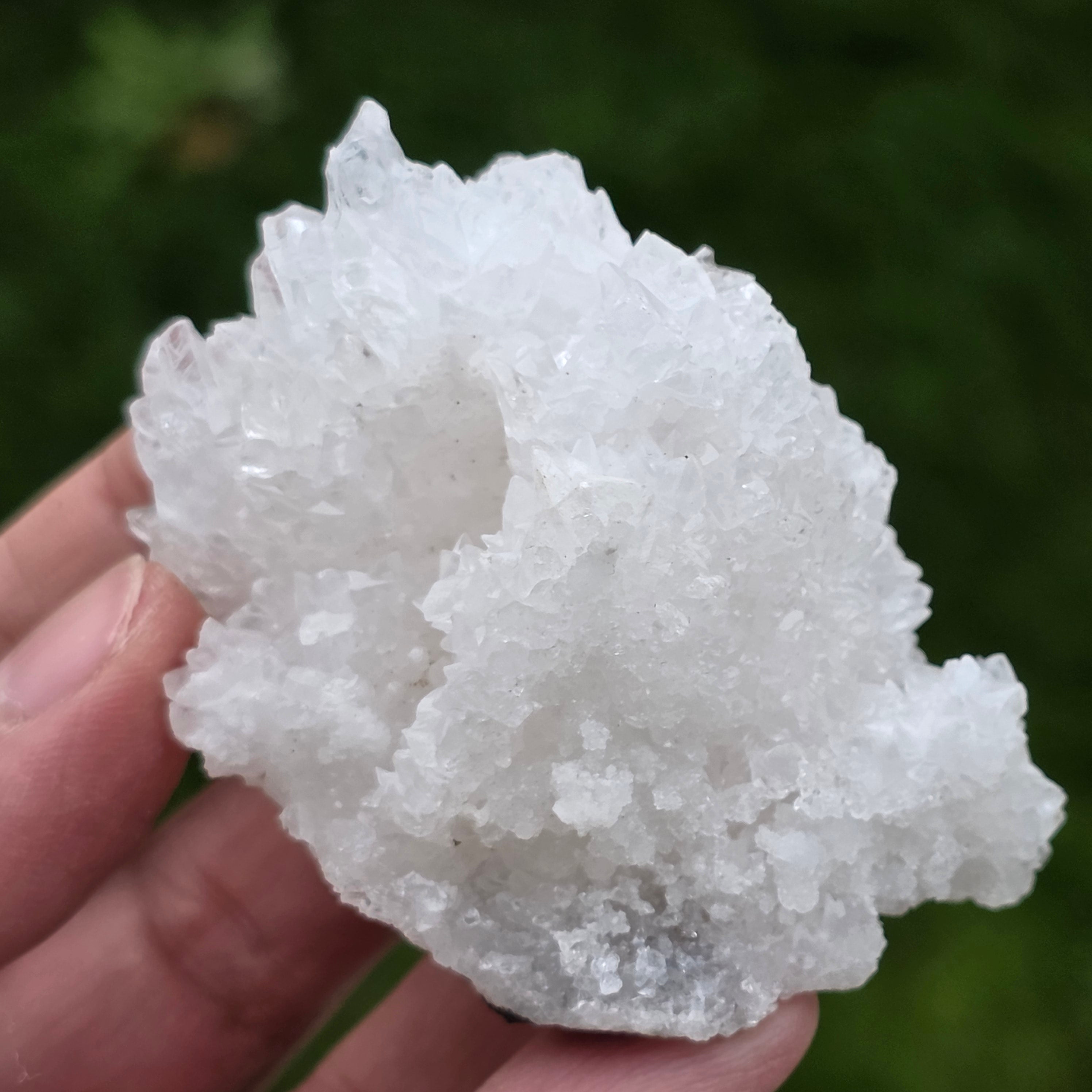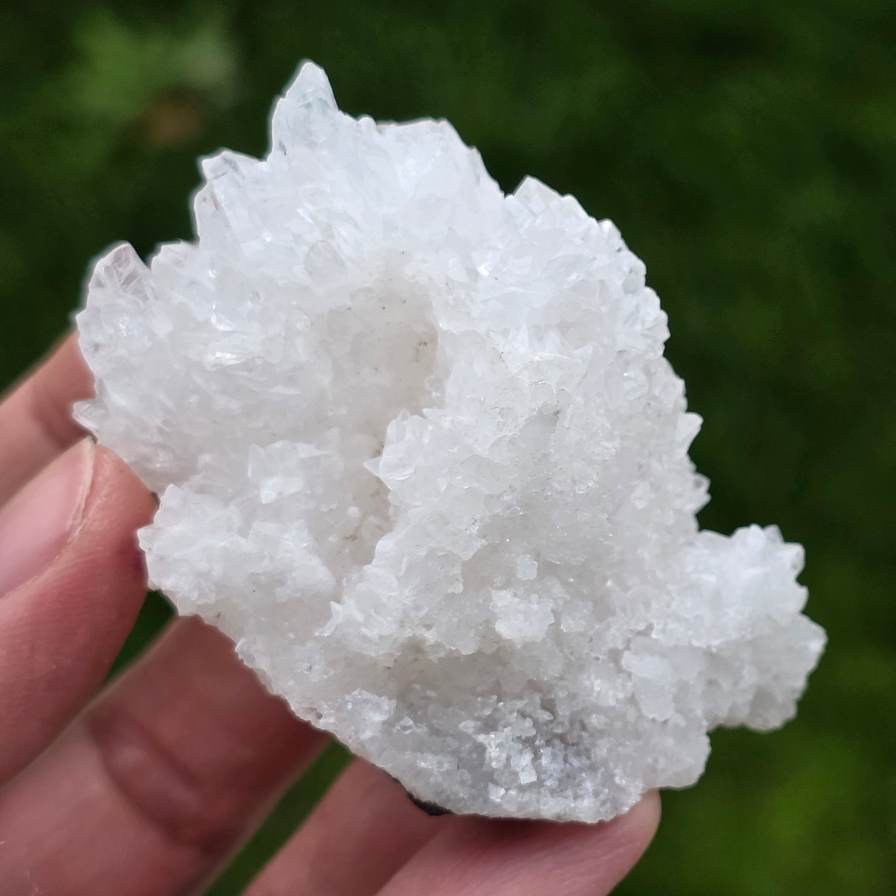 Този пещерен калцит (Cave Calcite) от Мексико е естествен минерален екземпляр, ценен за своята органична, компактна структура и млечно-бял вид, образуван от гъсти агрегати от фини кристали. Принадлежащите към този тип образци са резултат от бавни геоложки процеси, протичащи в подземни пещерни кухини, където стабилните условия са позволили развитието на тези хармонични естествени форми.