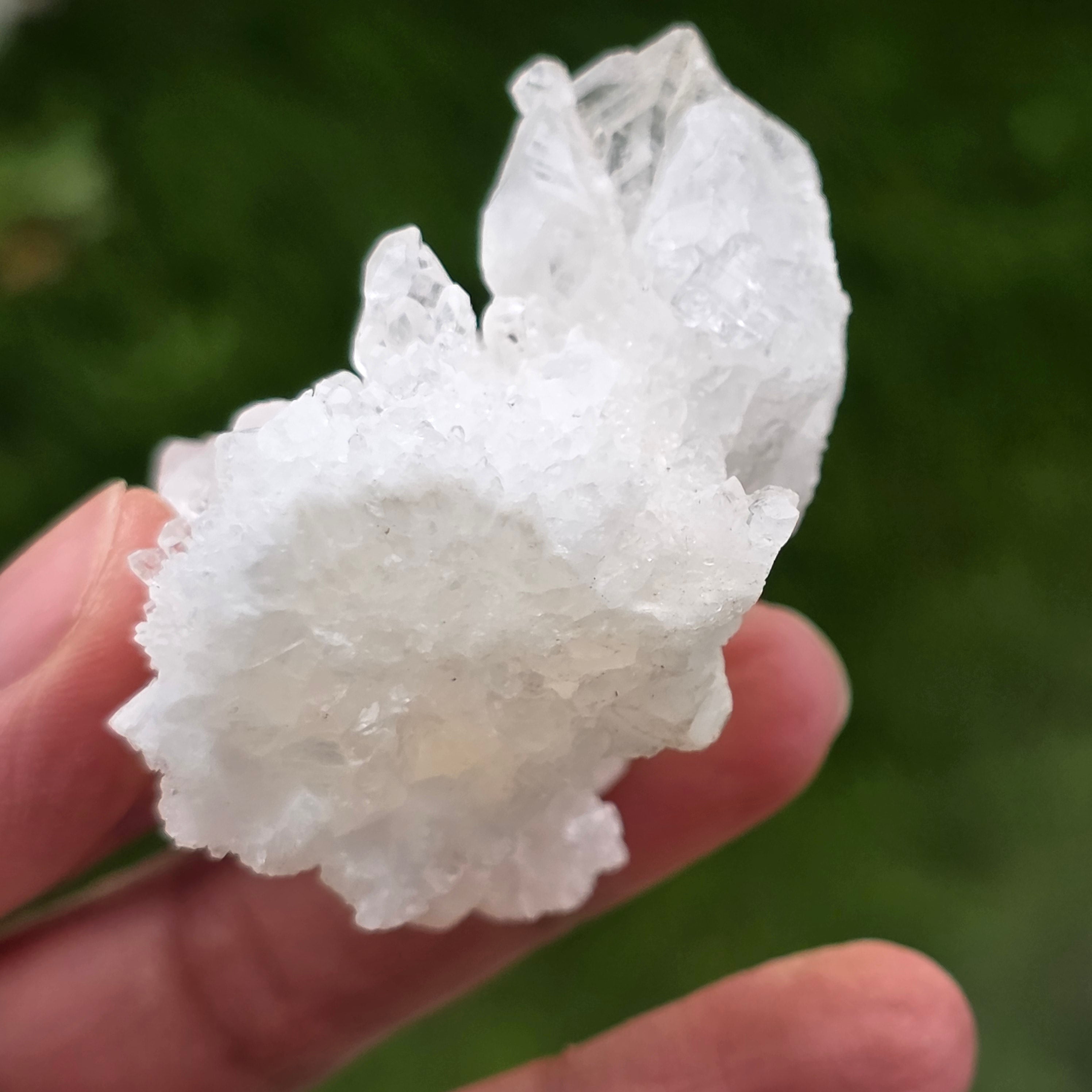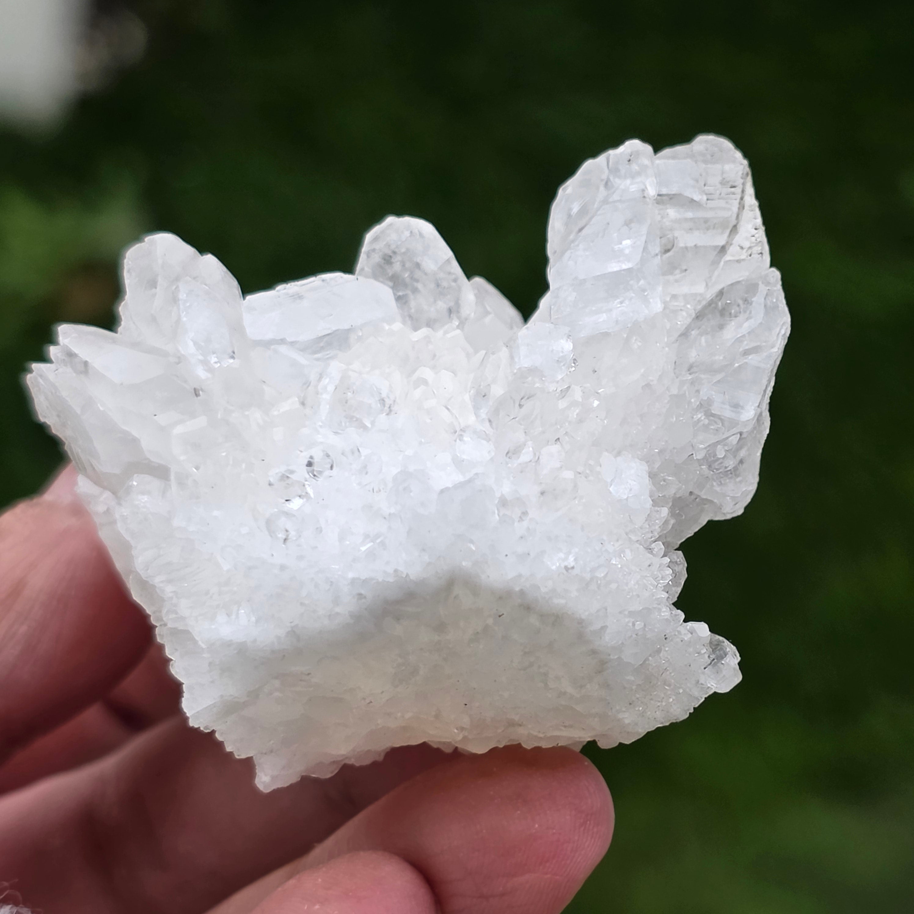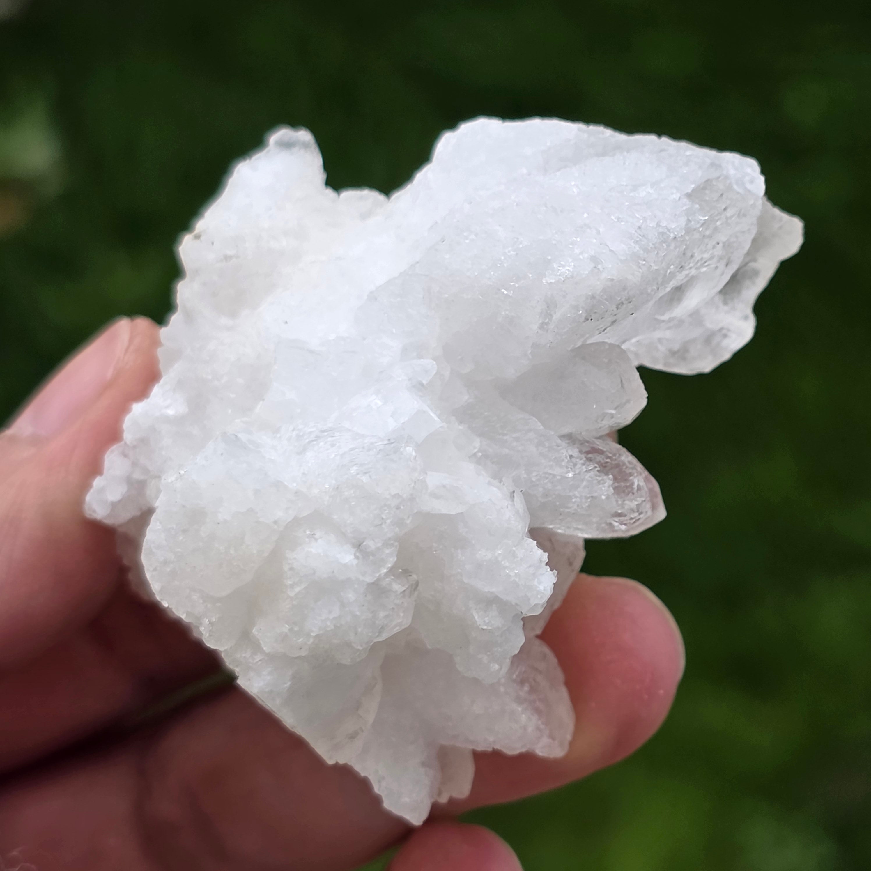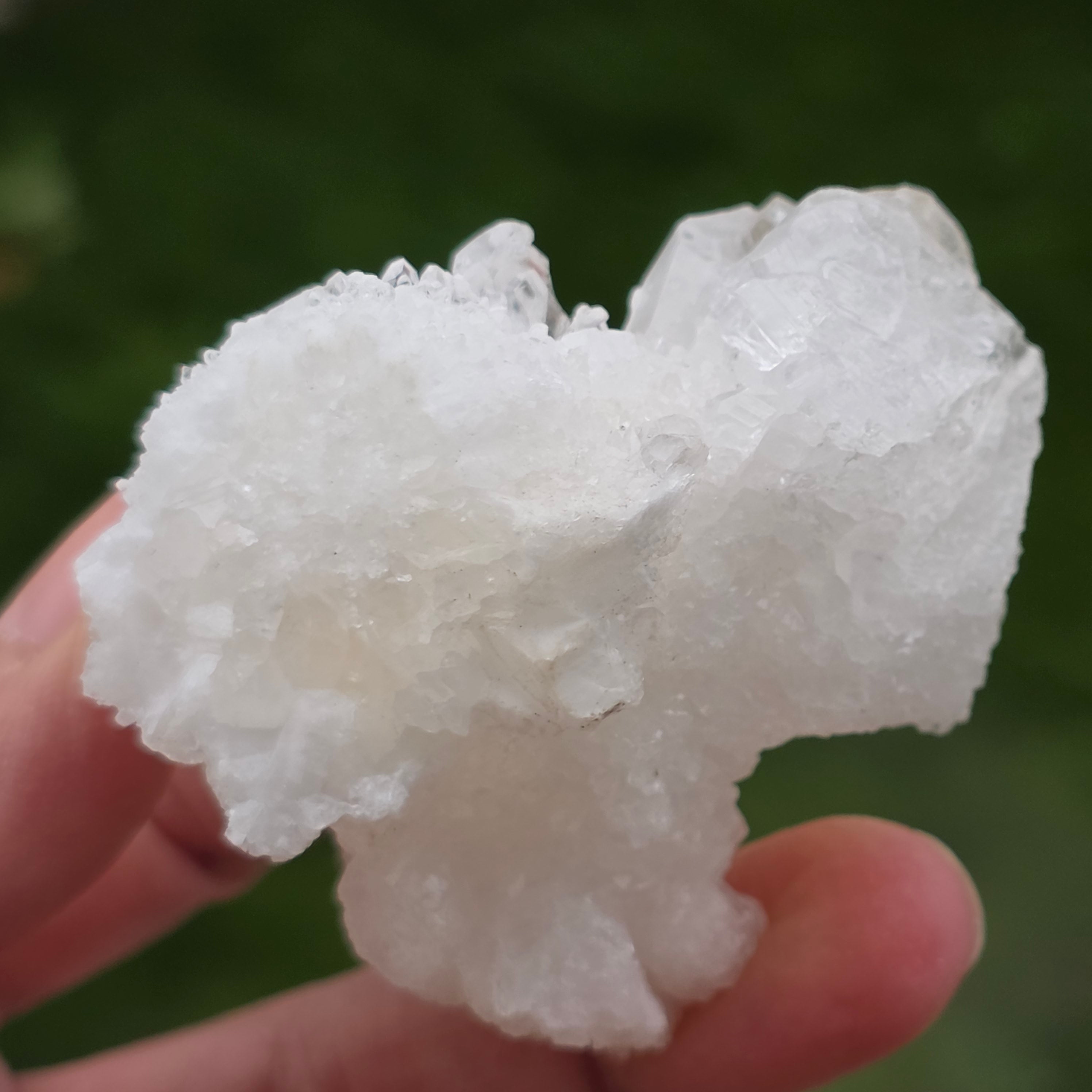 Този пещерен калцит (Cave Calcite) от Мексико е естествен минерален образец, ценен заради органичната си, компактна структура и млечно-белия си вид, формирано от плътни агрегати на фини кристали. Образците от този тип са резултат от бавни геоложки процеси, протичащи в подземни кухини, където стабилните условия са позволили формирането на тези хармонични естествени форми.