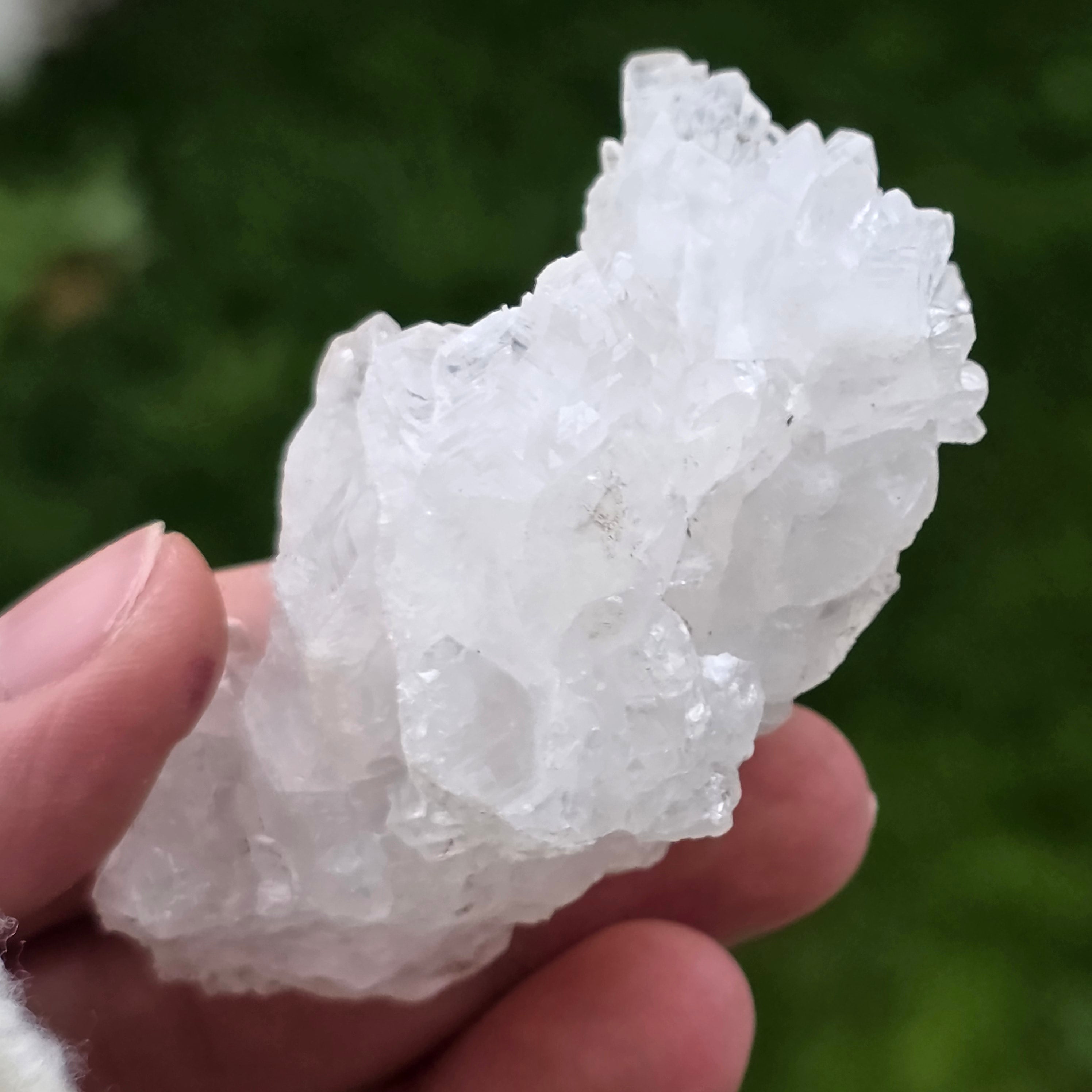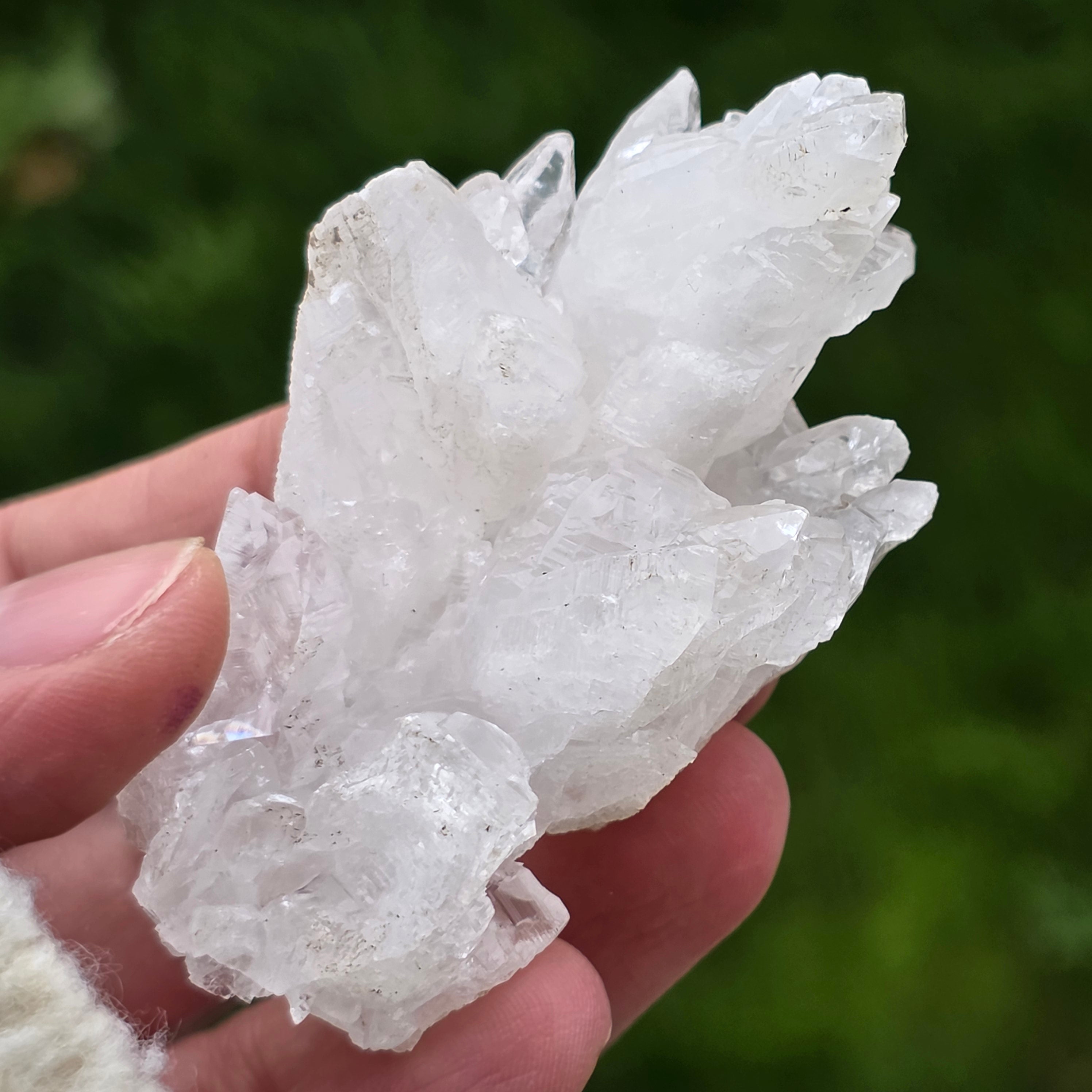 Този пещерен калцит (Cave Calcite) от Мексико е естествен минерален образец, ценен заради своята органична, компактна структура и млечно-бял вид, формиран от плътни агрегати от фини кристали. Образците от този тип са резултат от бавни геоложки процеси, протичащи в подземни кухини, където стабилните условия са позволили формирането на тези хармонични естествени форми.