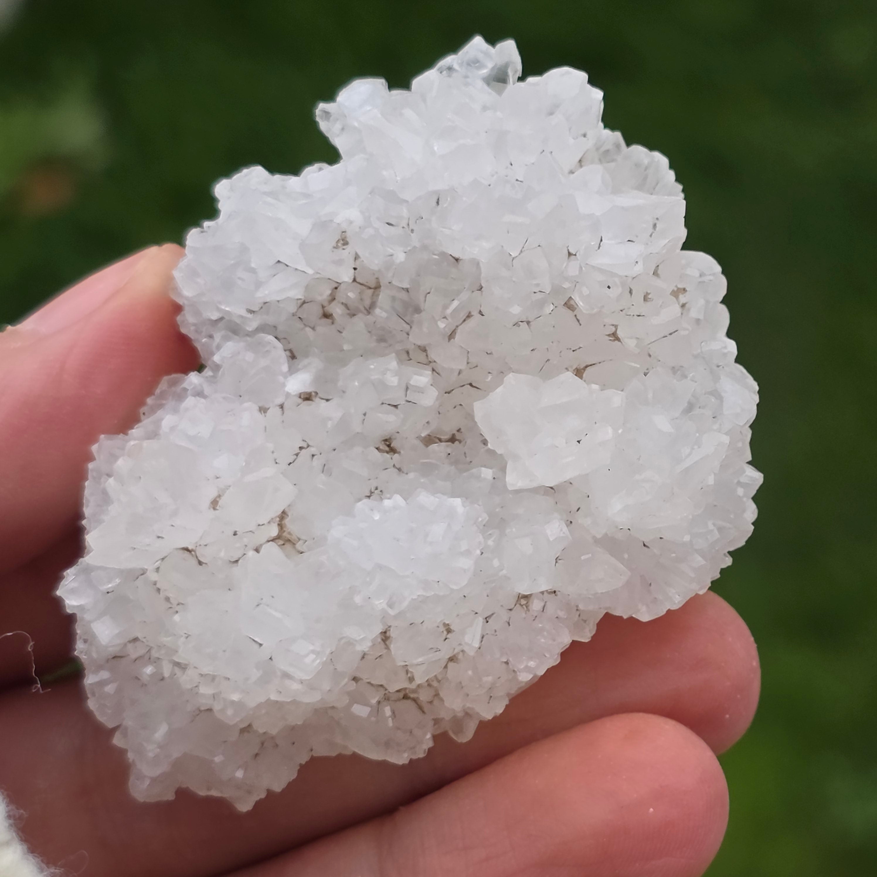 Този пещерен калцит (Cave Calcite) от Мексико е естествен минерален образец, ценен заради своята органична, компактна структура и млечно-бял вид, формиран от плътни агрегати от фини кристали. Подобни образци са резултат от бавни геоложки процеси, протичащи в подземни пещерни кухини, където стабилните условия са позволили развитието на тези хармонични естествени форми.