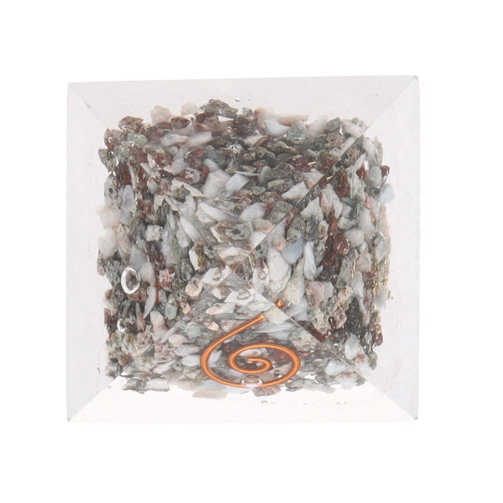 Пирамидата от ларимар в смола улавя уникалната красота на карибските сини нюанси, защитени и подчертавани от прозрачността на смолата.