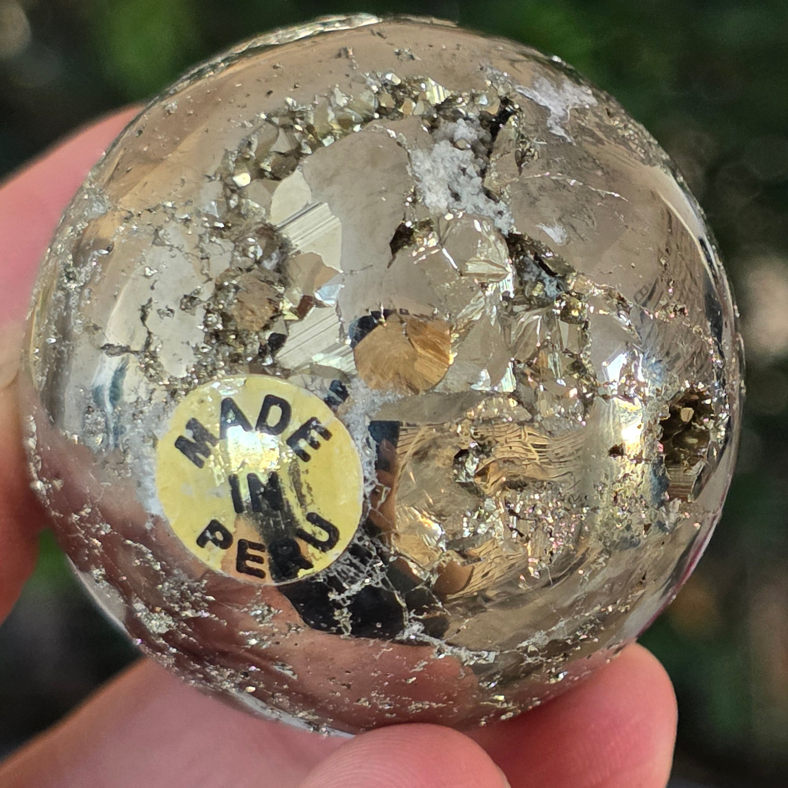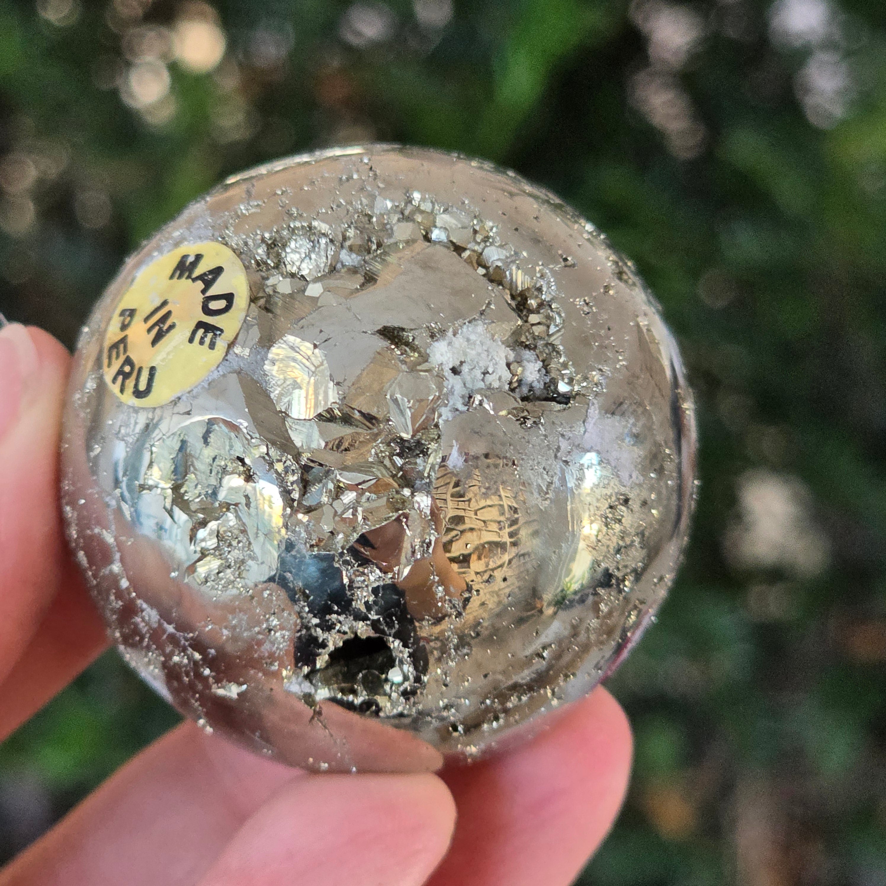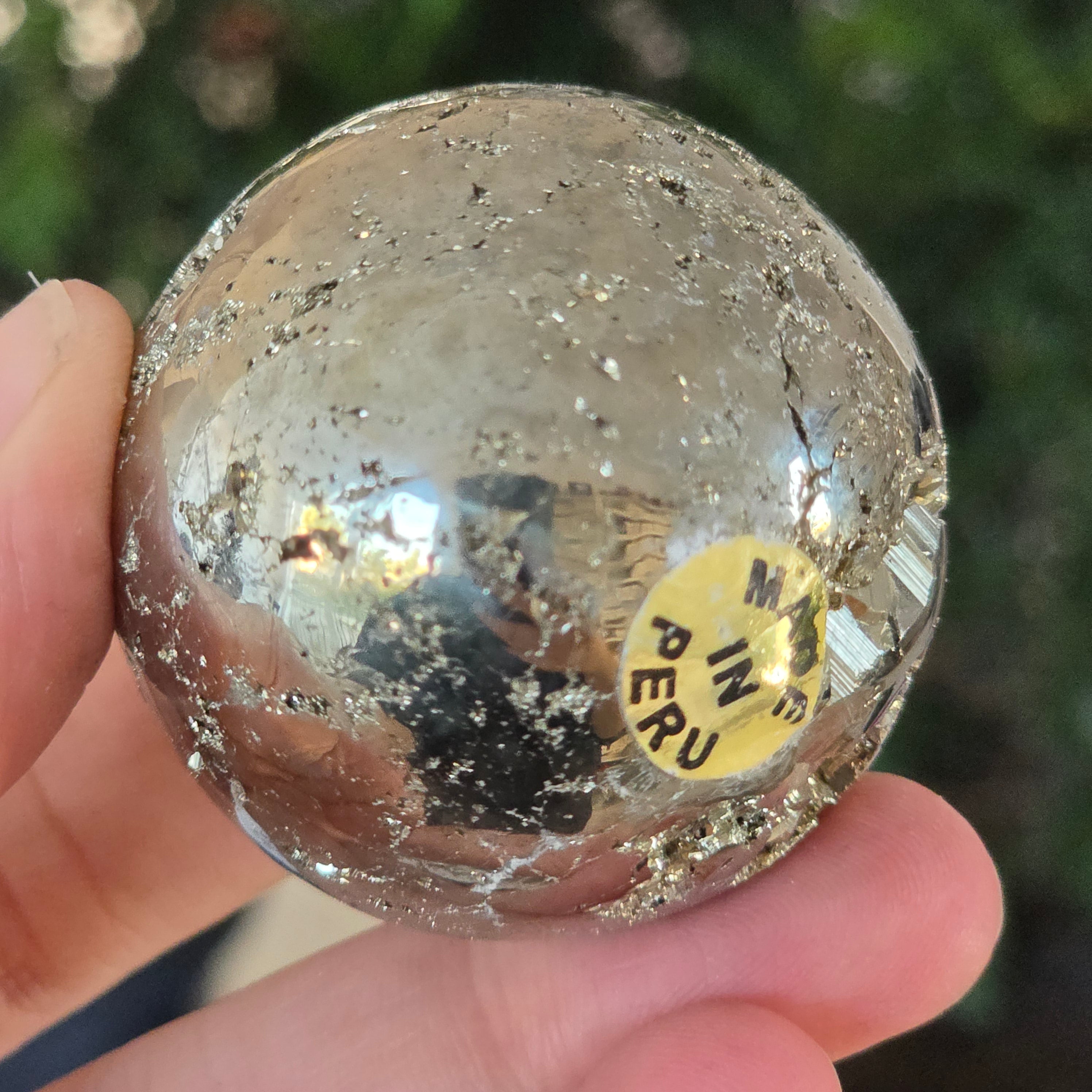 Пиринтната сфера перуански пирит излъчва сила, изобилие и ментална яснота. Всеки златист отблясък напомня за светлината на съзнанието и вътрешната сила, която превръща намеренията в реалност. Спектакуларен предмет, подходящ както за колекционери, така и като декоративен обект с жизнена енергия.
