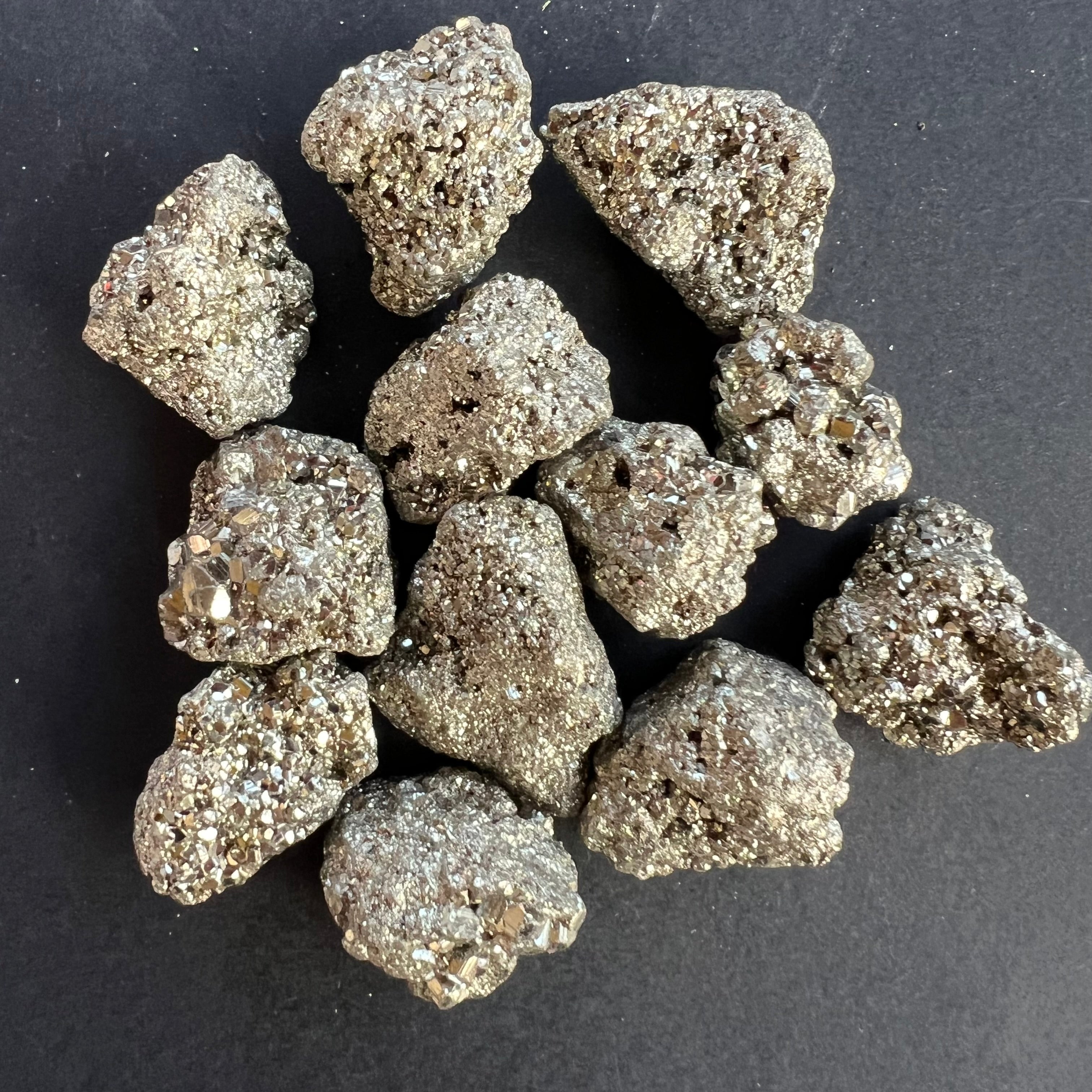 Пиритът често се свързва с областта на чакрата на слънчевия сплит, той може да стимулира тази енергийна област, като помага за повишаване на самочувствието, развива лична сила и укрепва силата на волята.
