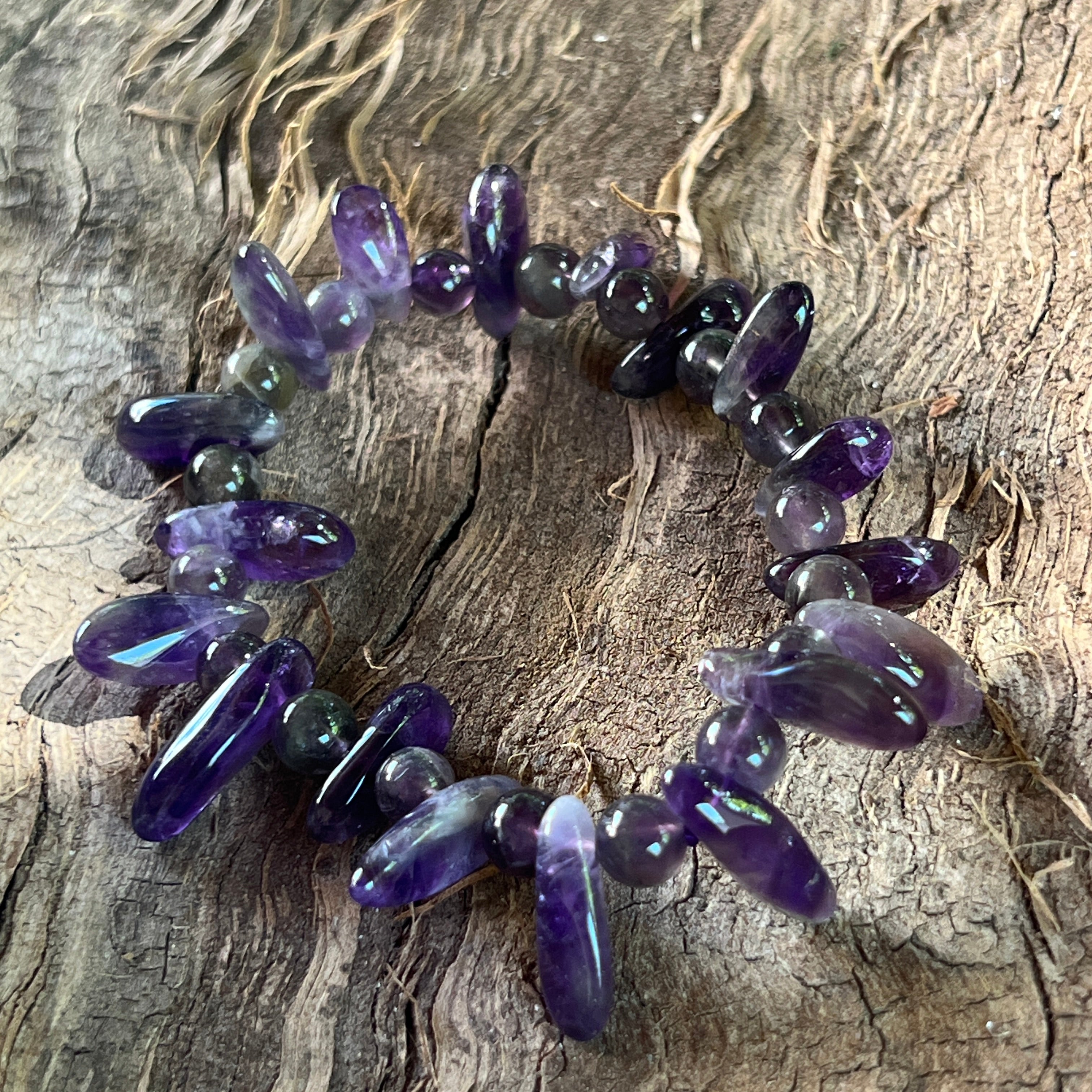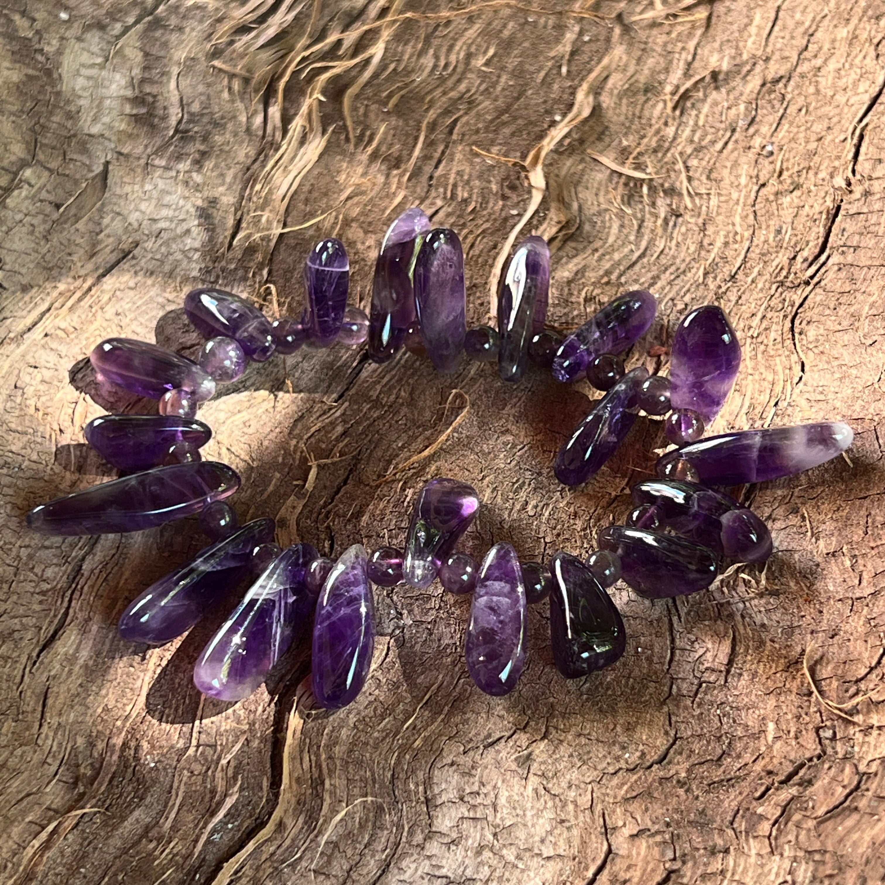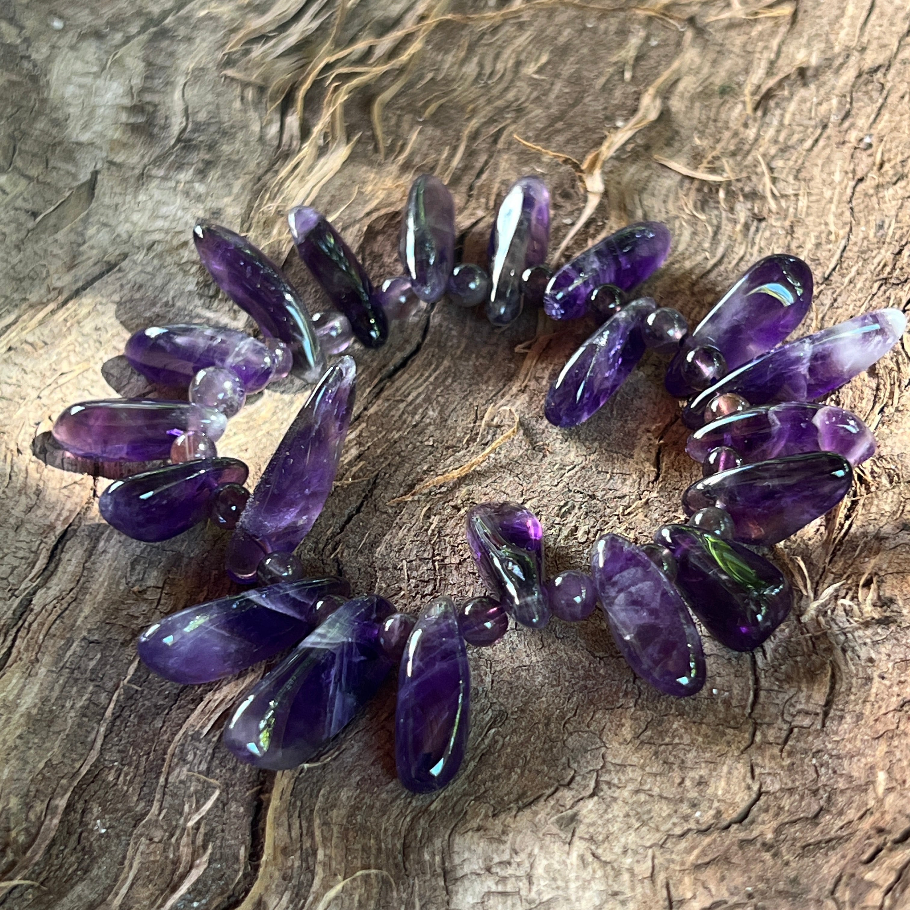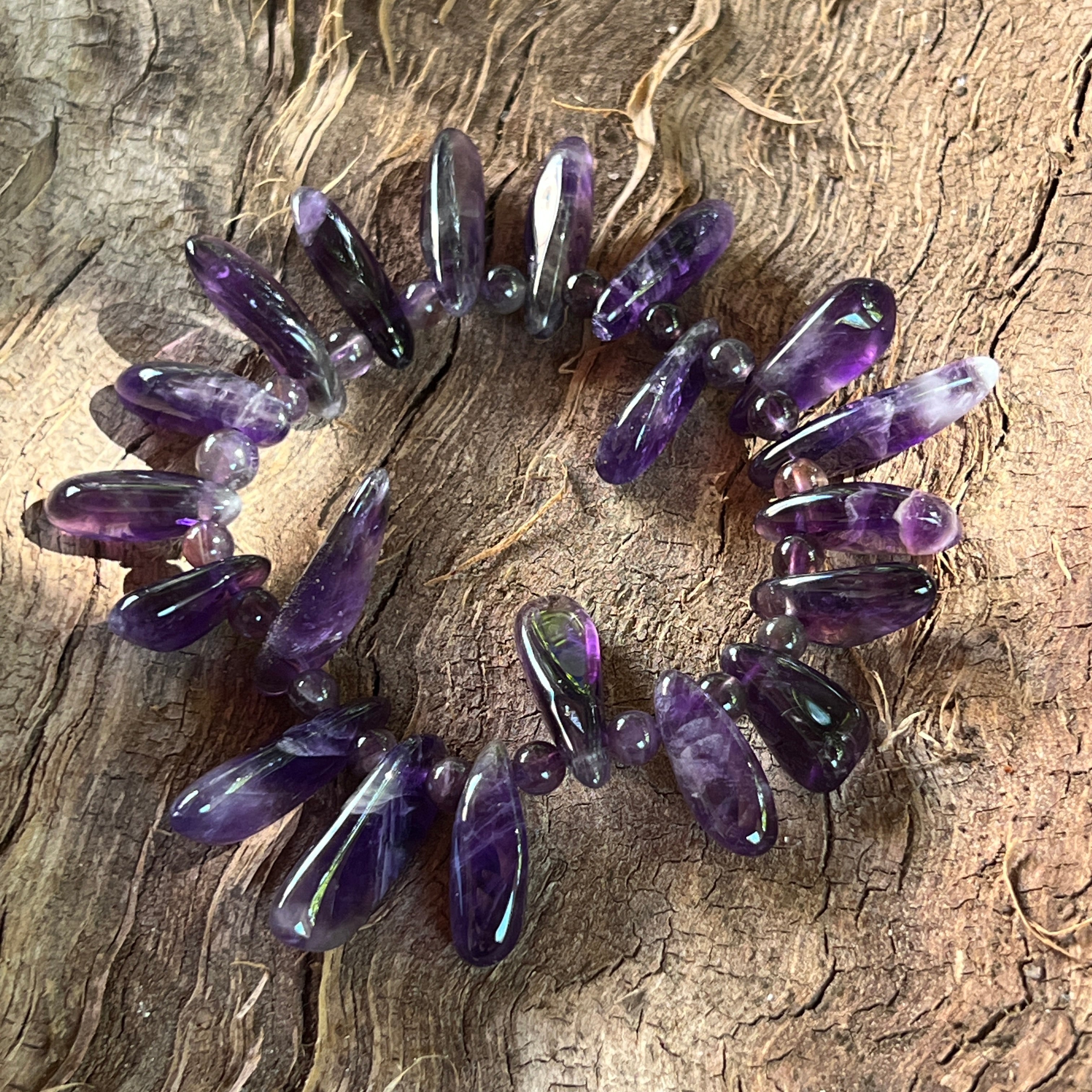 Гривна с аметист необработени камъни