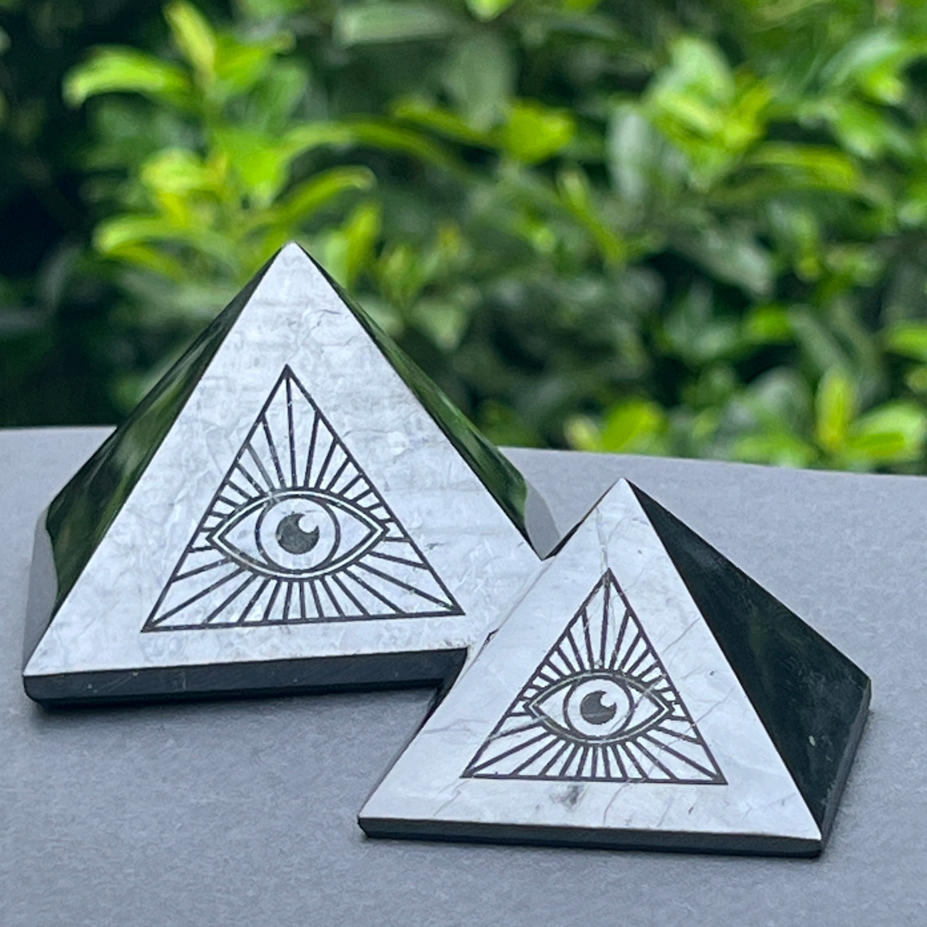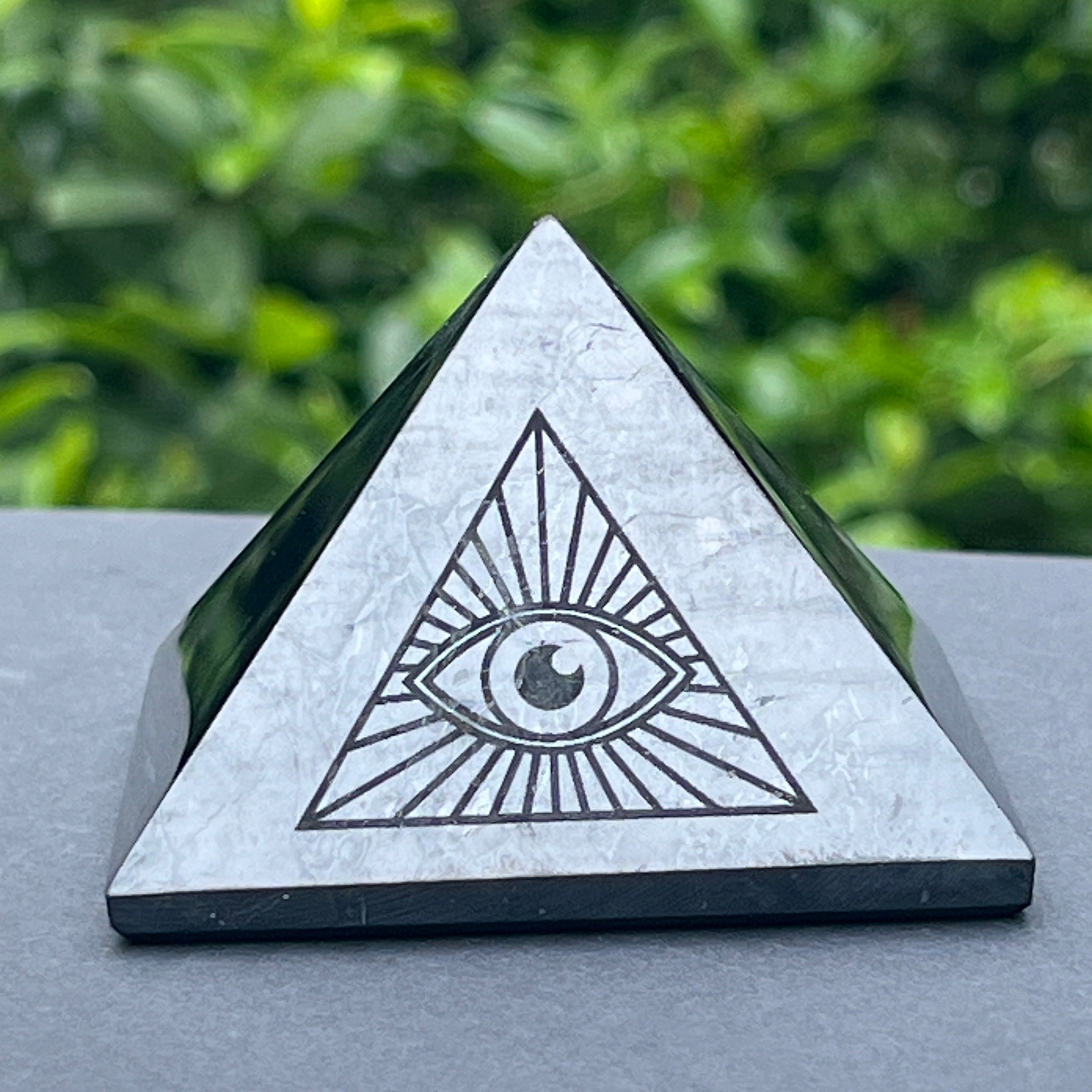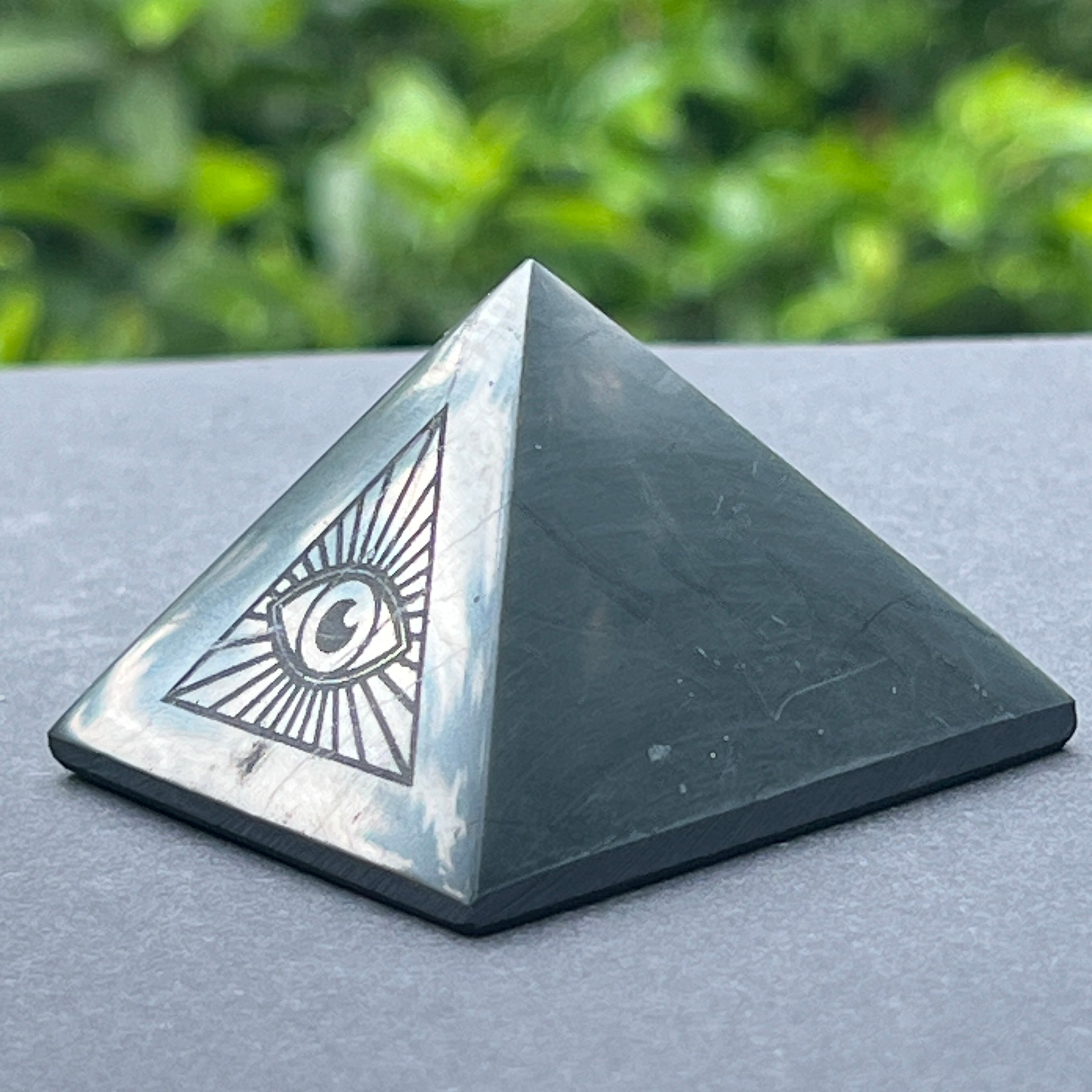 Полирана шунгитова пирамида ВСЕГЛЕДАЩО ОКО 7 см