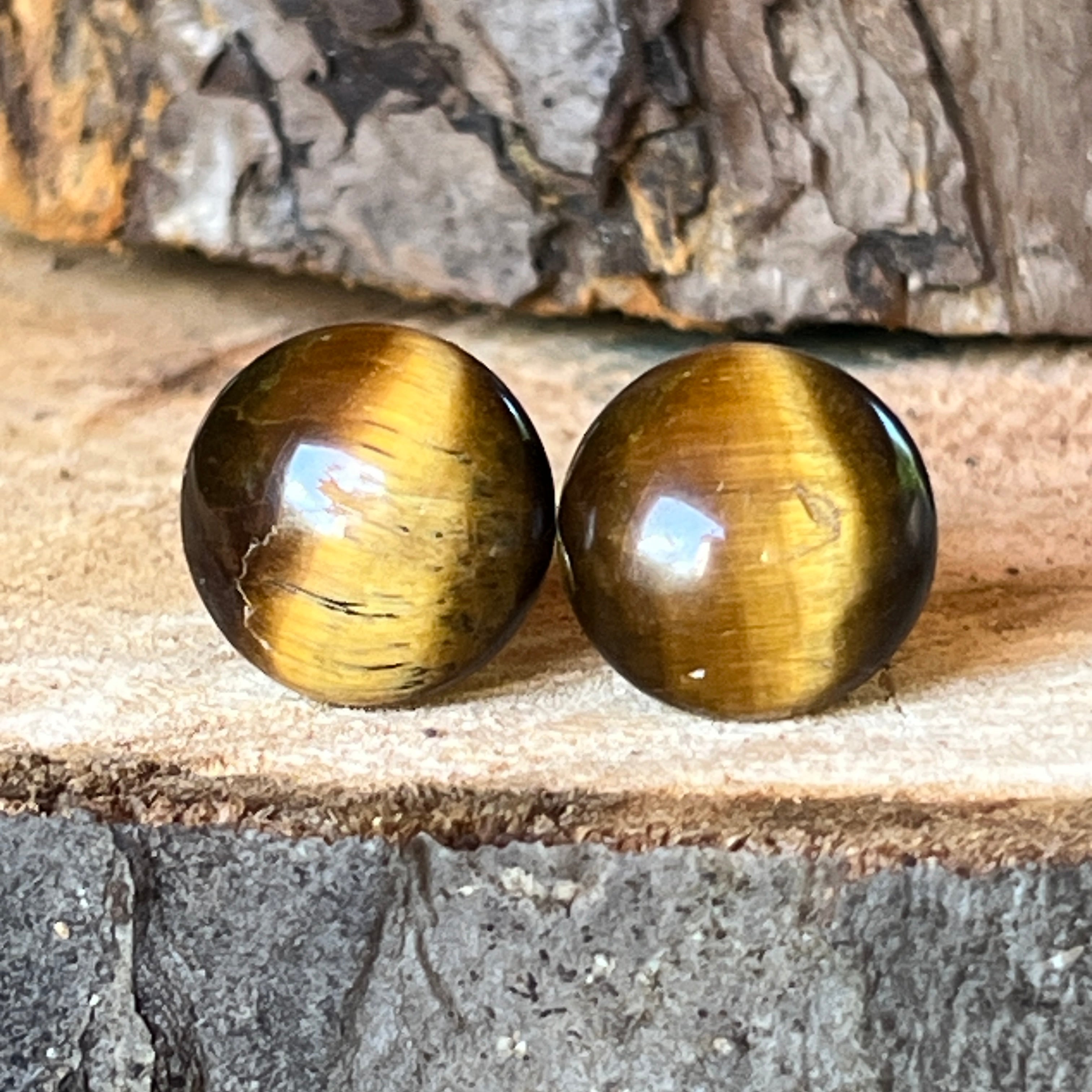 Полусферични обеци тип „студ“ с тигрово око 15-16 мм