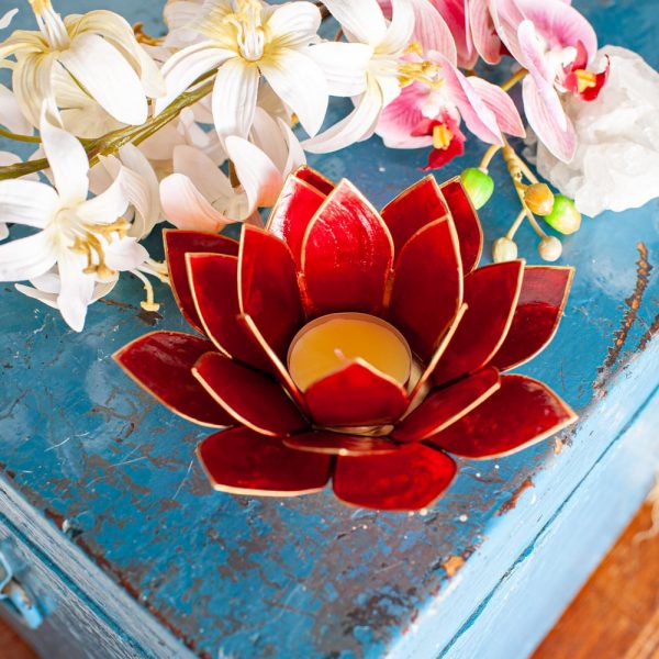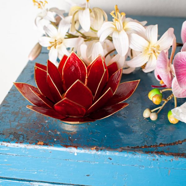 Ревюта – Поставка за свещи червен лотос от Филипините с черупки от Capiz
