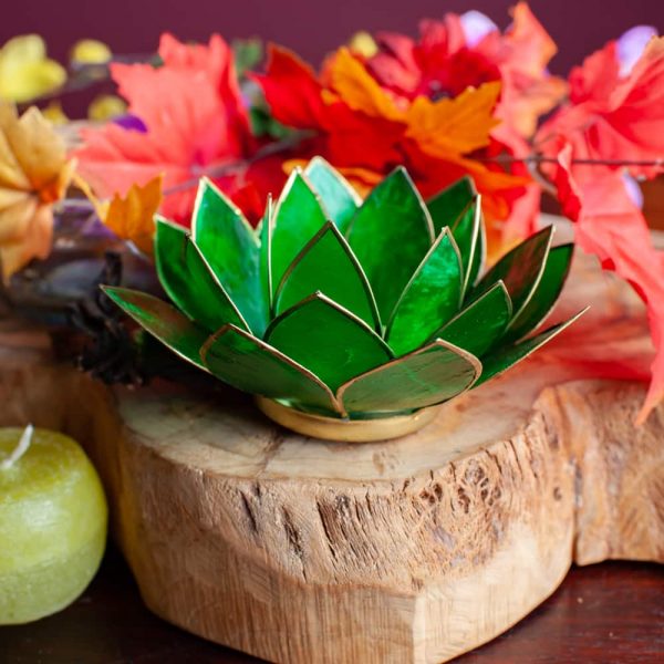 Ревюта – Поставка за свещ зелена лотосова цвете от Филипини с черупки Capiz