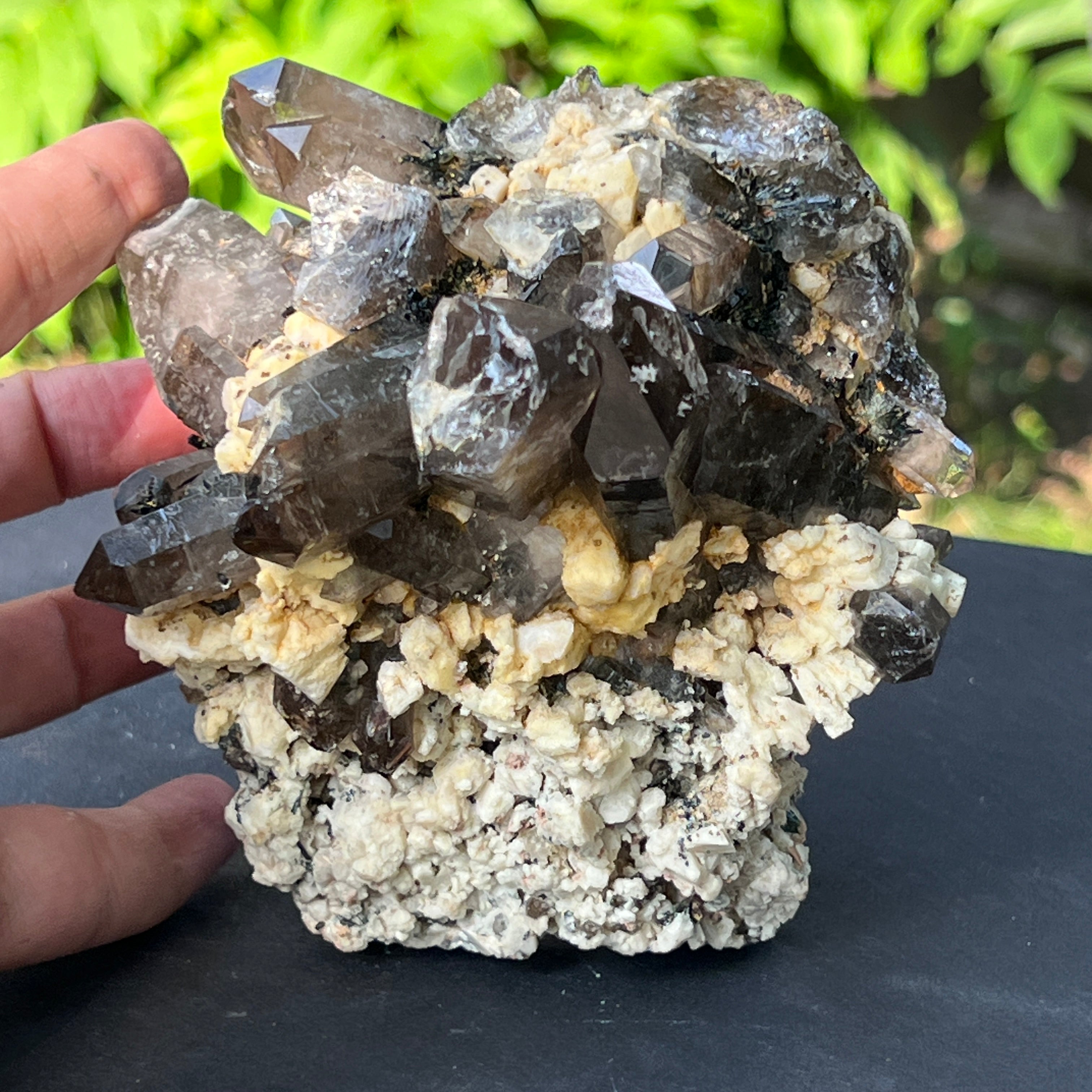 Цветът на димливия кварц е резултат от естествено облъчване или наличието на алуминиеви примеси по време на формирането му. Този процес може да произведе широка гама от нюанси, от светли до интензивни.