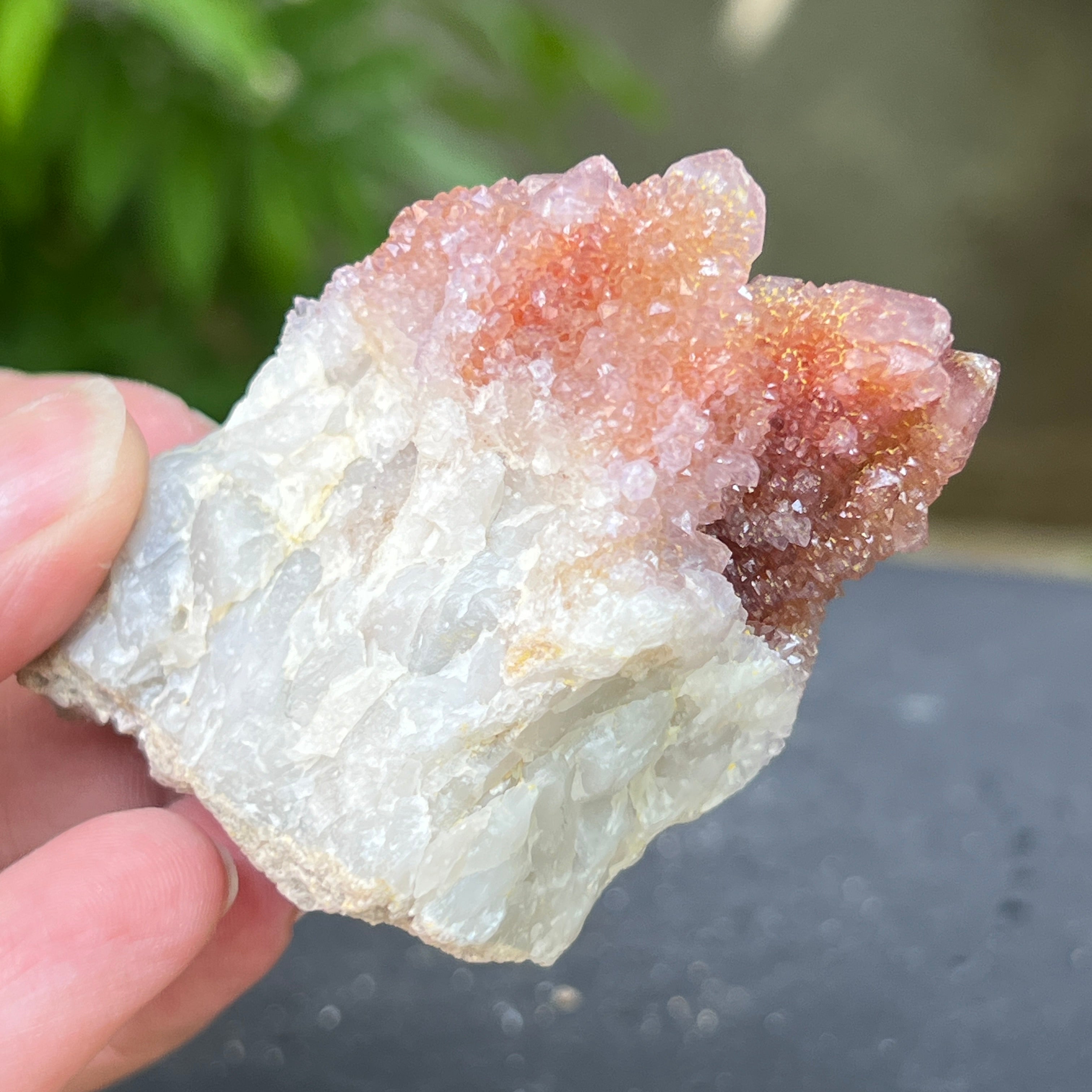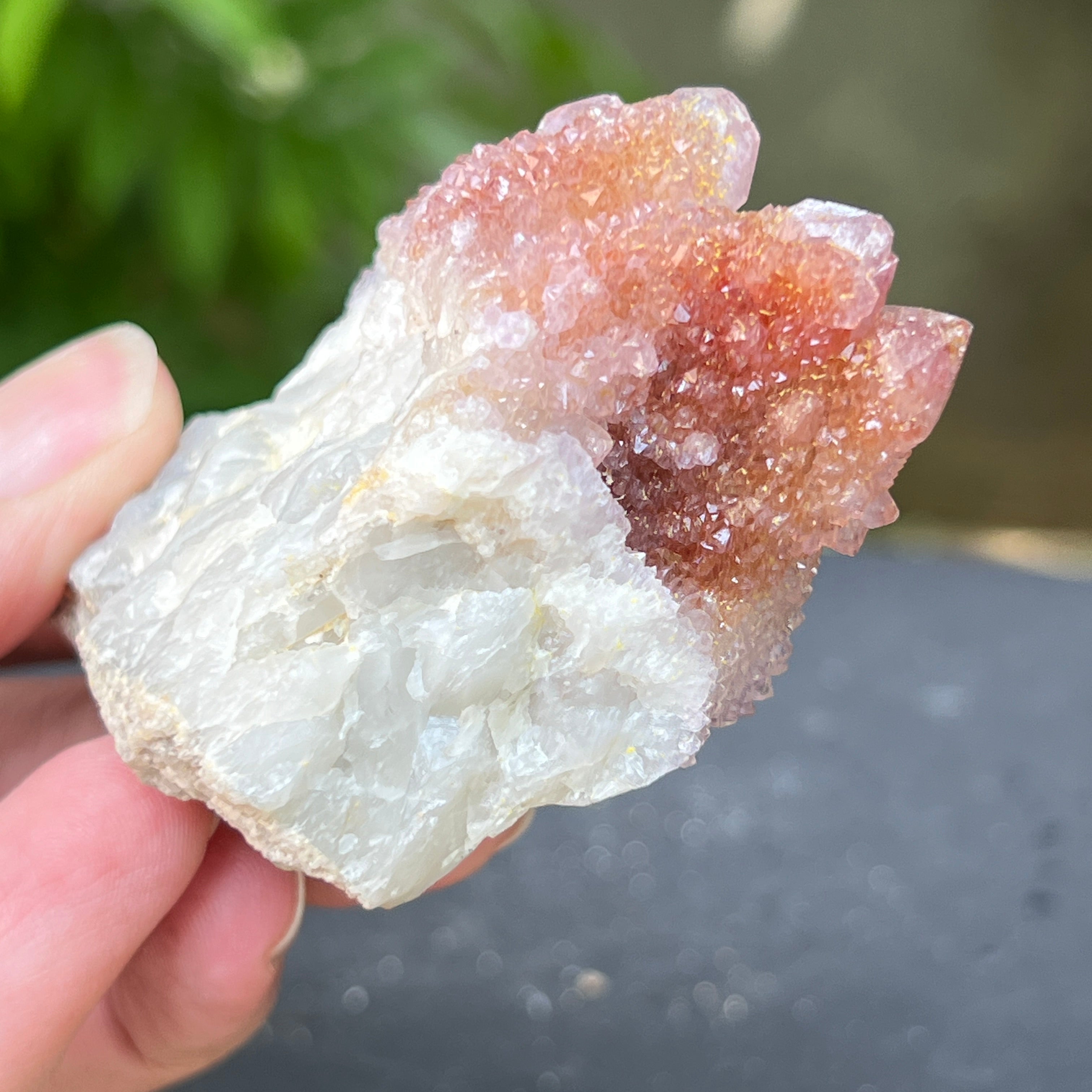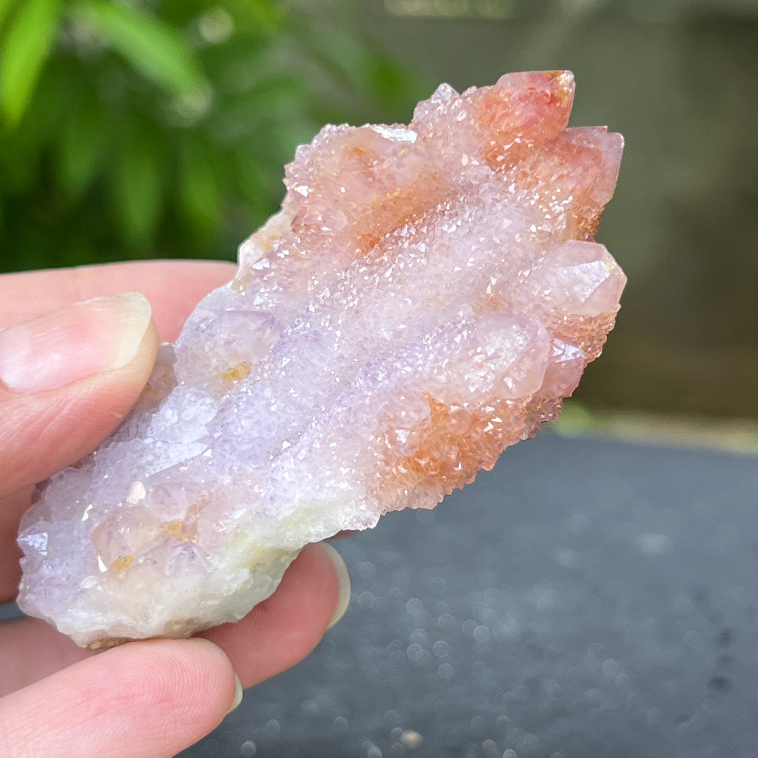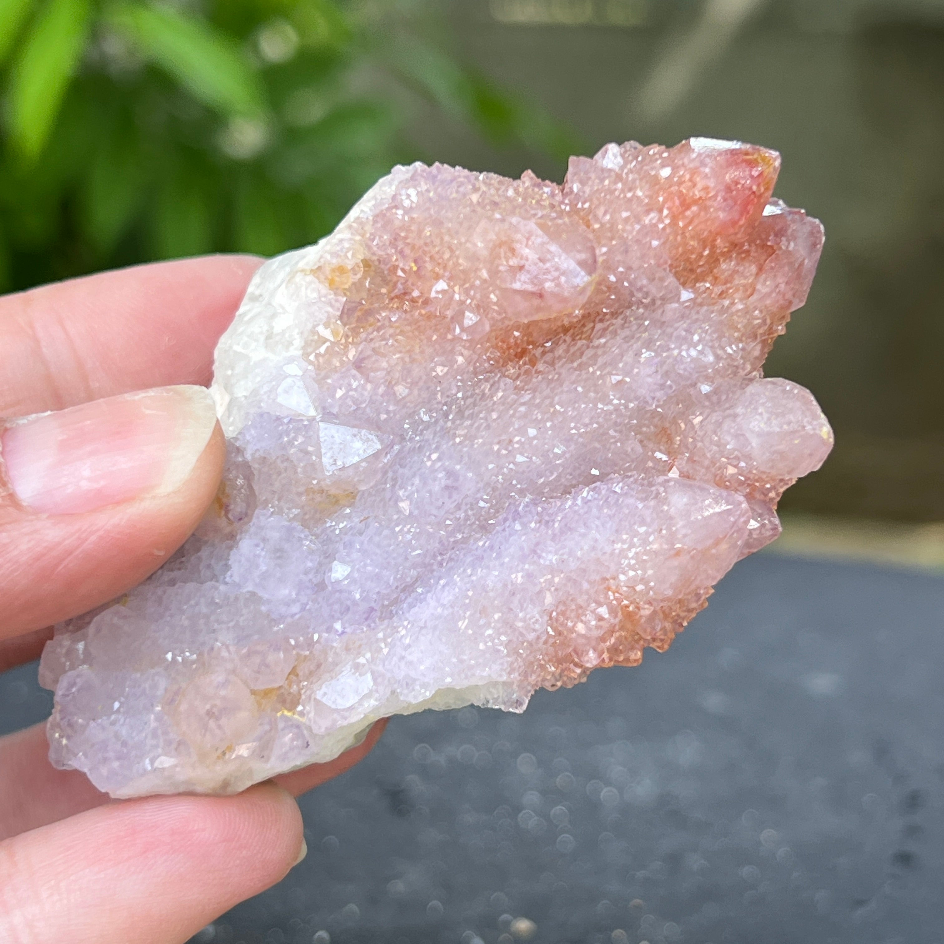 Произходът му е от Южна Африка, този уникален образец съчетава дълбоката енергия на кварца с високите вибрации на аметиста. Това е камък на сътрудничеството и духовната общност, символ на хармонията между индивидуалността и единството. Всеки малък кристал излъчва от общия център, като мрежа от съзнания в перфектна хармония.