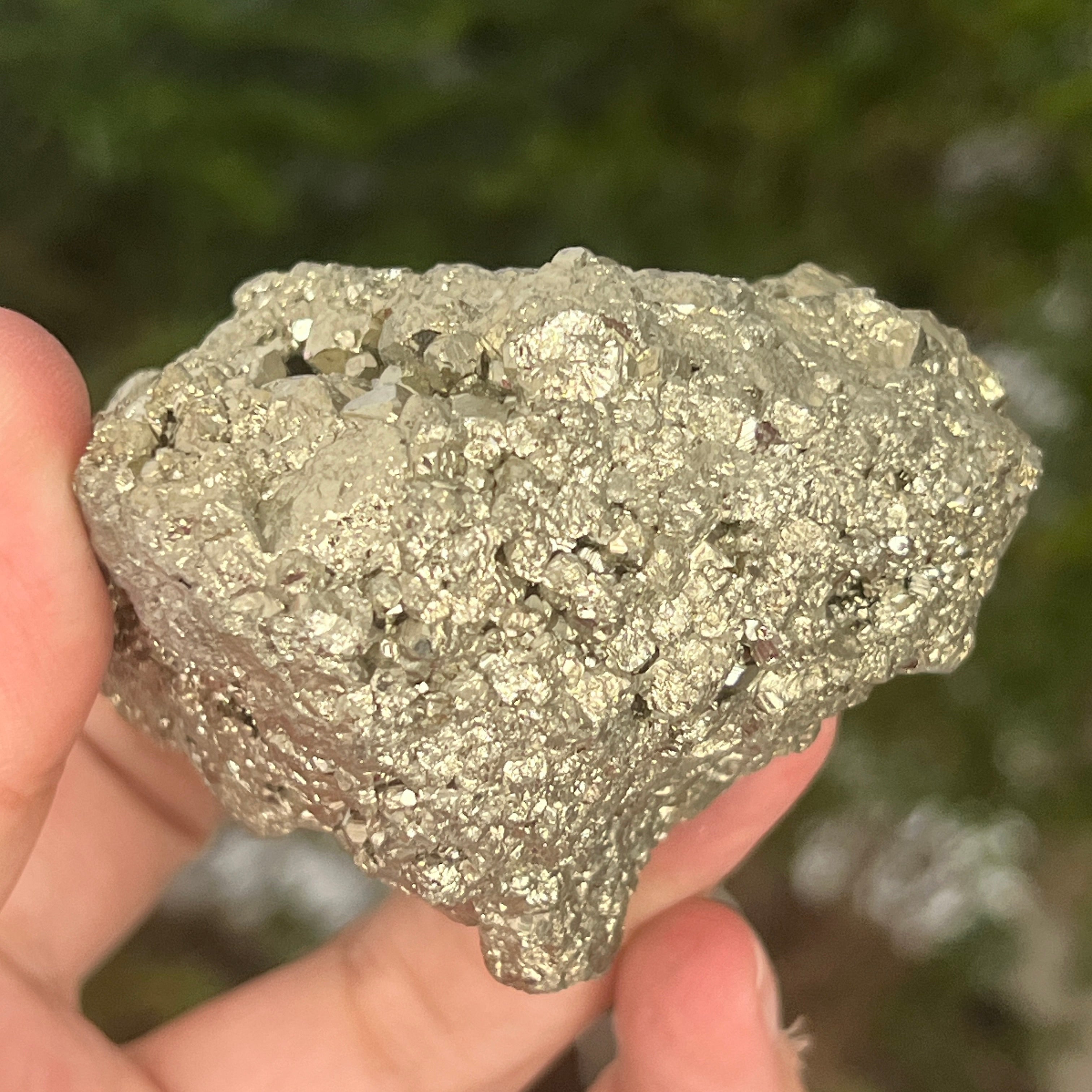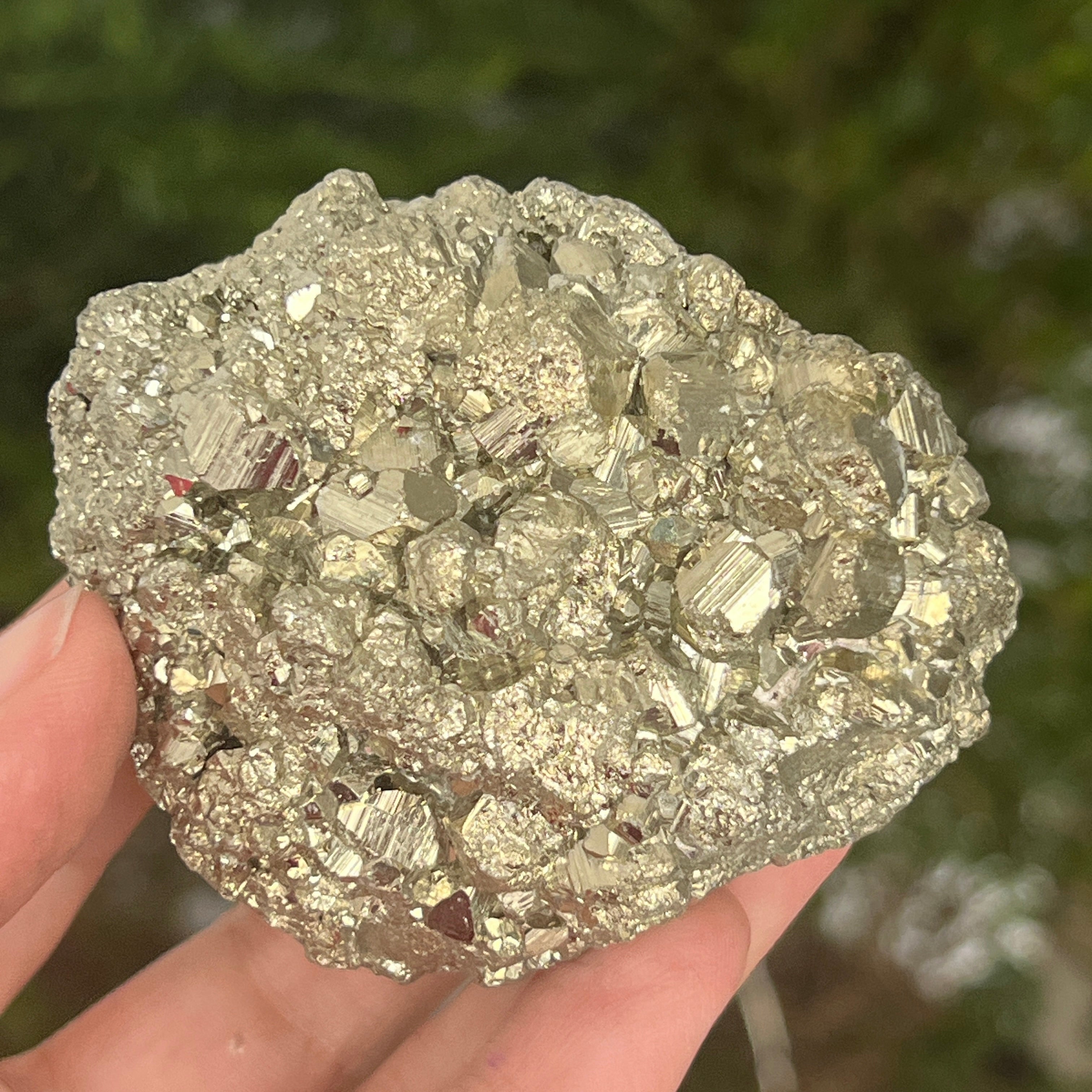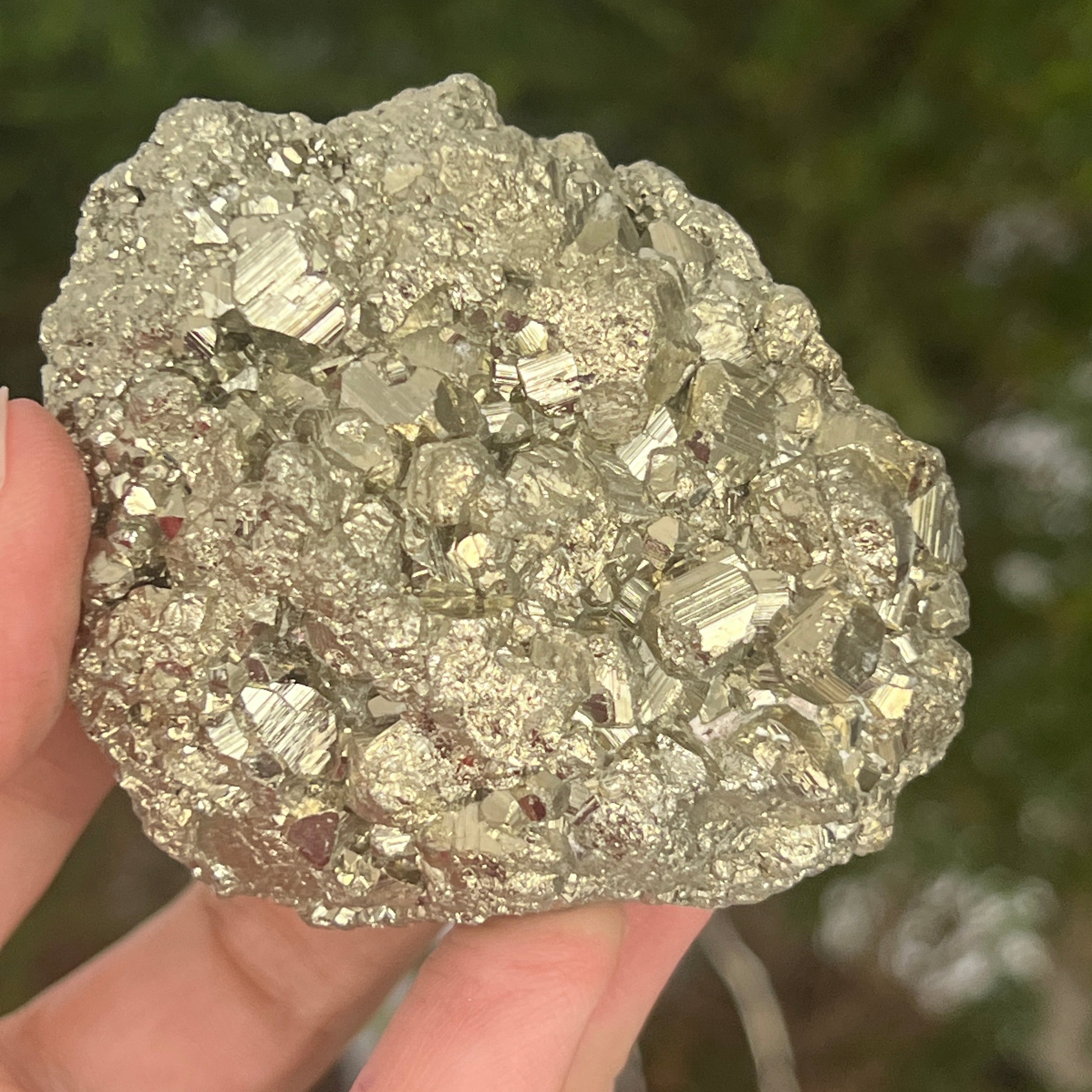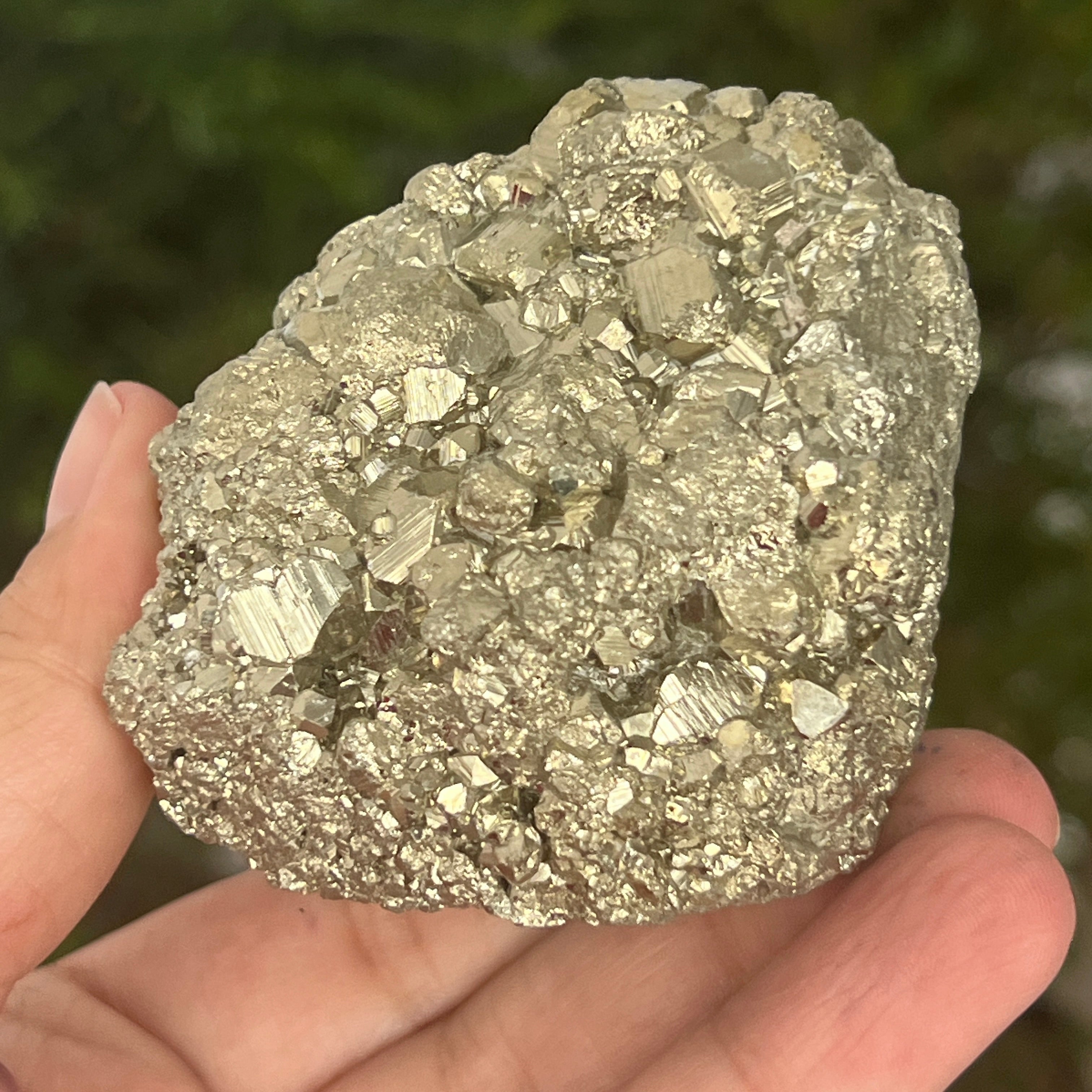 Пиритът често се асоциира с чакрата в зоната на слънчевия сплит, като може да стимулира този енергиен център, помагайки за повишаване на самоувереността, развиване на личната сила и укрепване на волята.