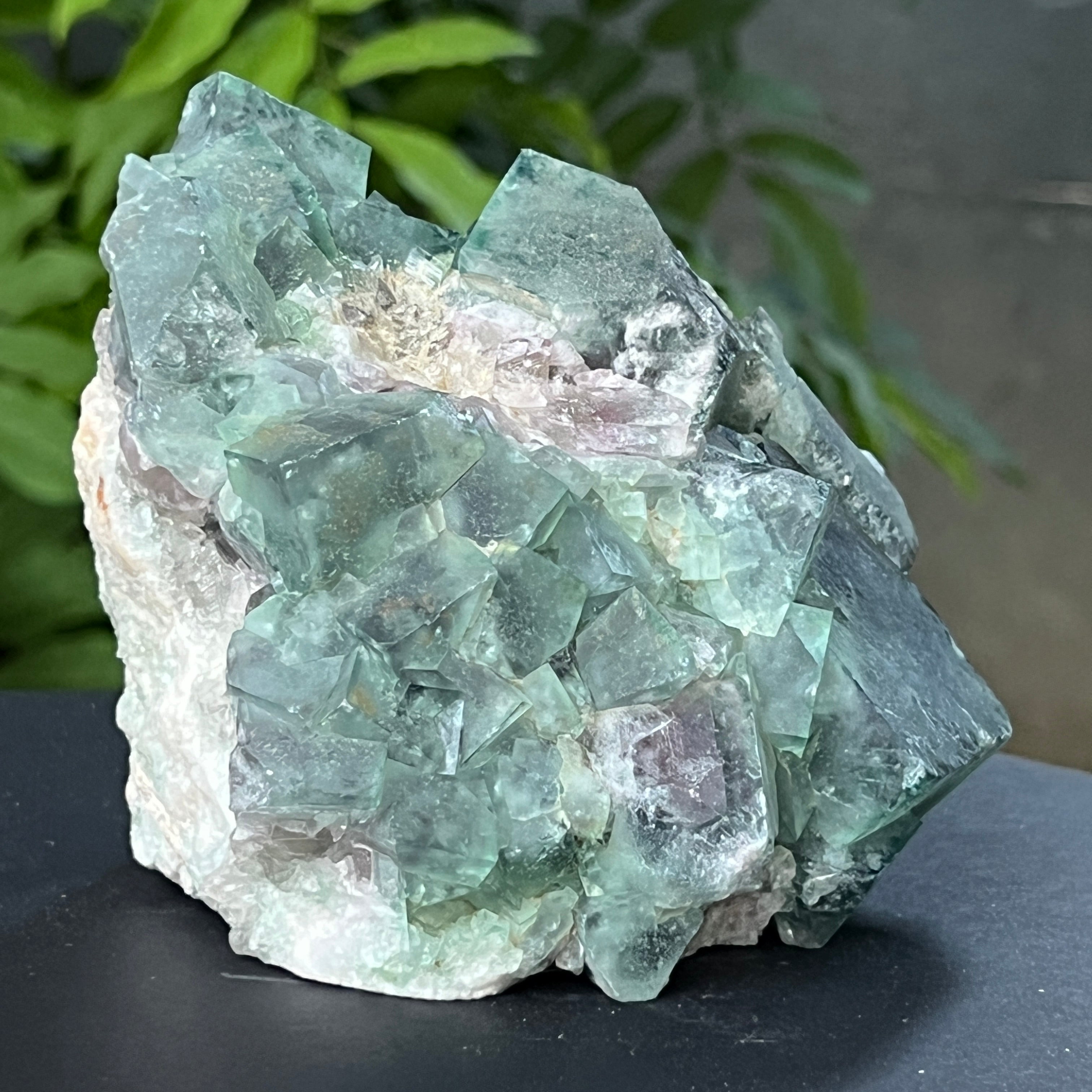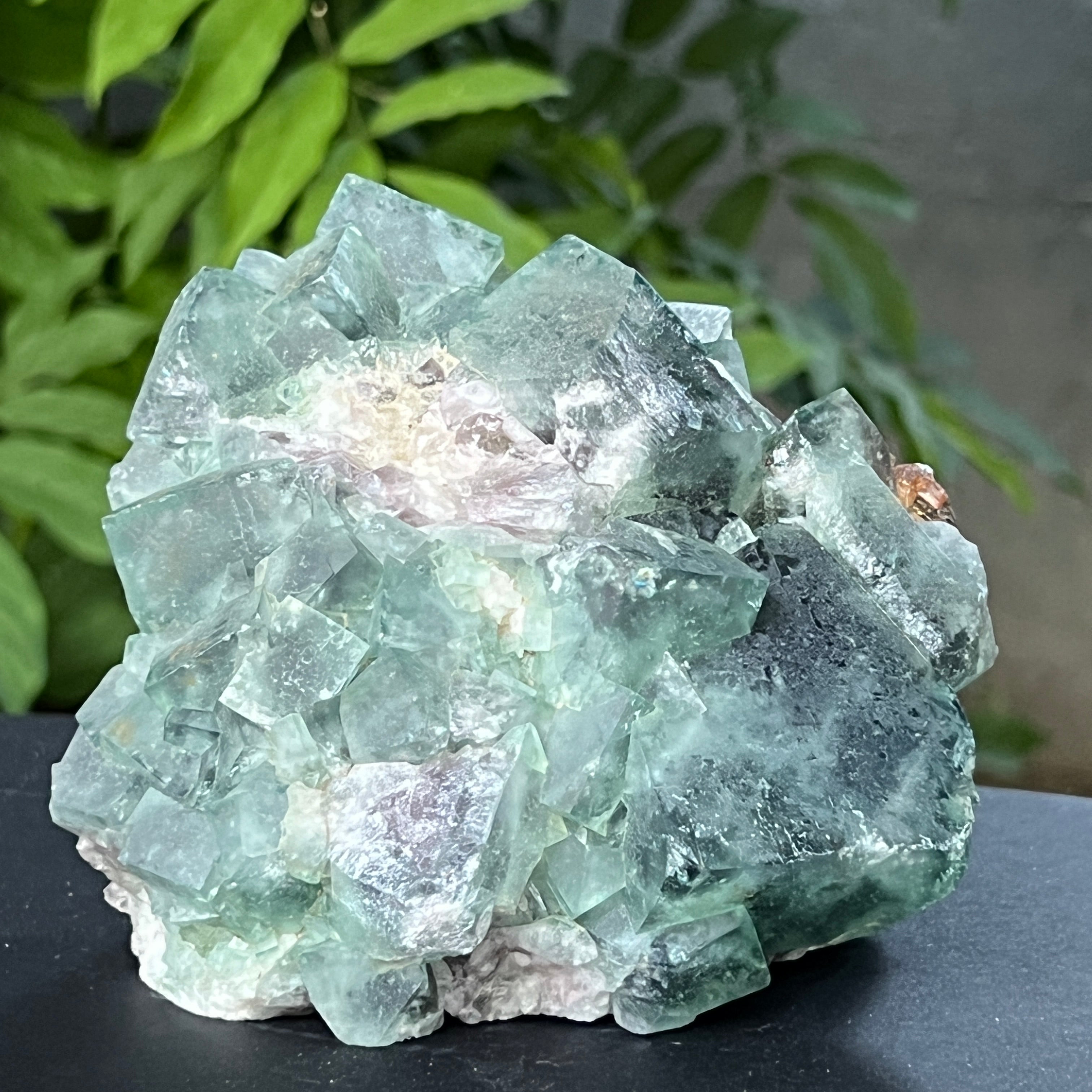 Този екземпляр вярно илюстрира типичните черти на флуорита: перфектна кубична форма, частична прозрачност и нюанс, който варира леко в зависимост от химическия му състав и условията на кристализация. Присъствието на цвят – било то зелен, виолетов, син или жълт – се свързва с включвания и естествени примеси като иттрий, керий или следи от въглеводороди, а цветната зоналност предоставя ценна информация за промените в средата на образуване.