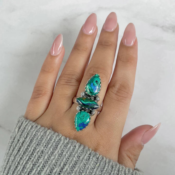 Изберете сега сребърен пръстен с натурален азурит-малахит и носете със себе си хармонията между дълбочината на азурита и възстановяващата енергия на малахита. Уникално бижу с впечатляващ контраст от цветове, което вдъхновява баланс, яснота и вътрешна сила. 💙💚