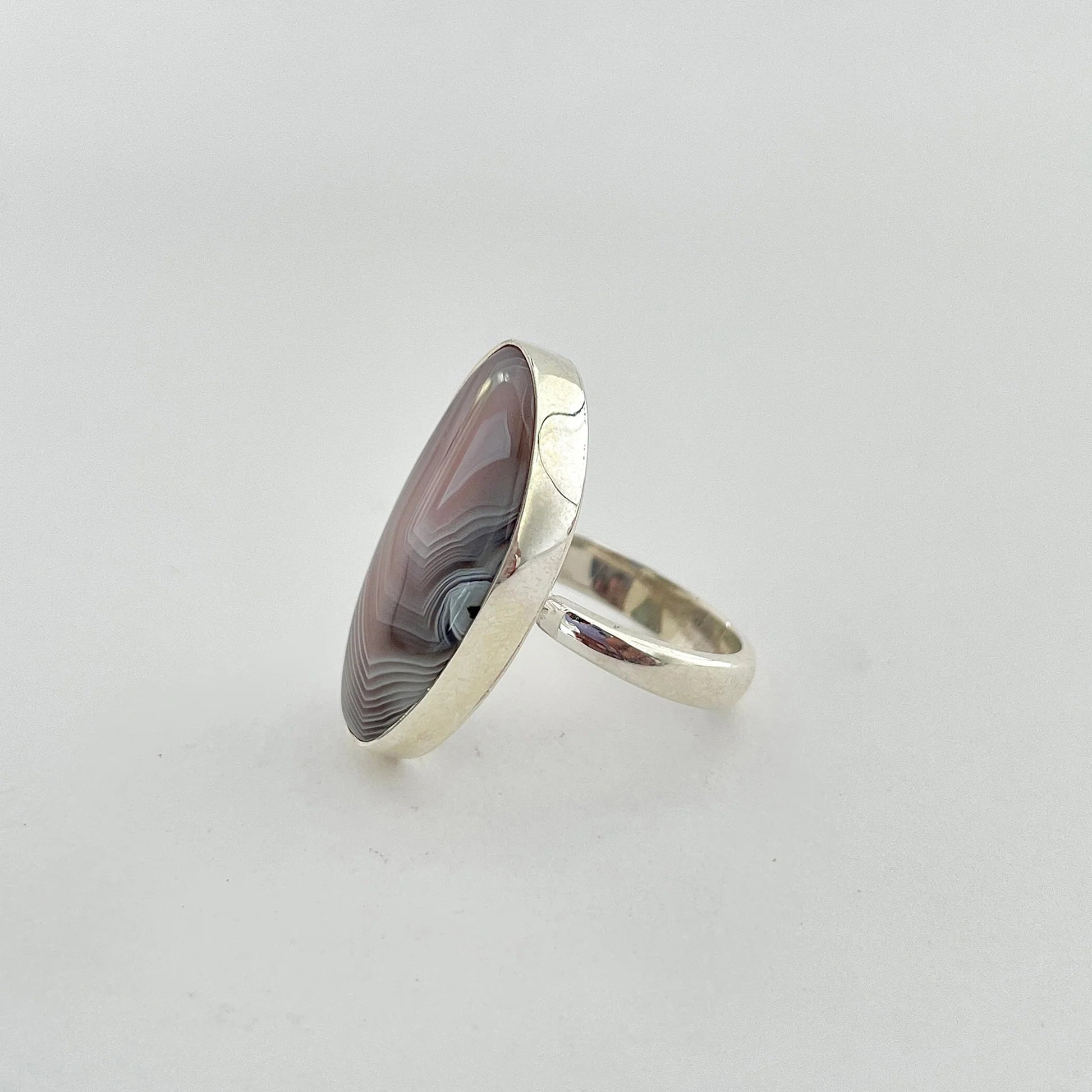 Пръстен от ботсвански сребърен ахат | Модел 1