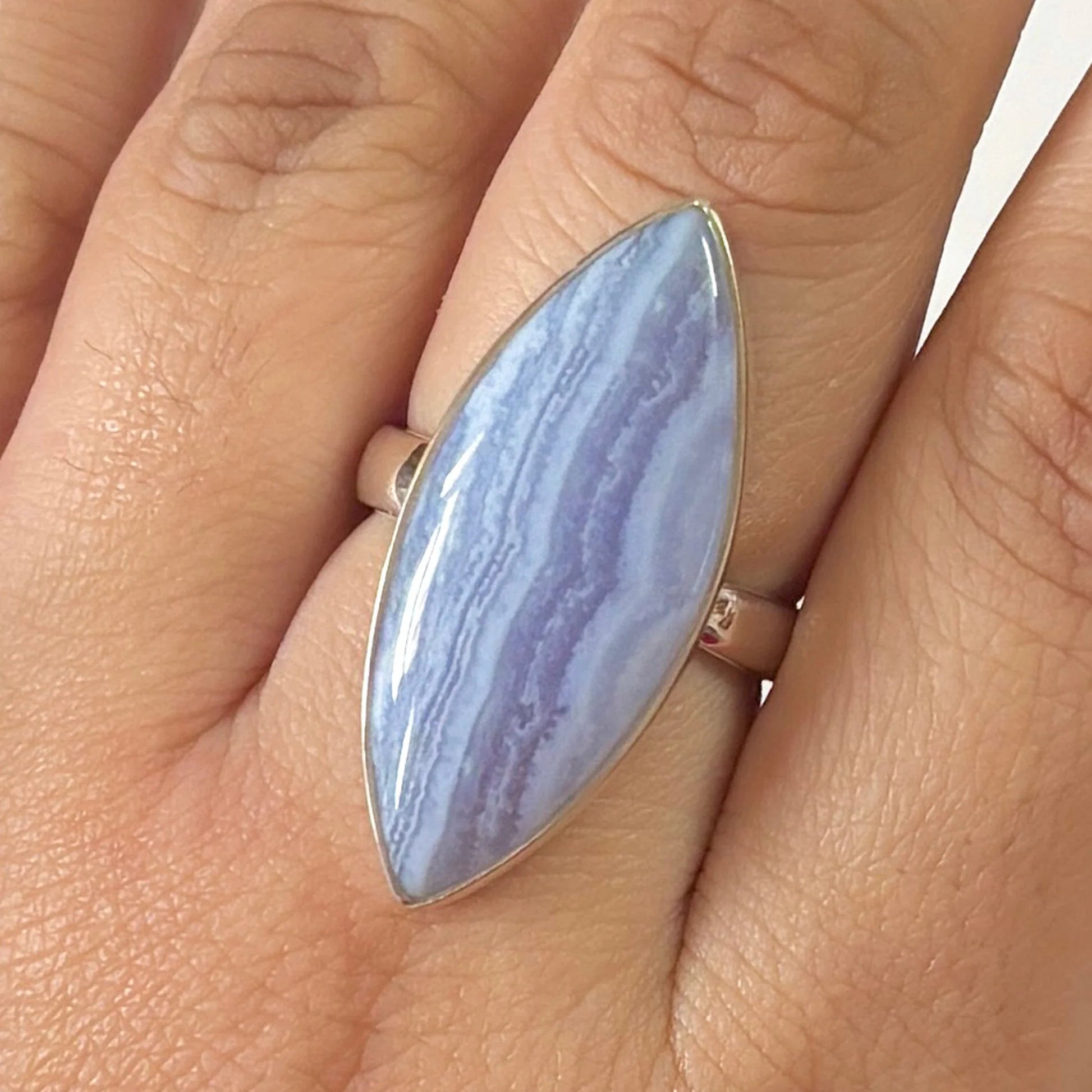 Открийте нашата колекция от бижута със синьо дантелен халцедон, където всеки камък разказва история за спокойствие, яснота и вътрешна красота, която тихо излъчва.