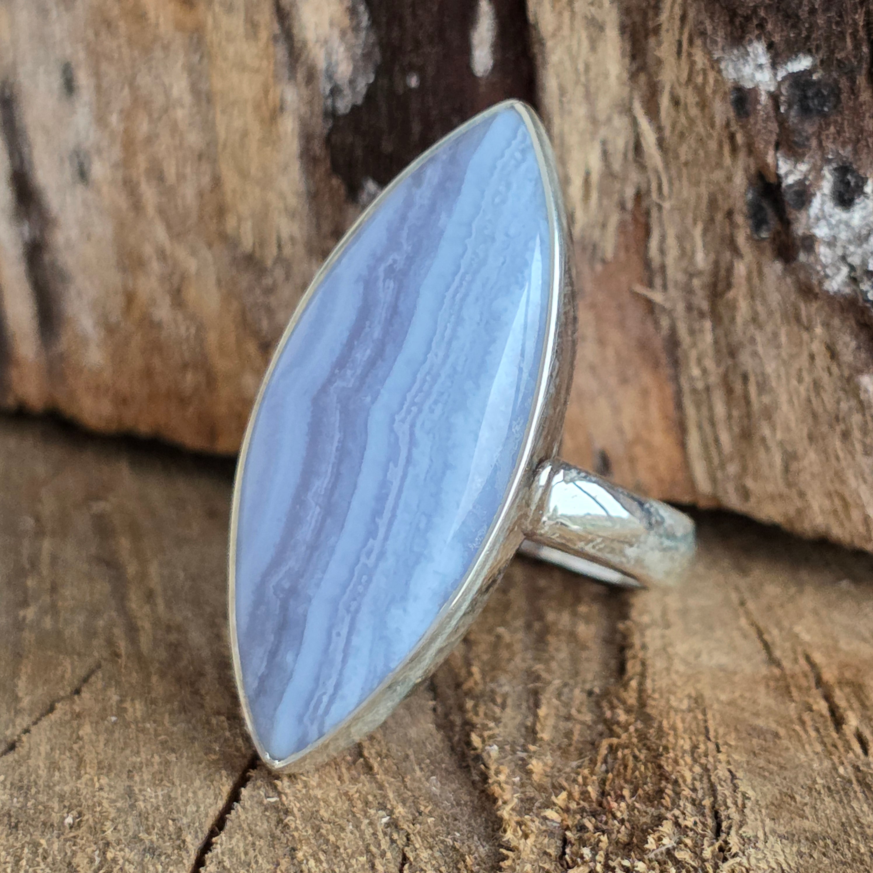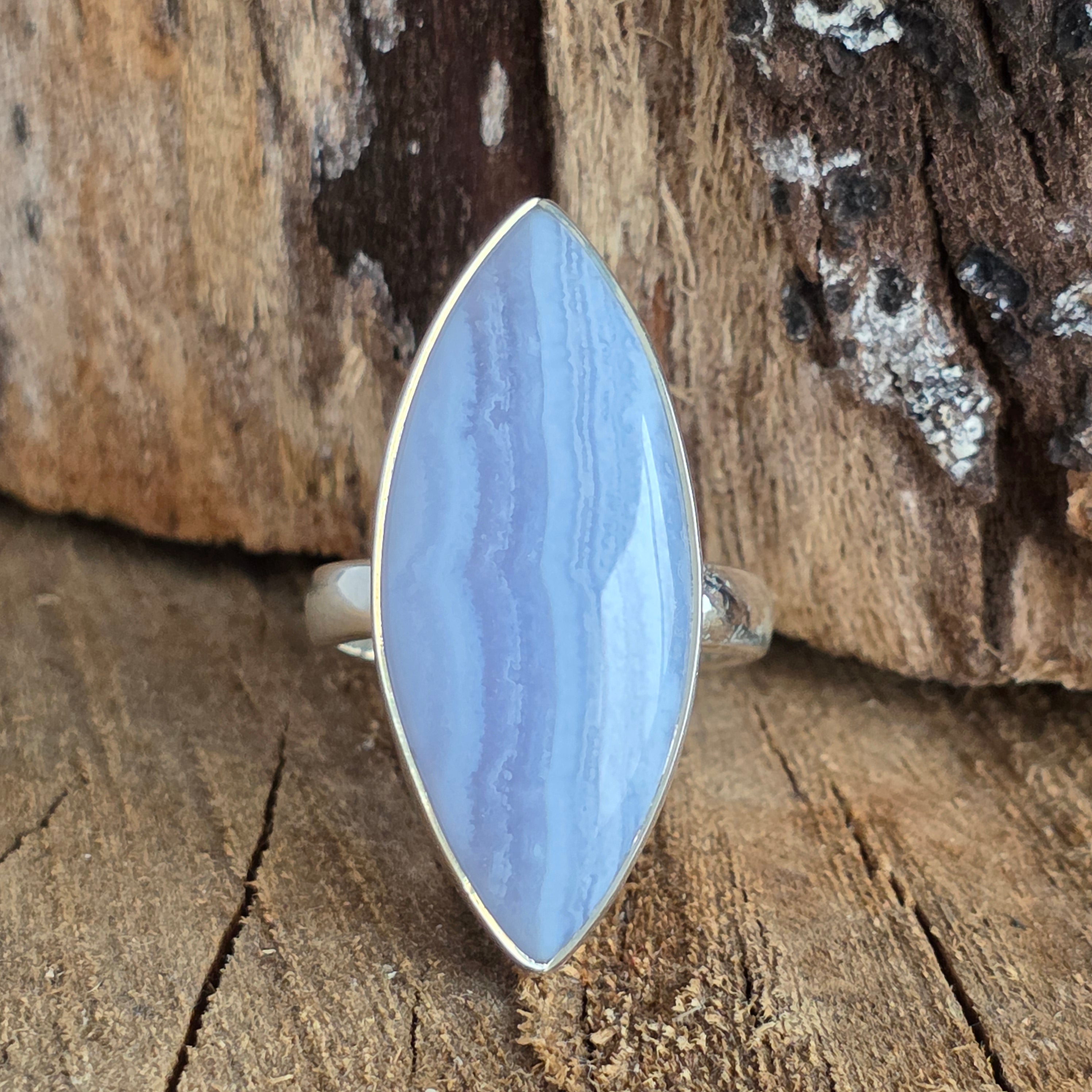 Пръстен от синьо дантелен халцедон сребро | Модел 1
