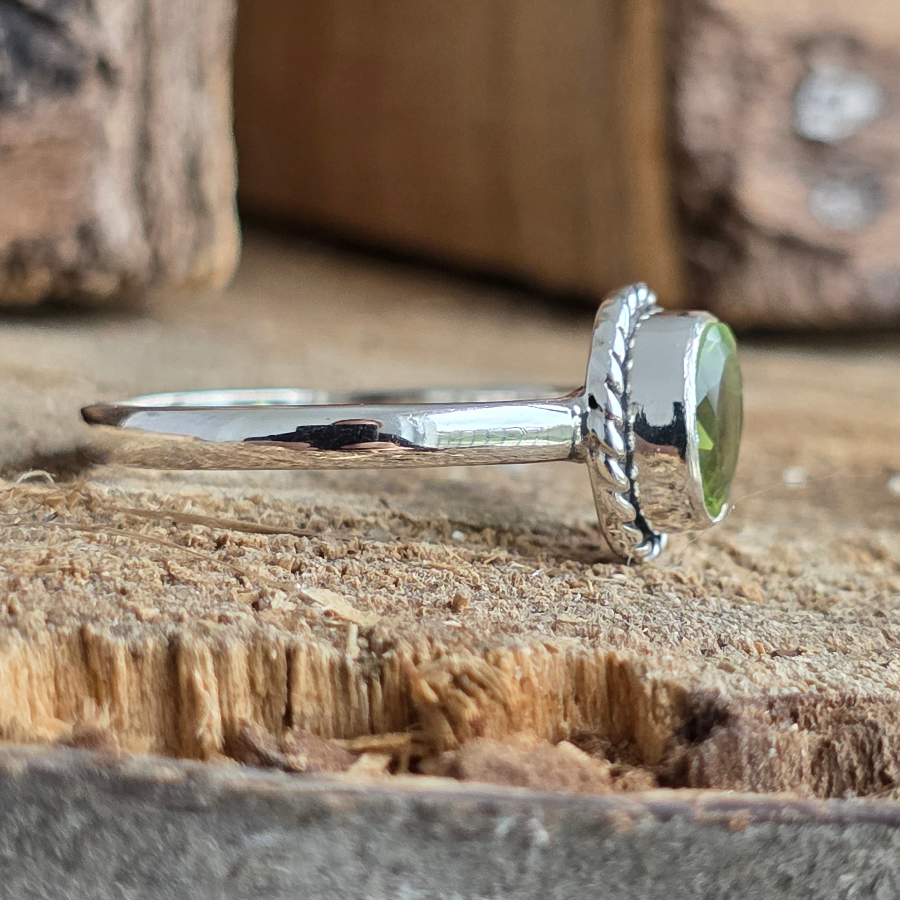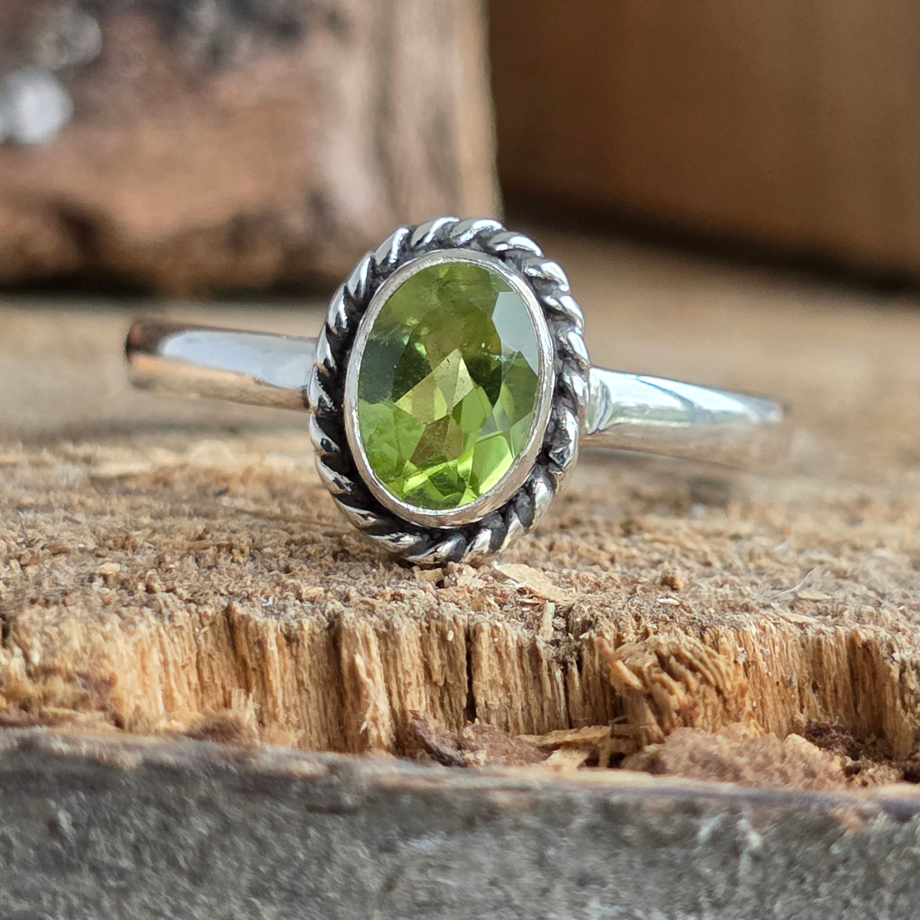 Зелено-лимовият блясък на перидота улавя енергията на вечното лято – камък на жизнеността, оптимизма и обновлението. Монтиран в деликатен дизайн от сребро 925, този пръстен от Колекция AURA отразява перфектния баланс между изисканост и естественост.