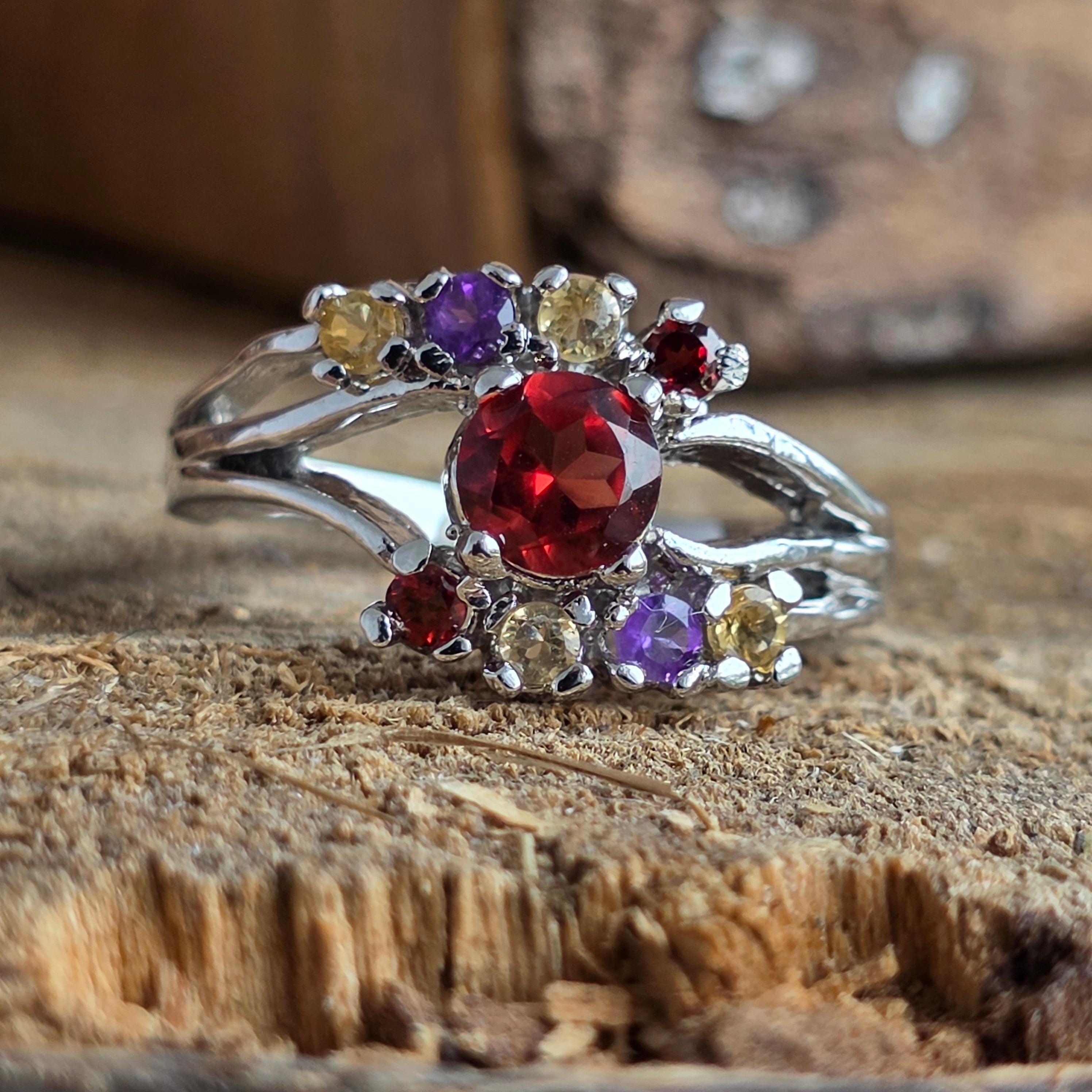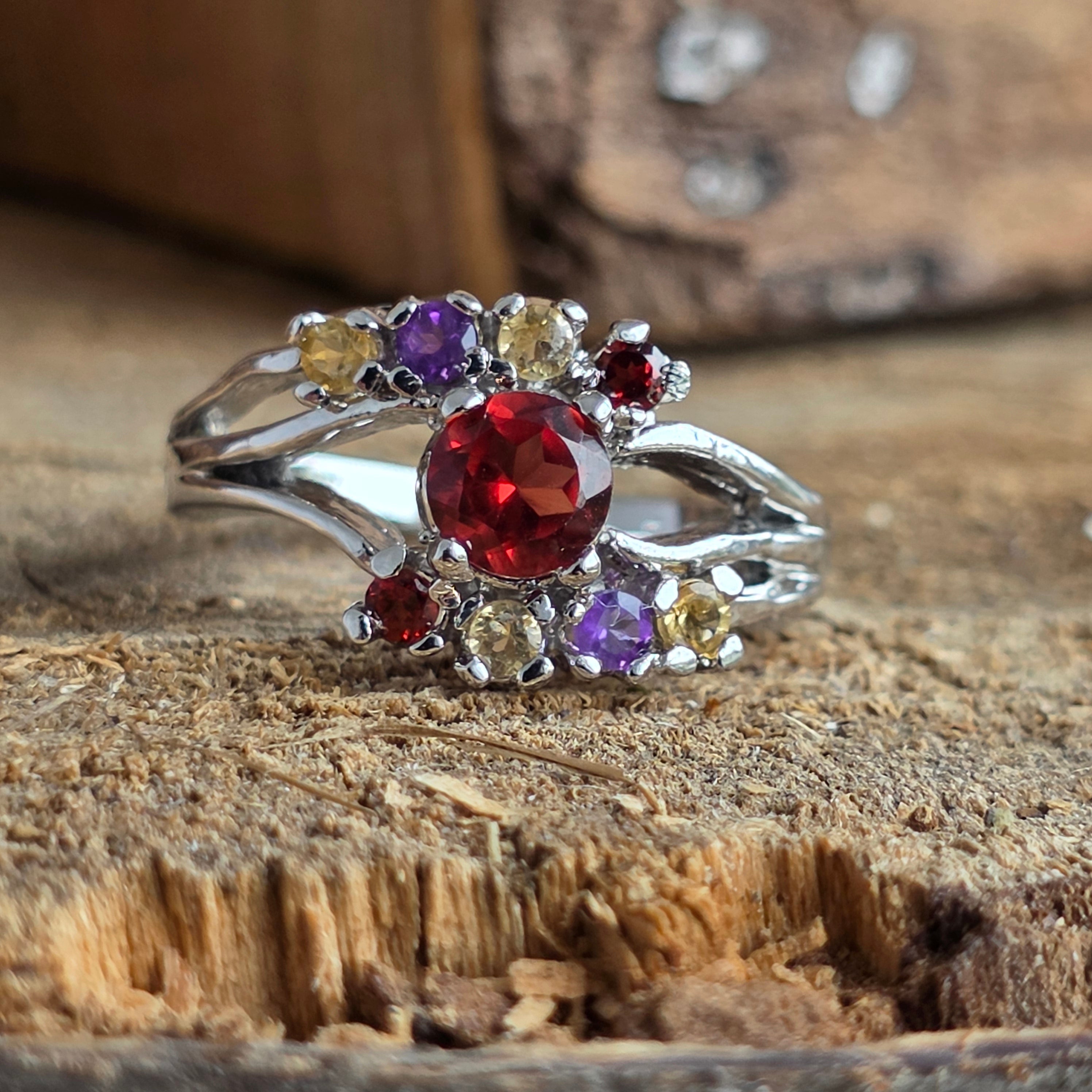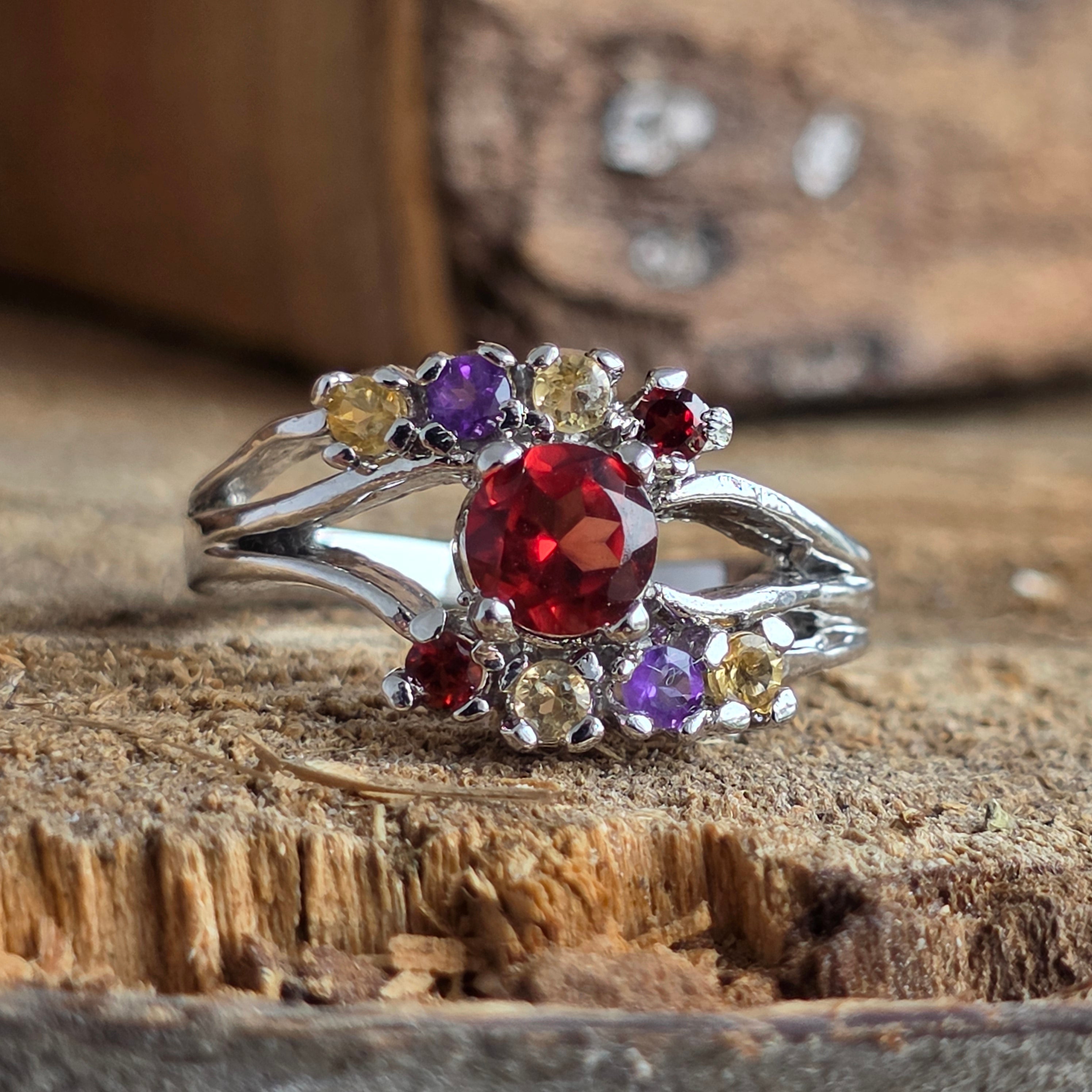 Ревюта – Пръстен с аметист, гранат и цитрин от сребро | TRIO