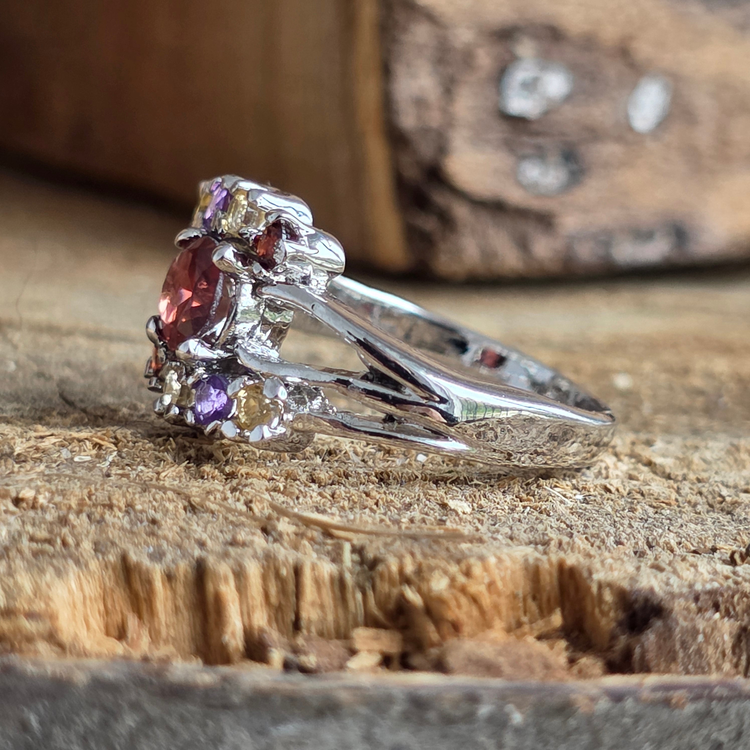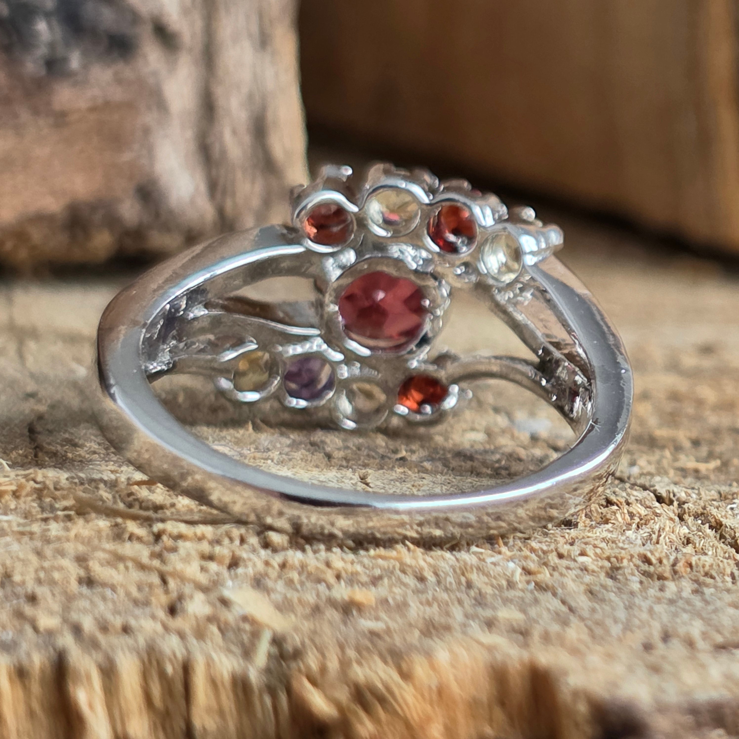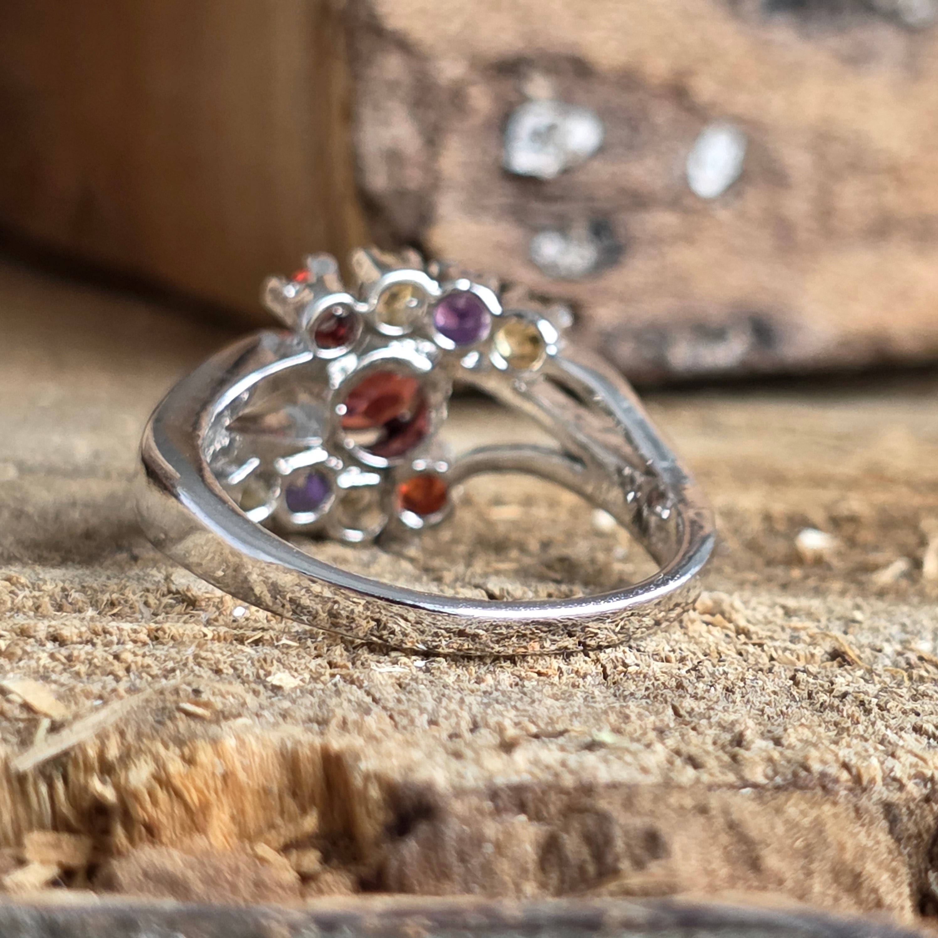Ревюта – Пръстен с аметист, гранат и цитрин от сребро | TRIO