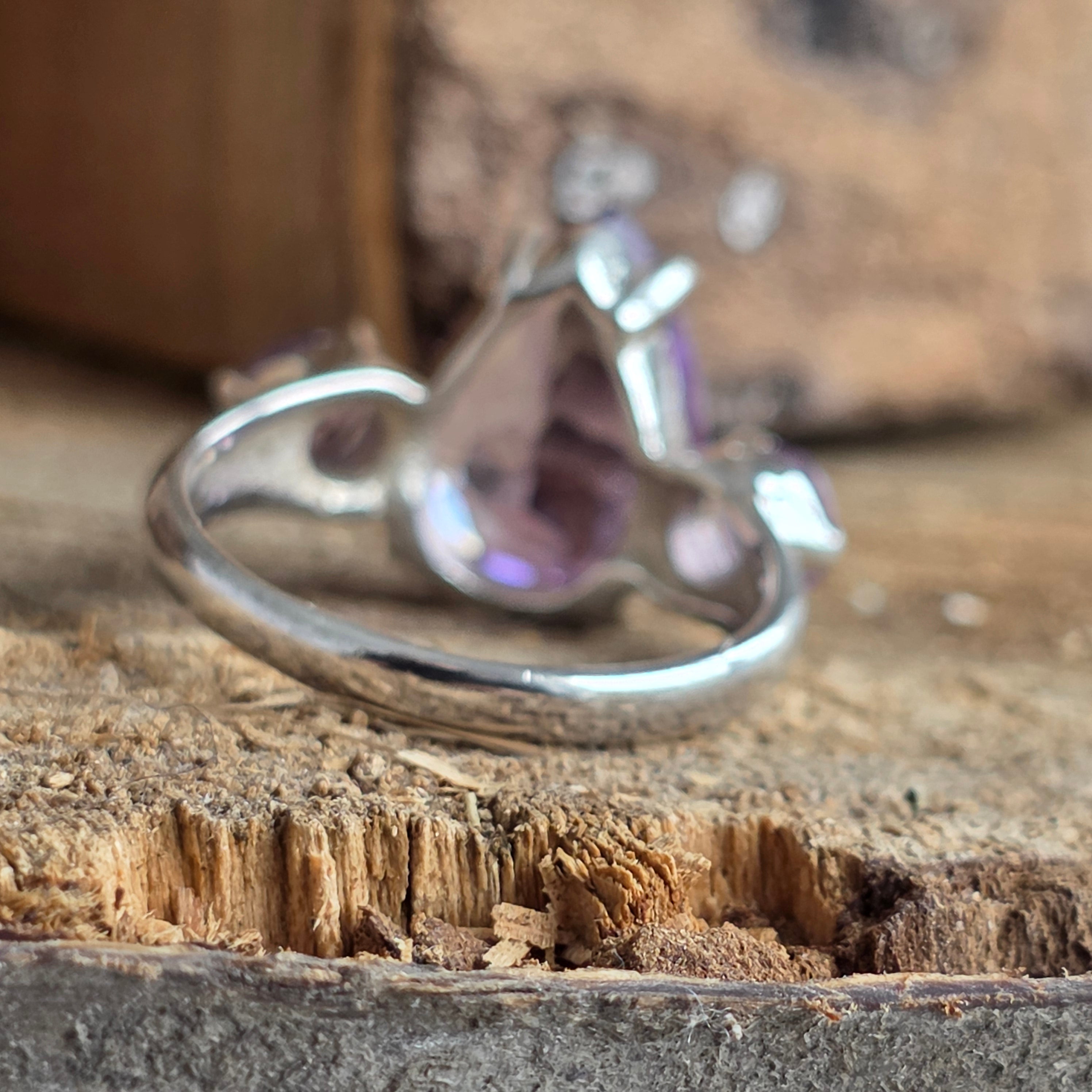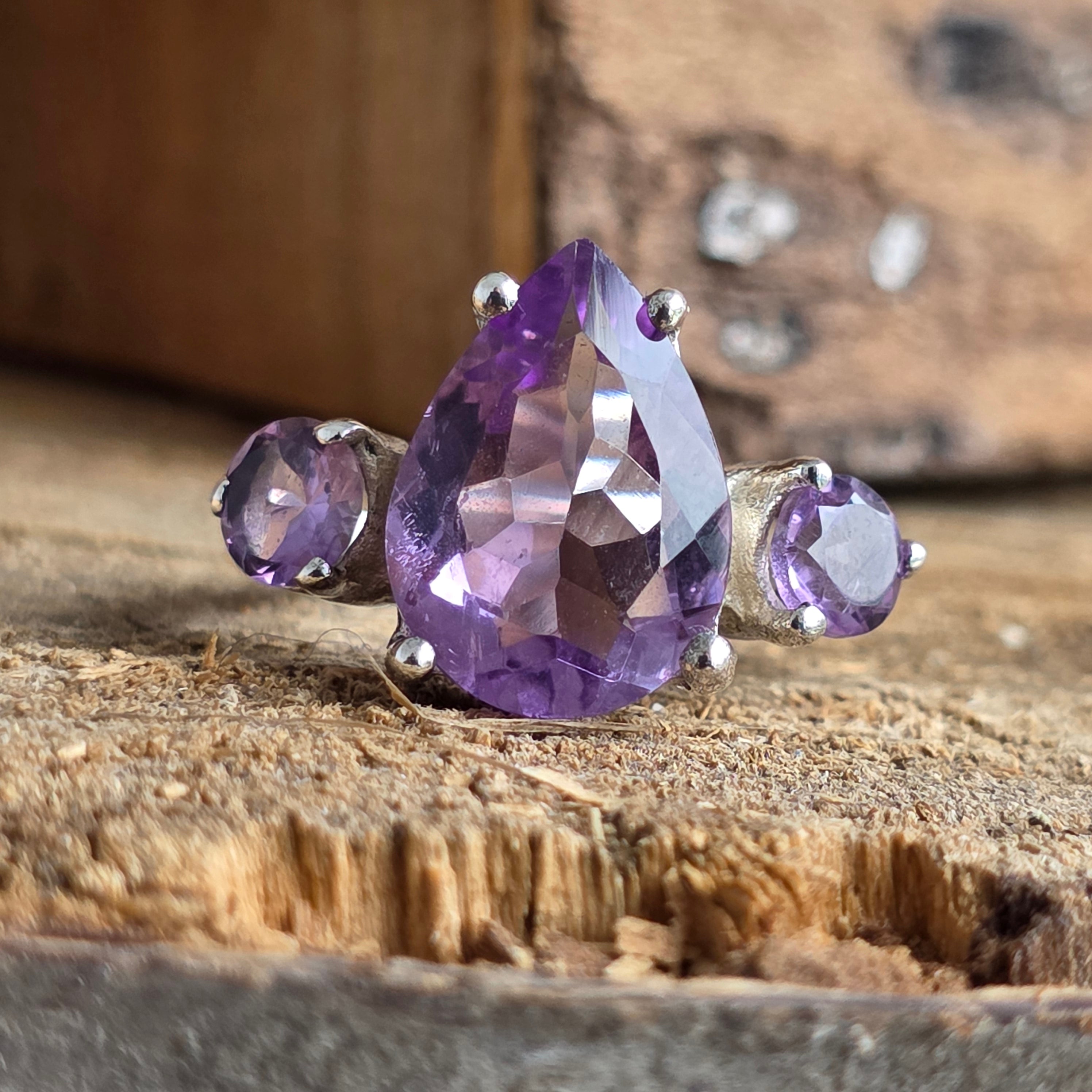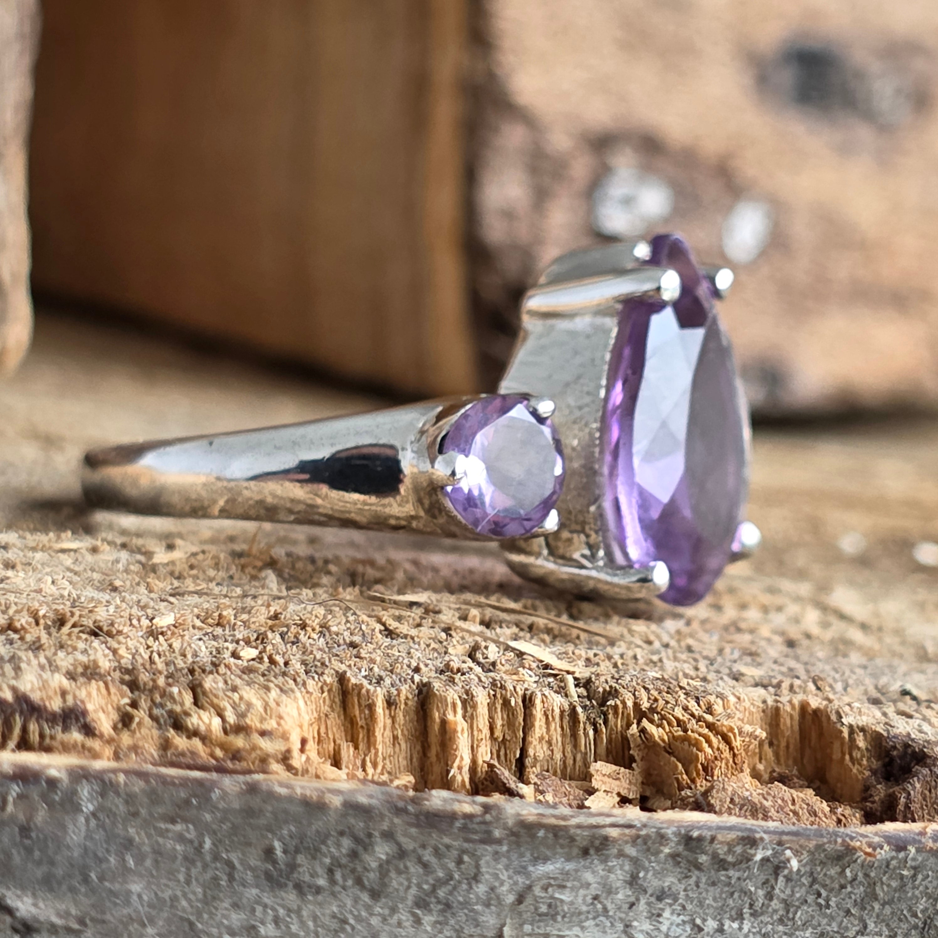 Един артикул с кралско присъствие – този сребърен пръстен 925 подчертава дълбоката красота на естествения аметист, камъкът на яснота и вътрешен баланс.