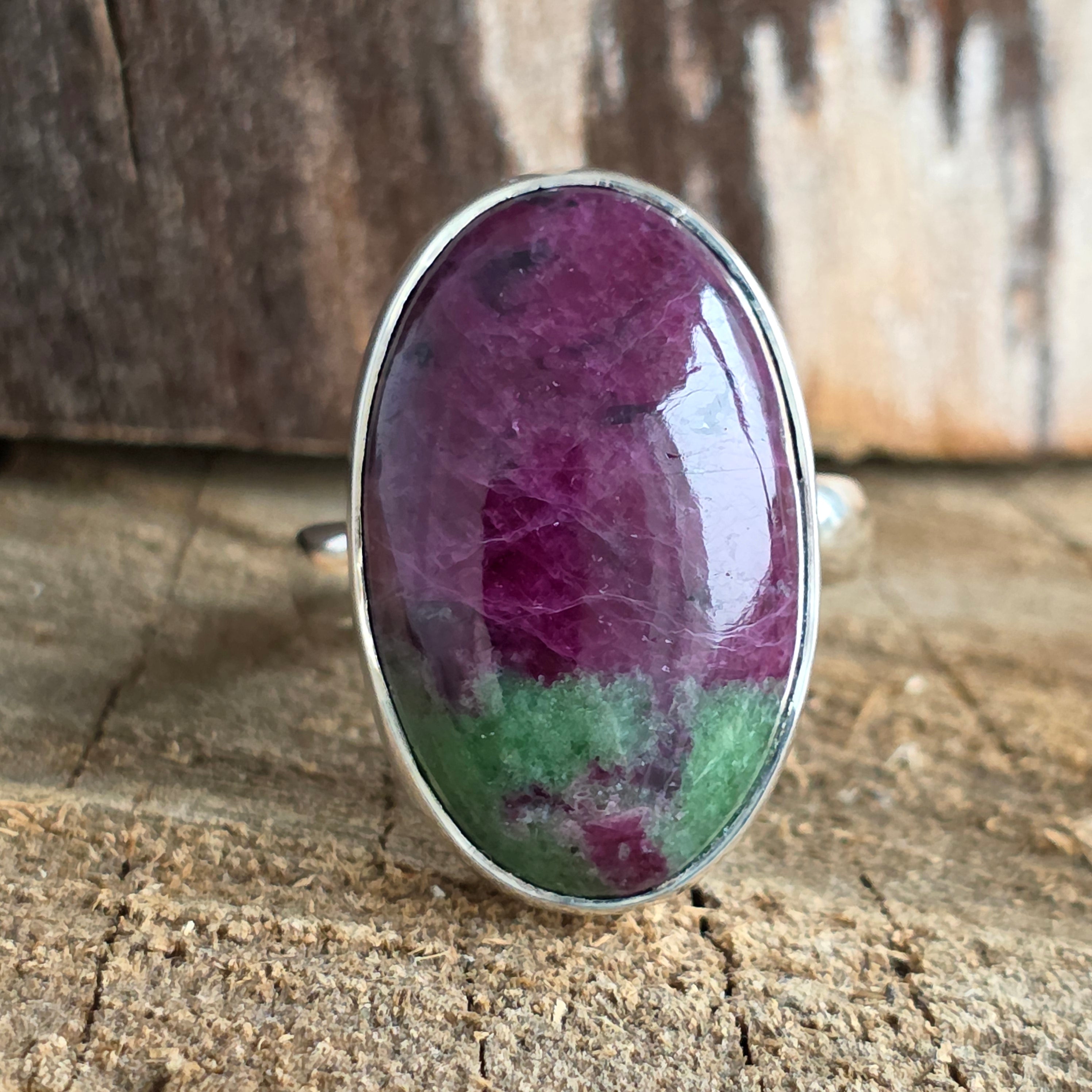 Носете този сребърен пръстен с рубин и зоизит, за да внесете в живота си енергия, баланс и естествена елегантност – уникално бижу, създадено за души, които обичат редки бижута.