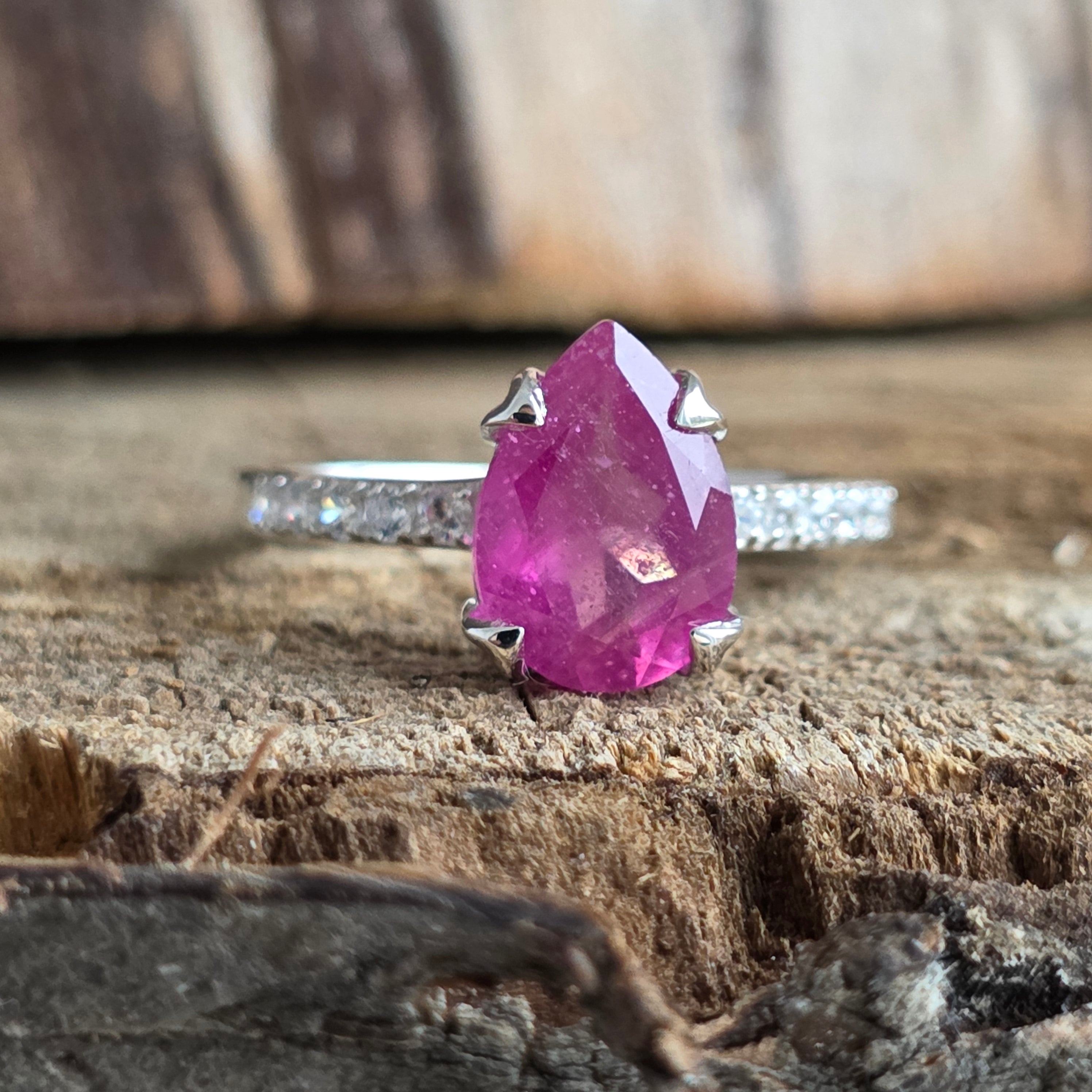 Пръстен с рубин и топаз от сребро Pear 10 мм, моля изберете желаната размер.
