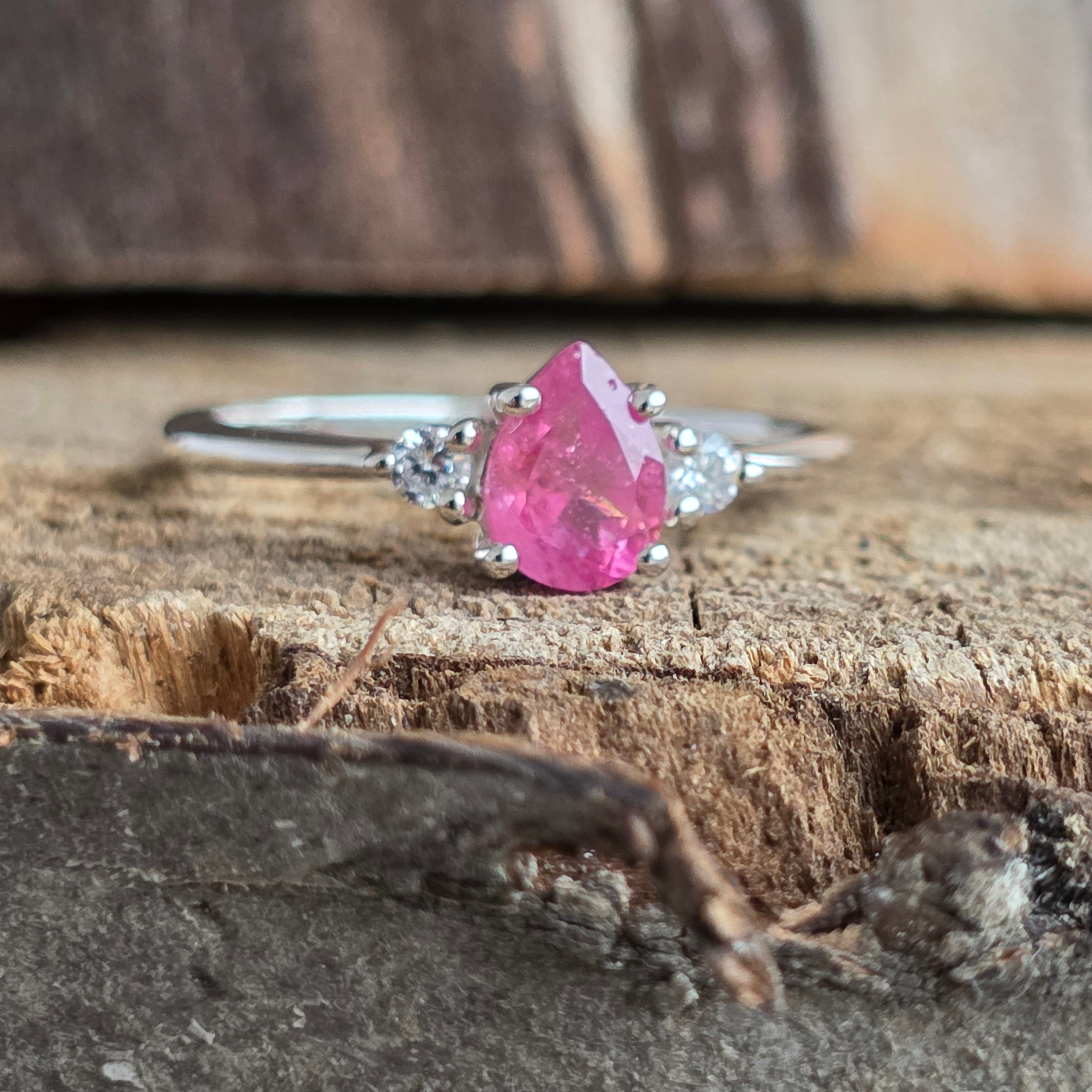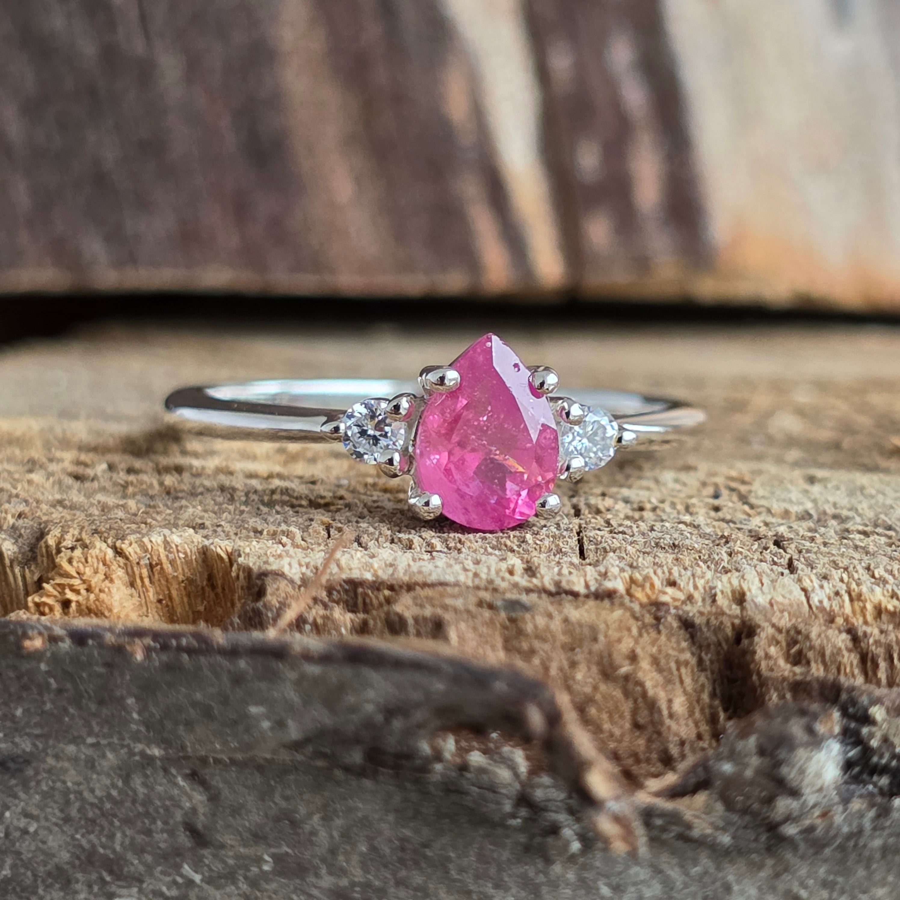 Пръстен с рубин и топаз от сребро Pear 7 мм