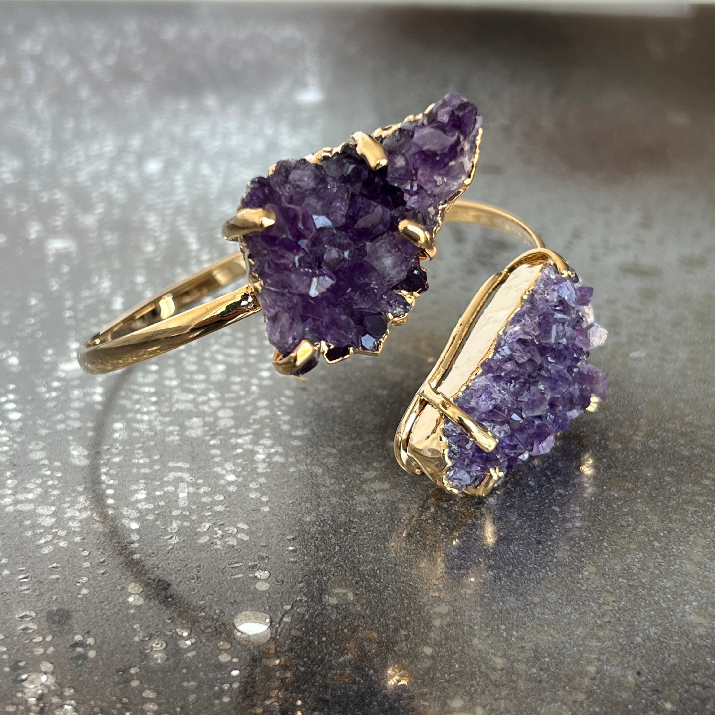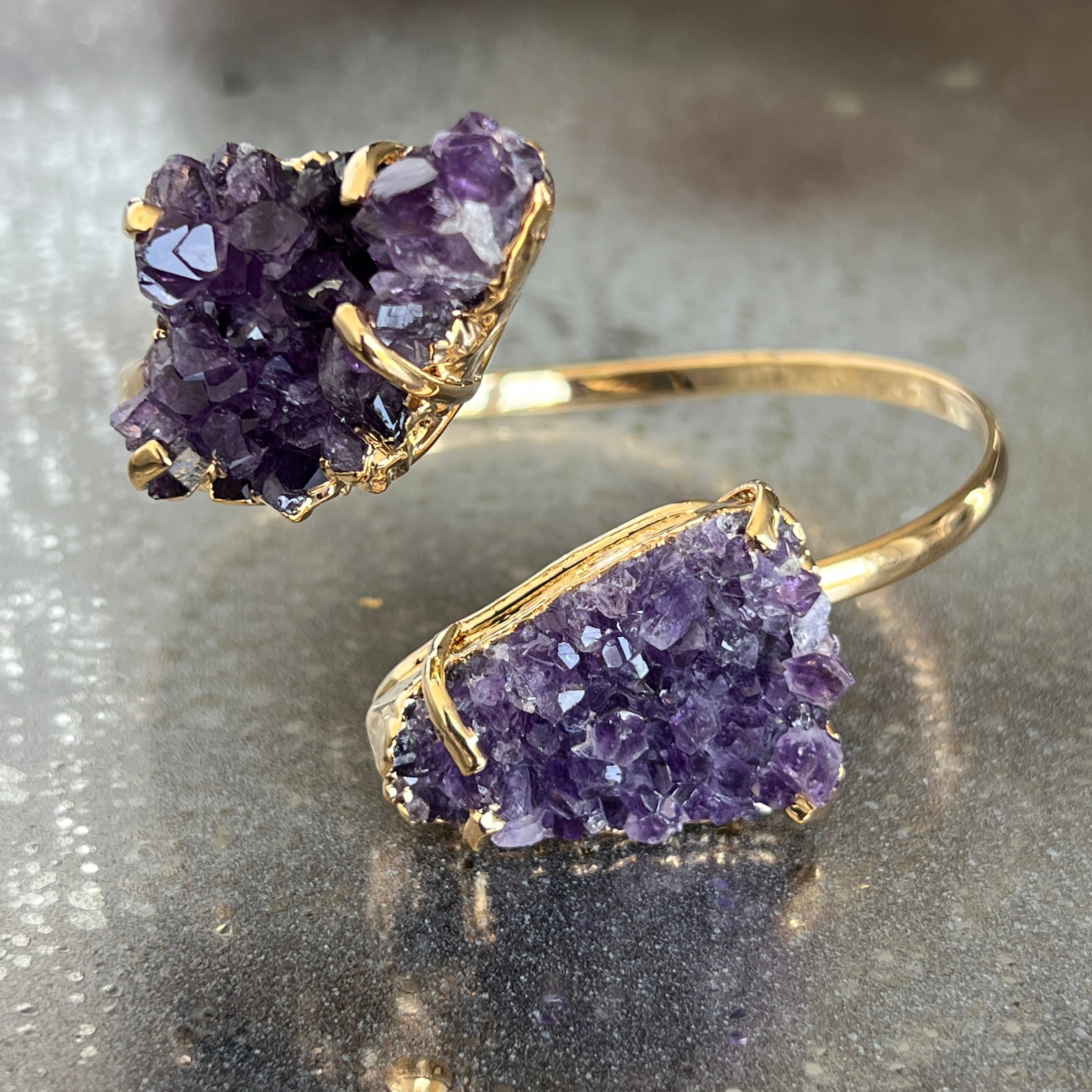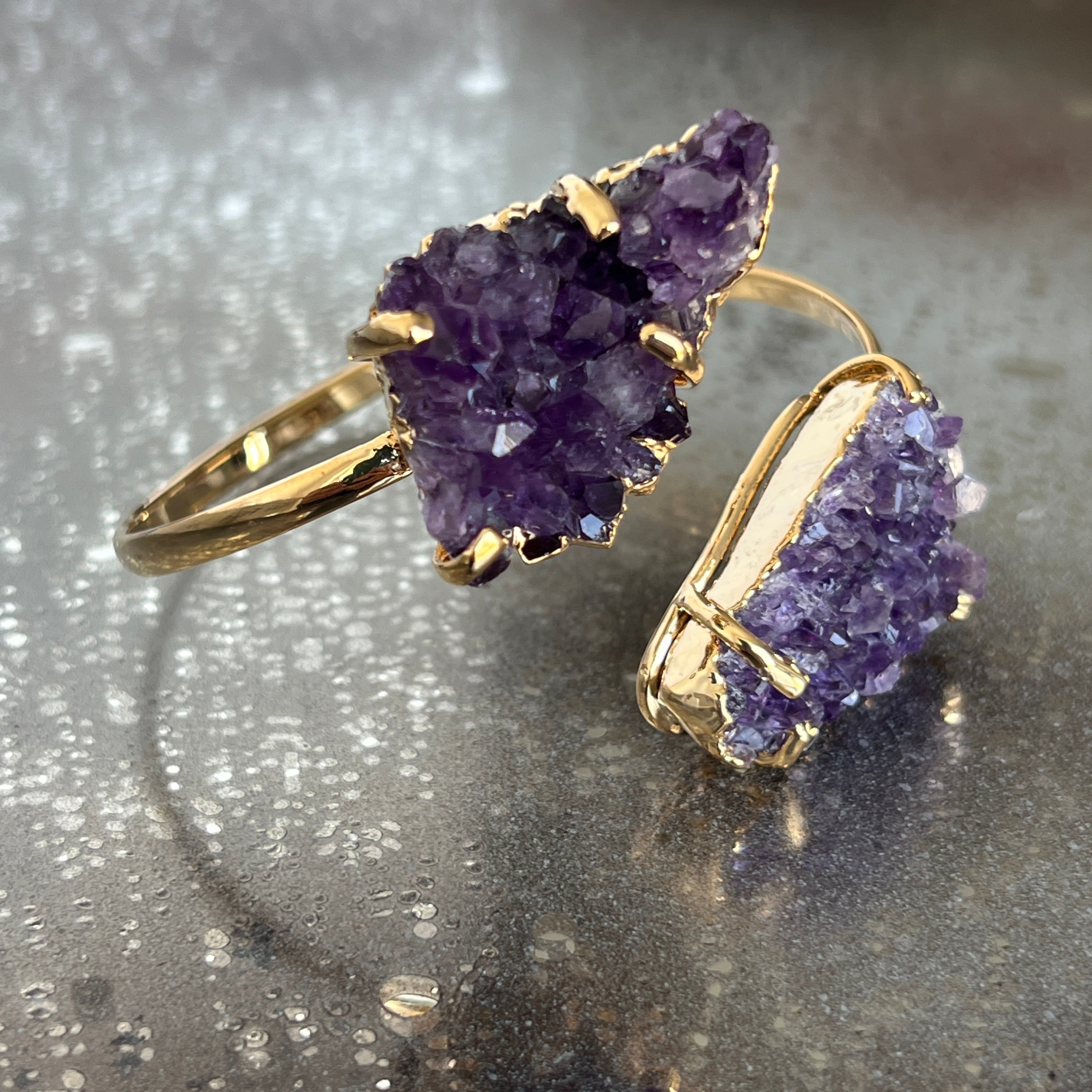 Регулируема гривна, издухана със златен аметист druzy Бразилия модел 2