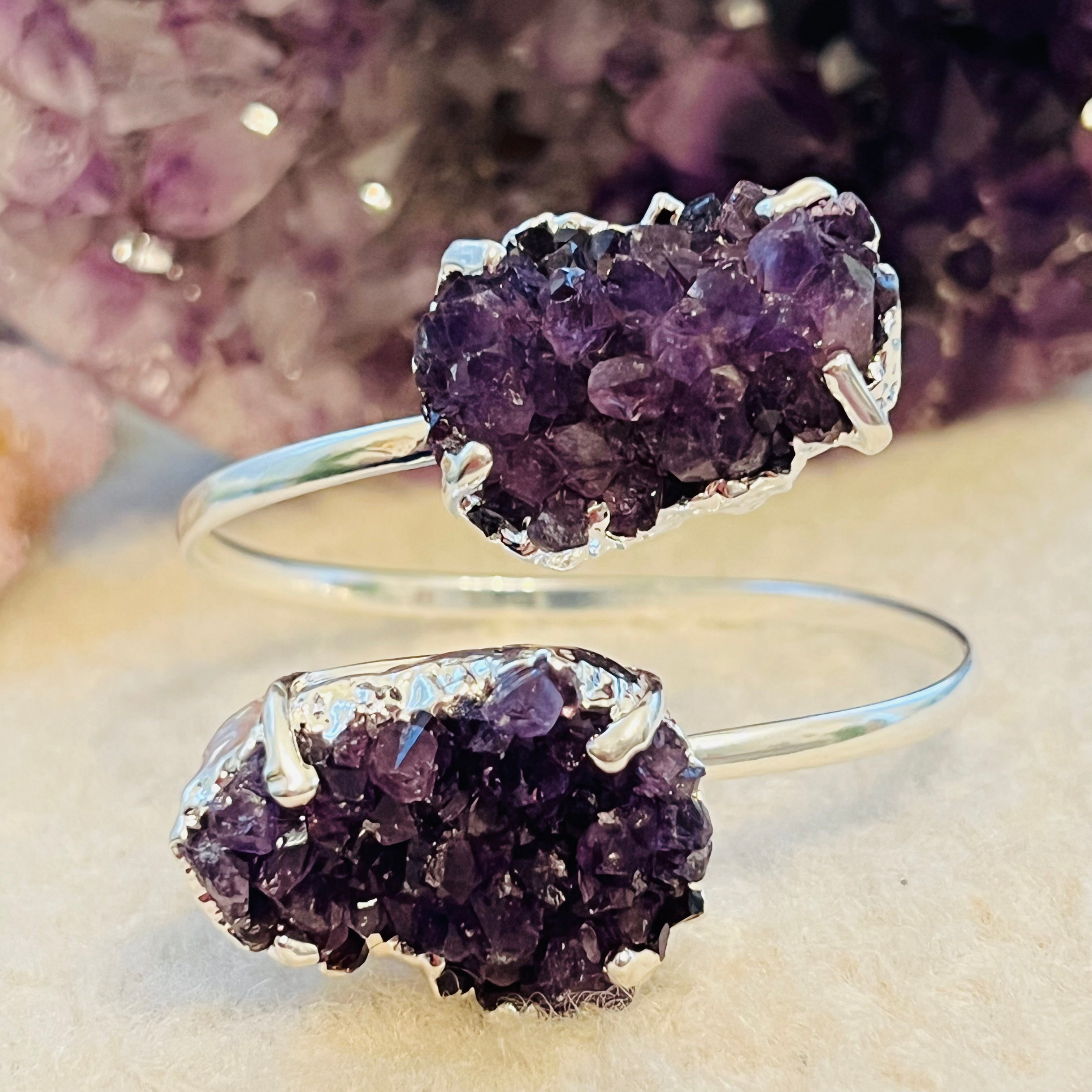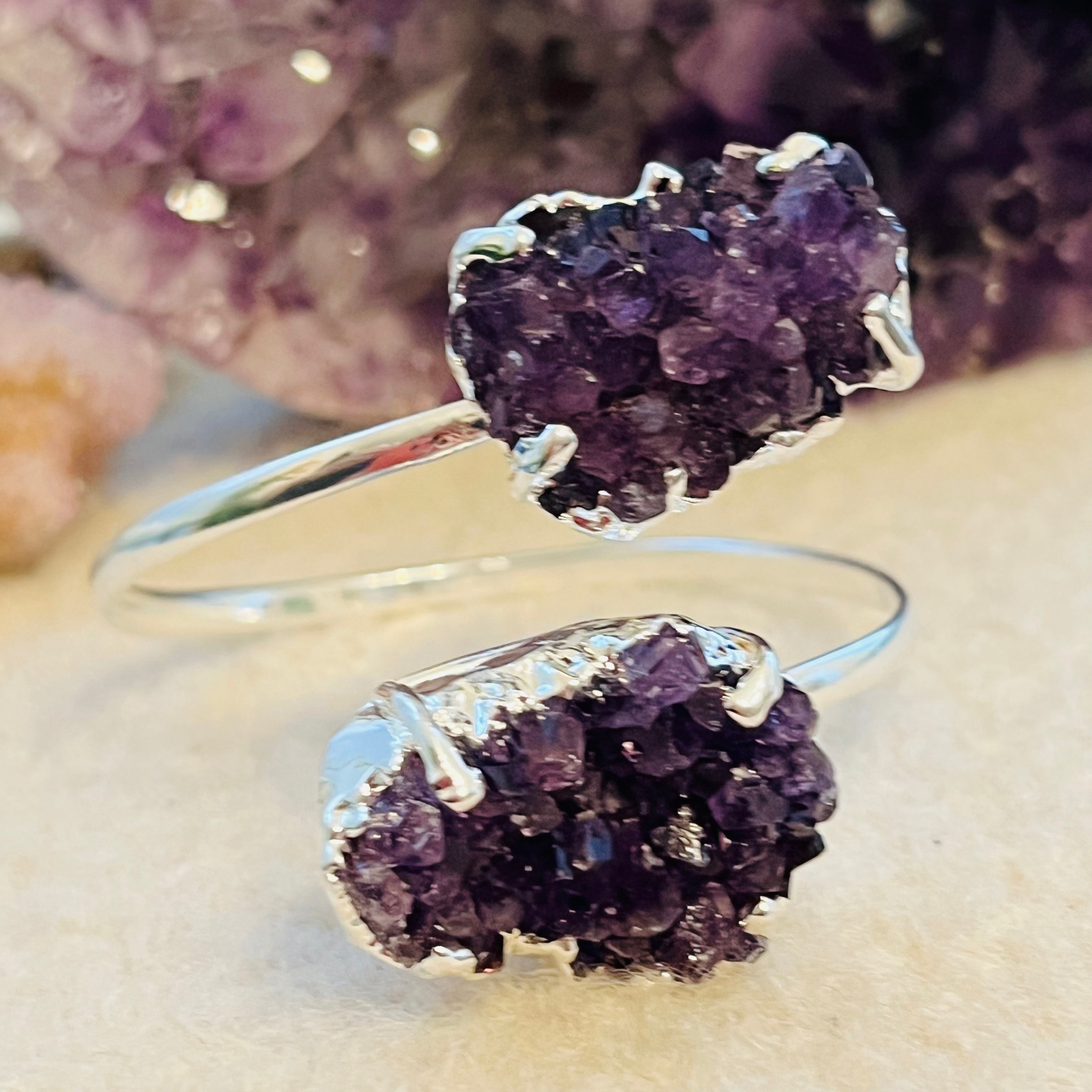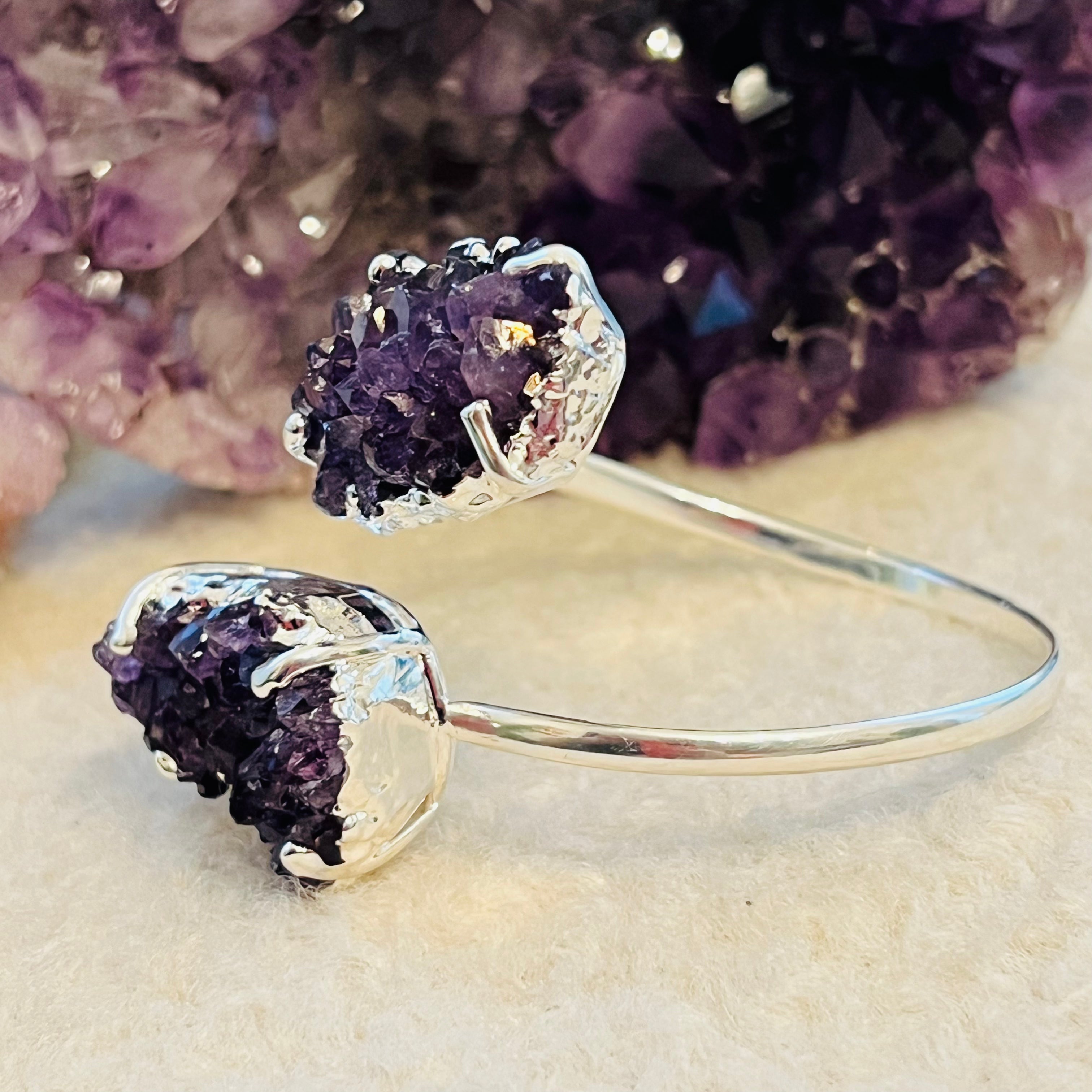 Ревюта – Регулируема гривна, издухана със сребърен аметистов друз Brazil модел 2