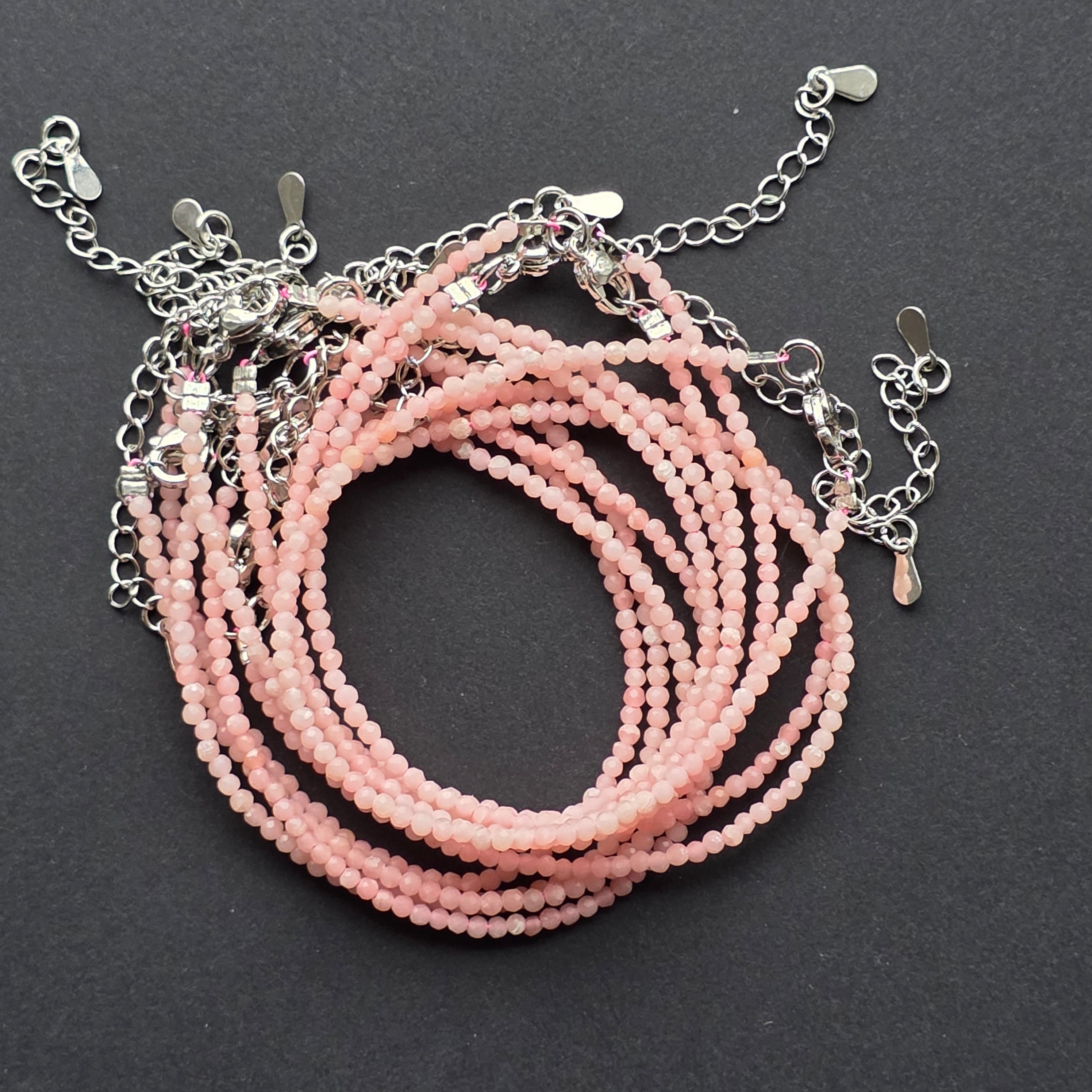 Регулируема фасетирана гривна от розов кварц 2 мм | модел 1