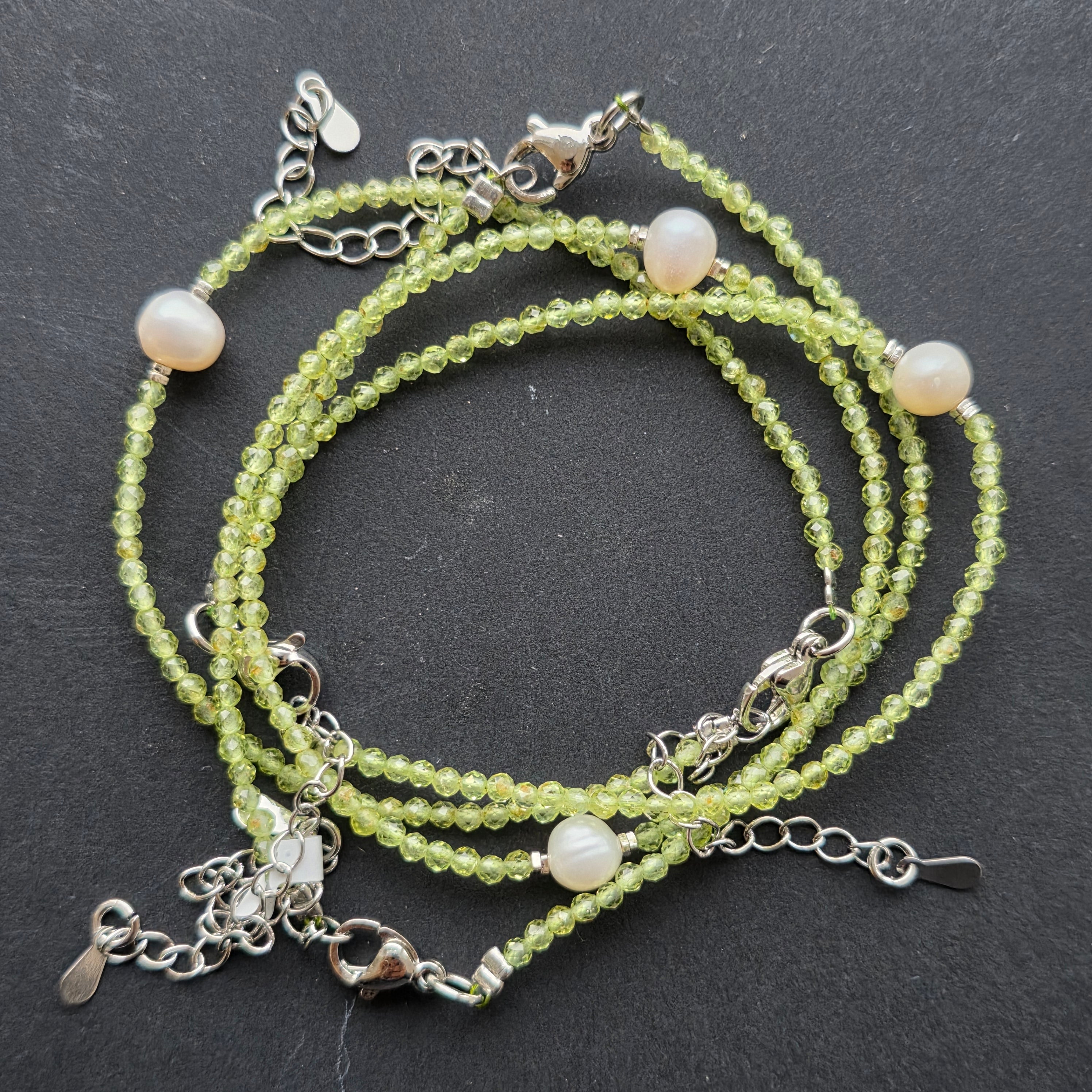 Ревюта – Регулируема фасетирана гривна с перидот 2 мм | Перла