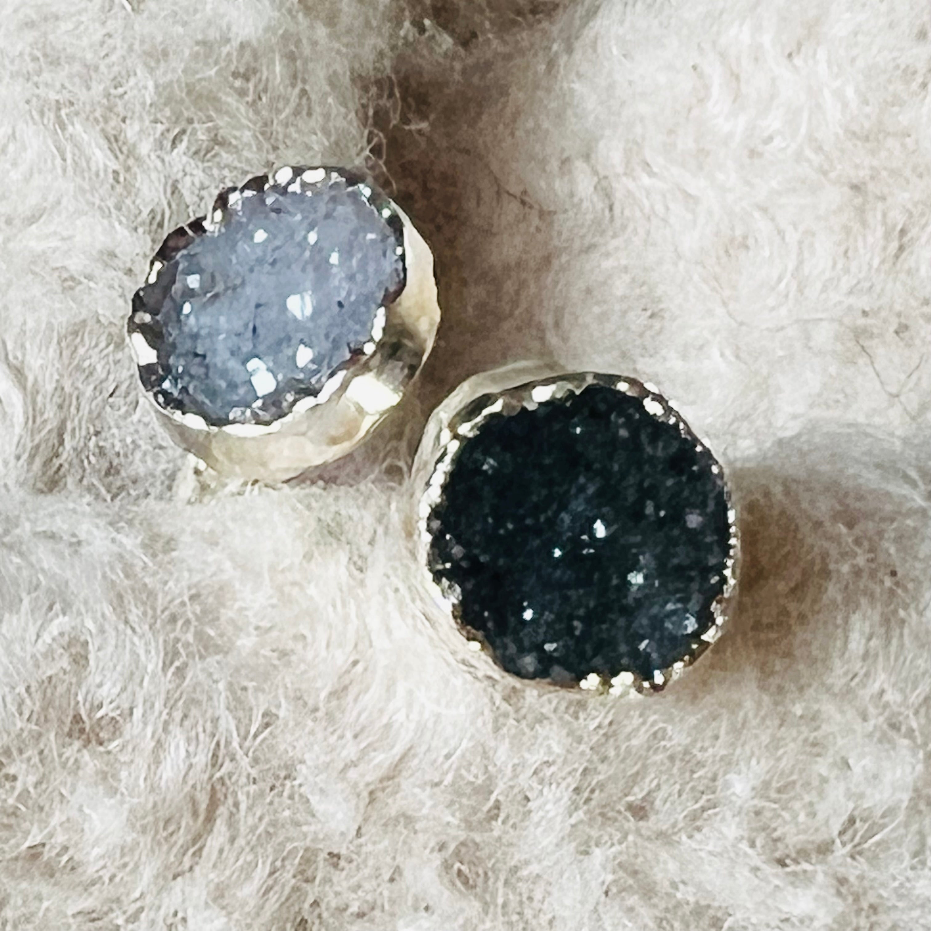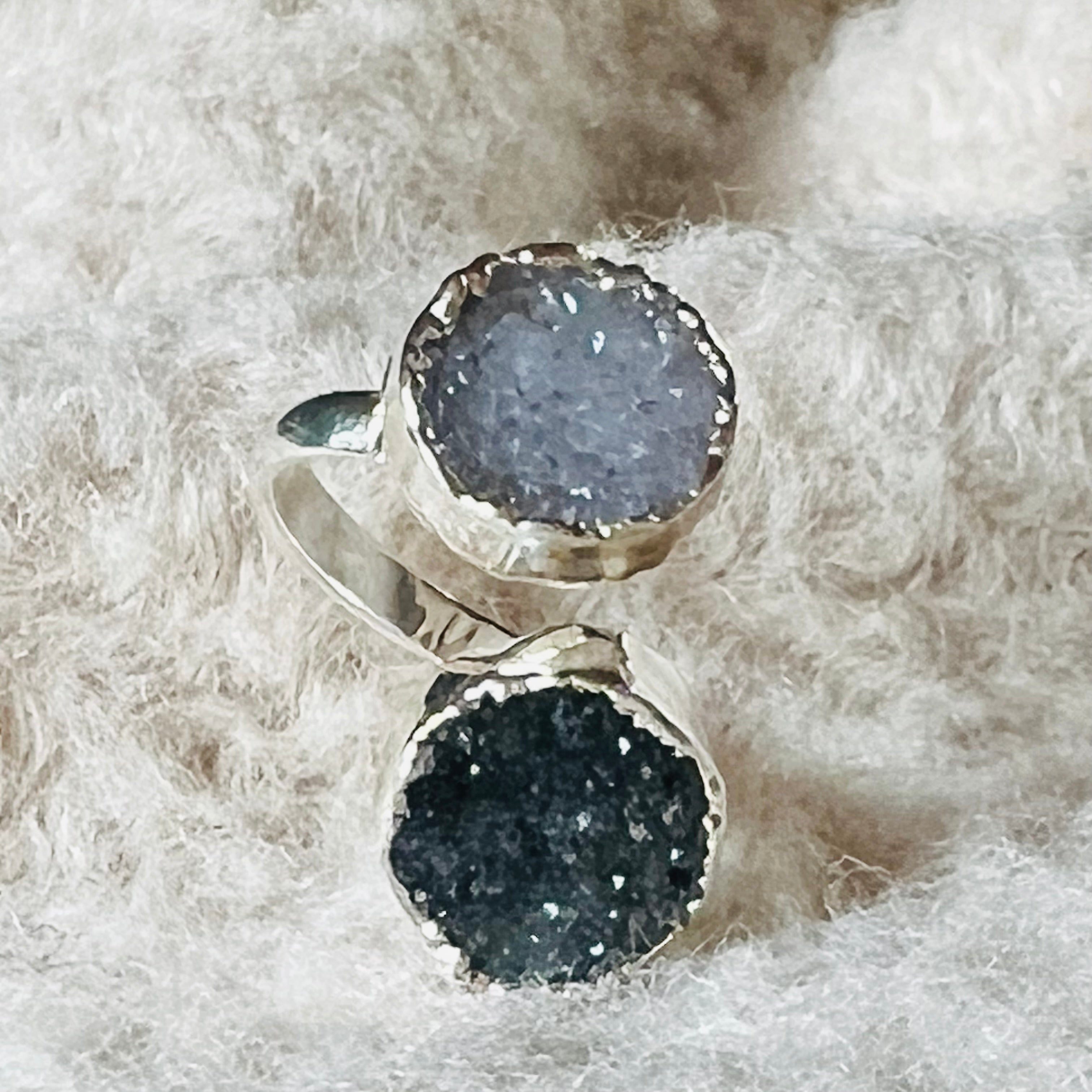 Ревюта – Регулируем пръстен агат друзи Кръгове, покрит със сребро от Бразилия, модел 1