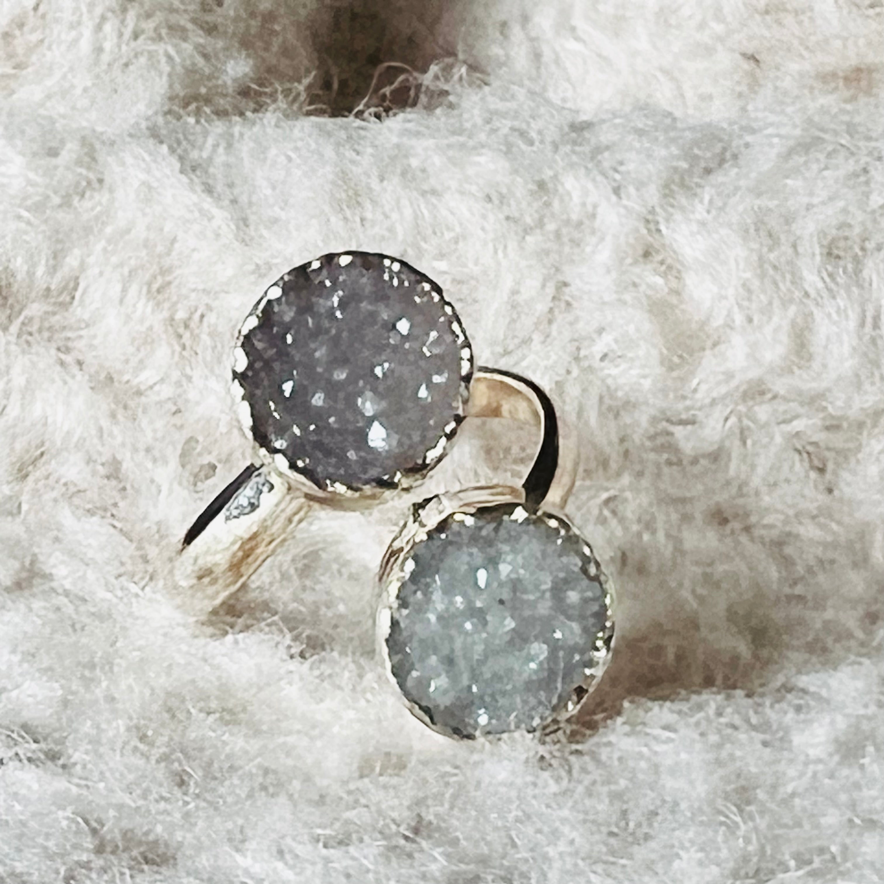 Ревюта – Регулируем пръстен агат друзи Кръгове, покрит със сребро от Бразилия, модел 6