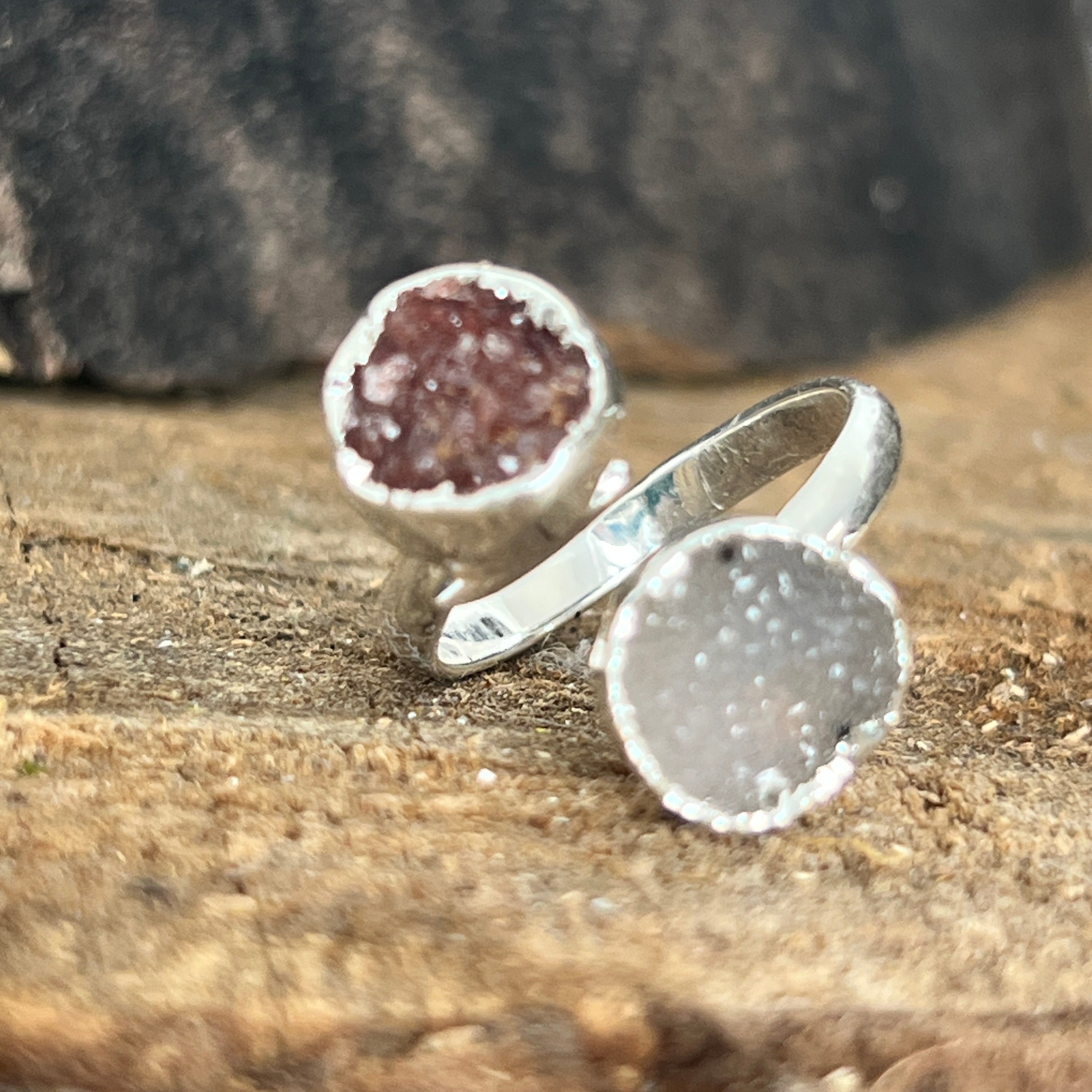 Ревюта – Регулируем пръстен с агат друзи „Circles“, с посребрено покритие от Бразилия | Модел 10
