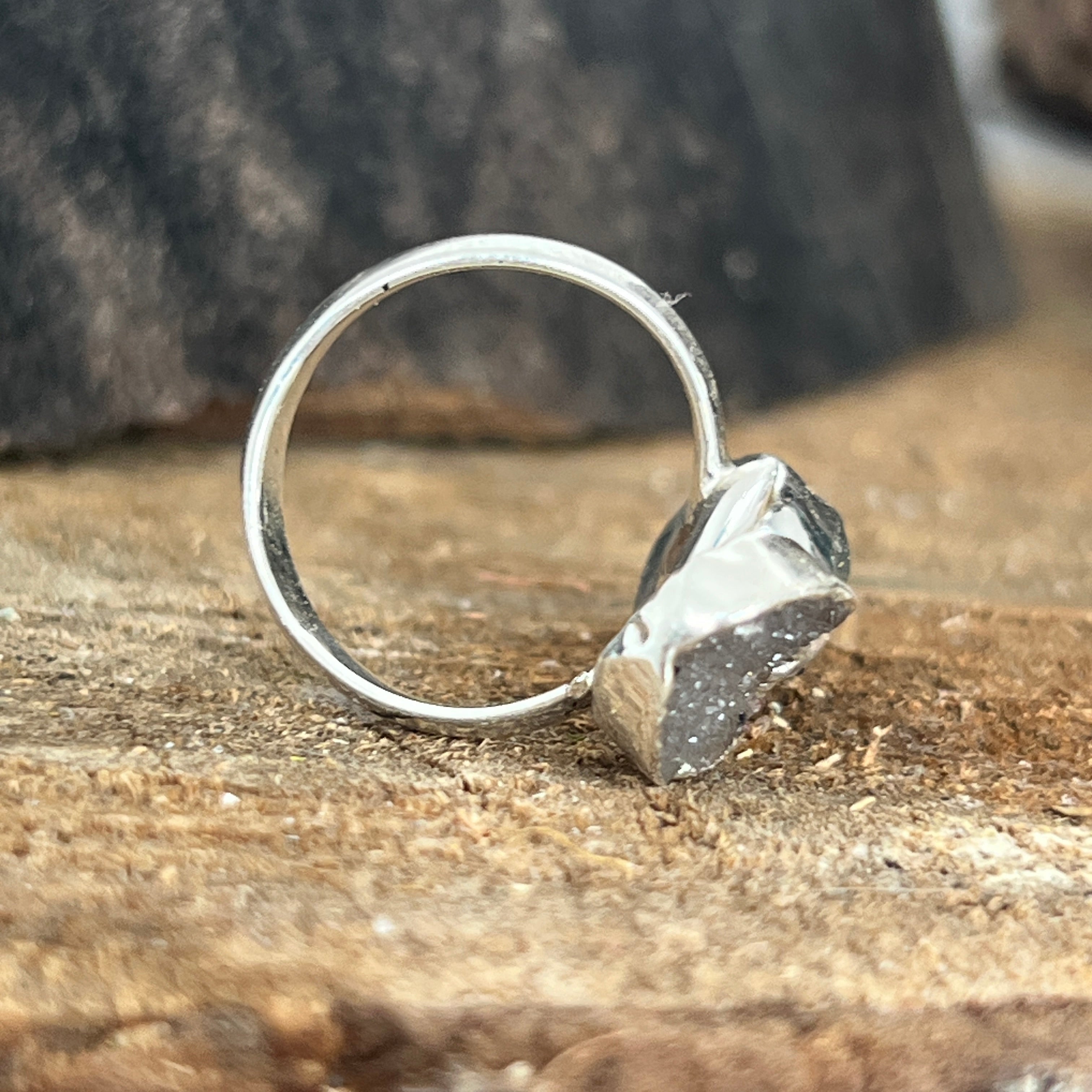 Регулируем пръстен с агат друзи „Circles“, с посребрено покритие от Бразилия | Модел 10