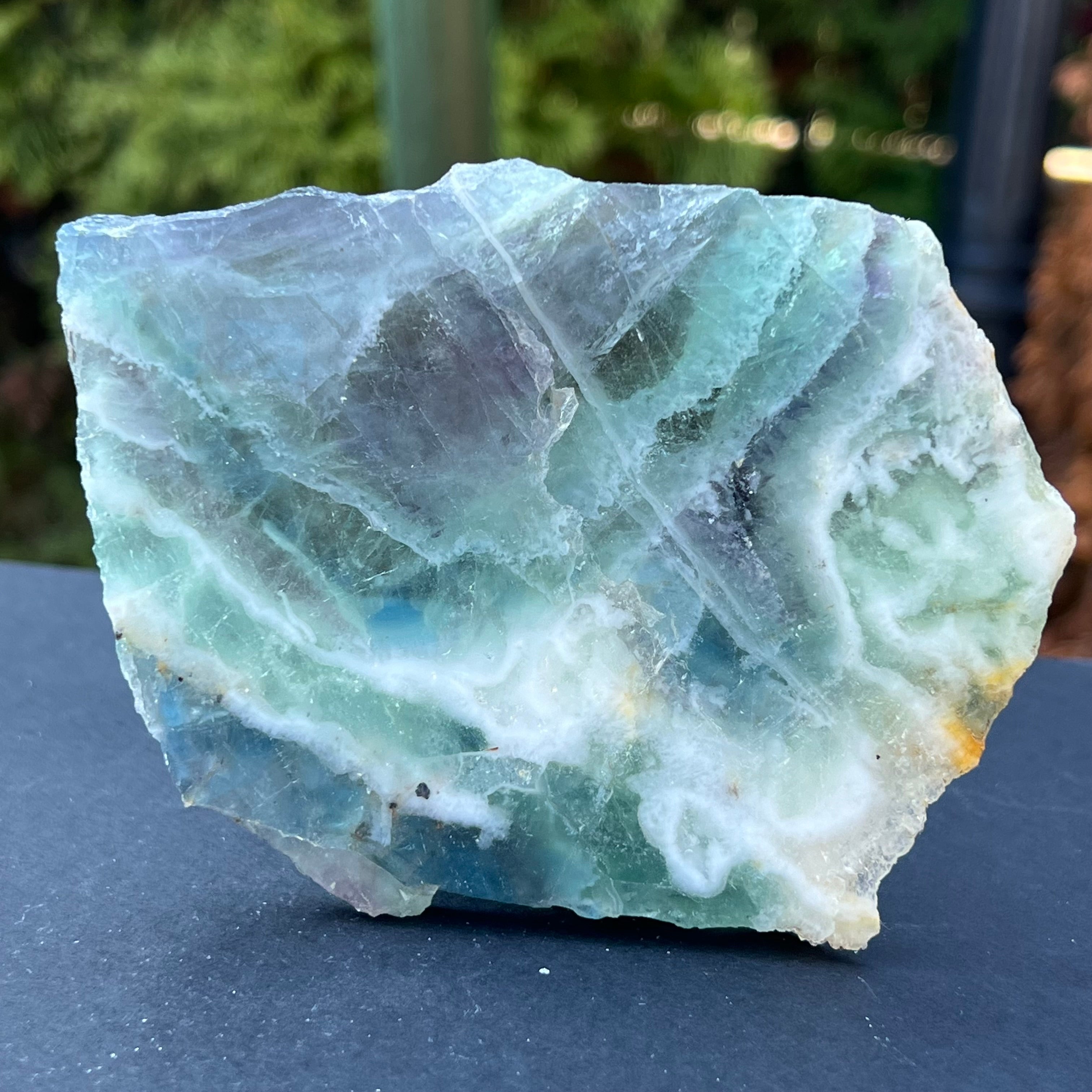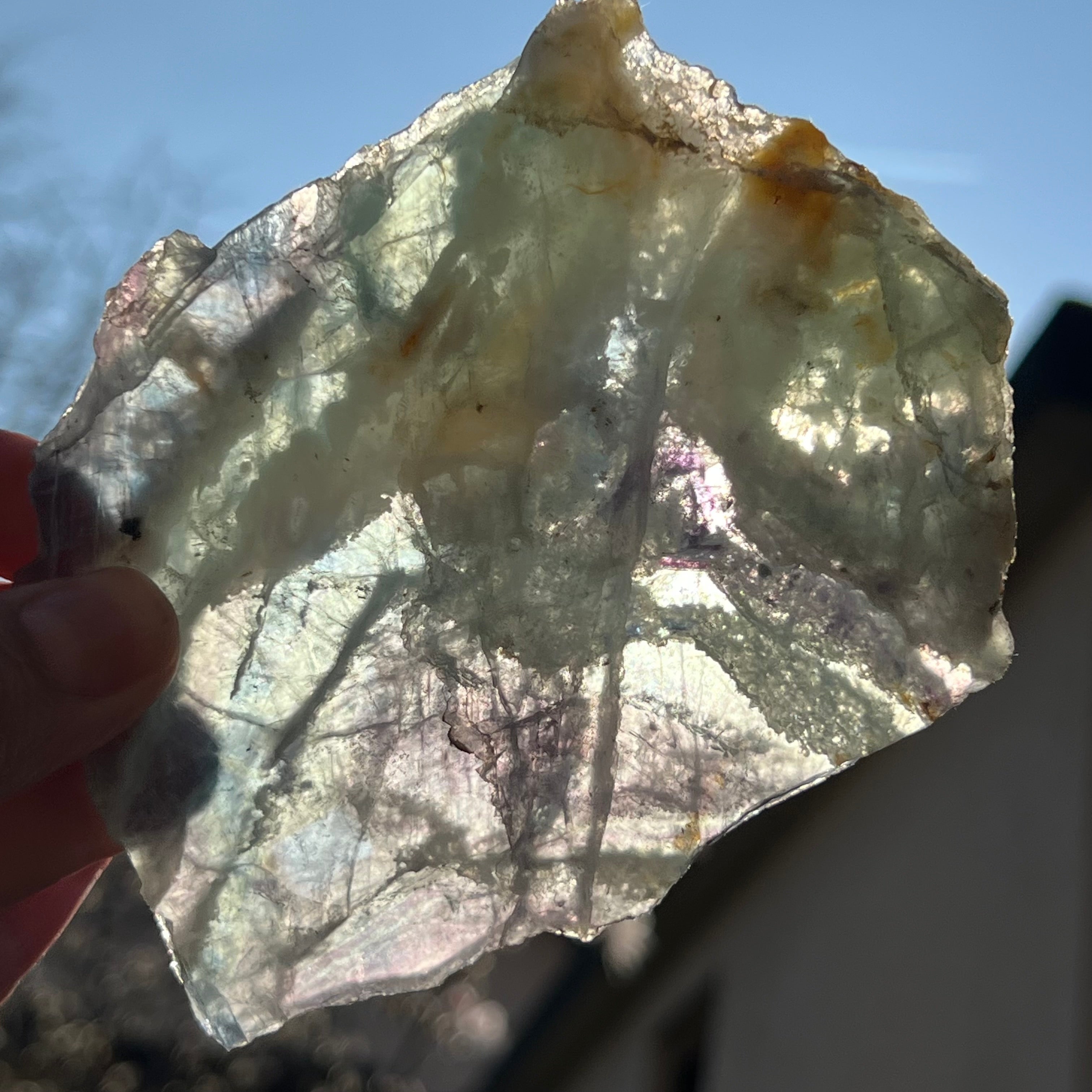 Флуоритен срез Rainbow модел 1, размер: 11,5 * 9 * 0,8 cm