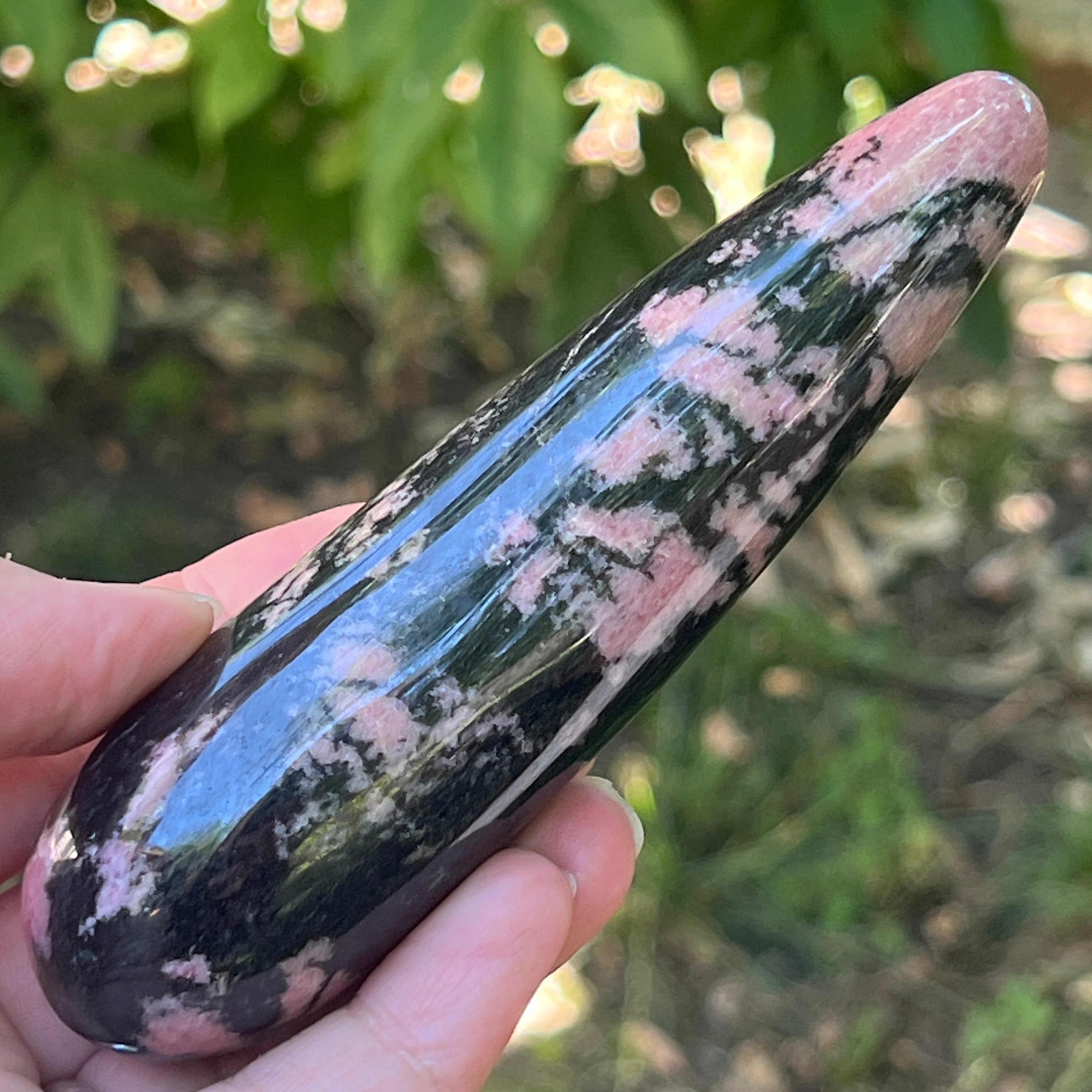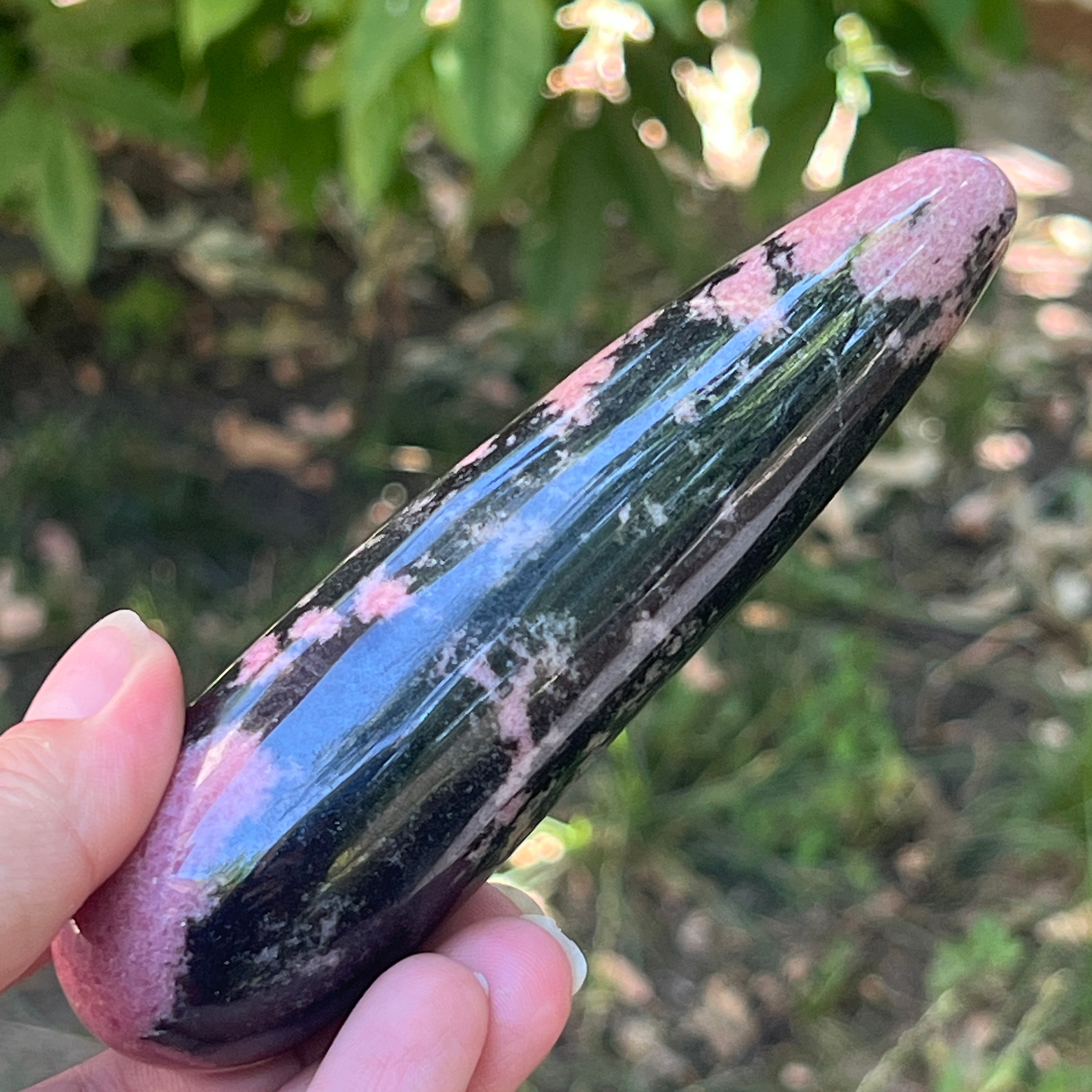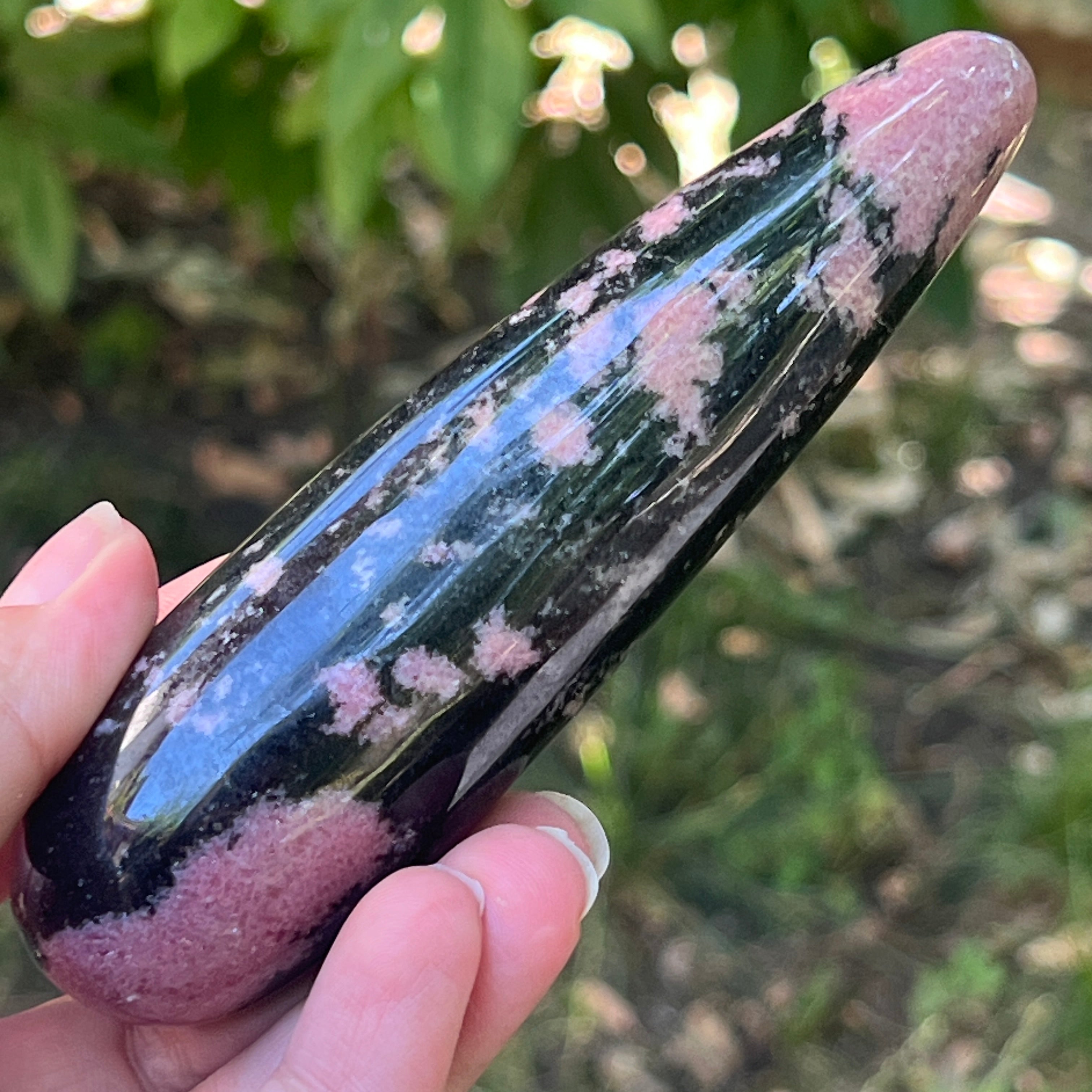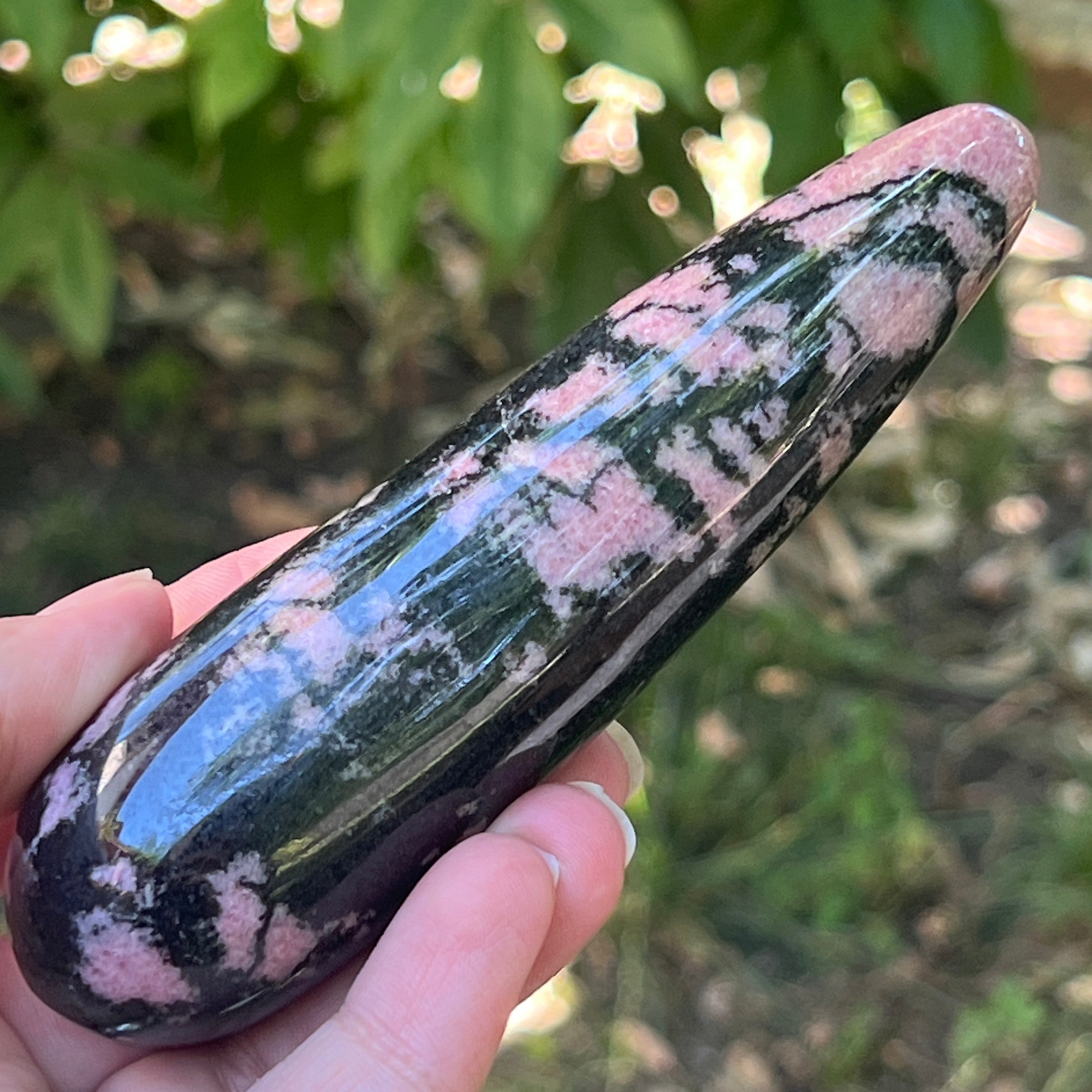Този камък най-често се свързва със сърдечната чакра и се използва за лечение на емоционални рани и освобождаване от миналото. Родонитът също се счита за камък на помирение и помирение.