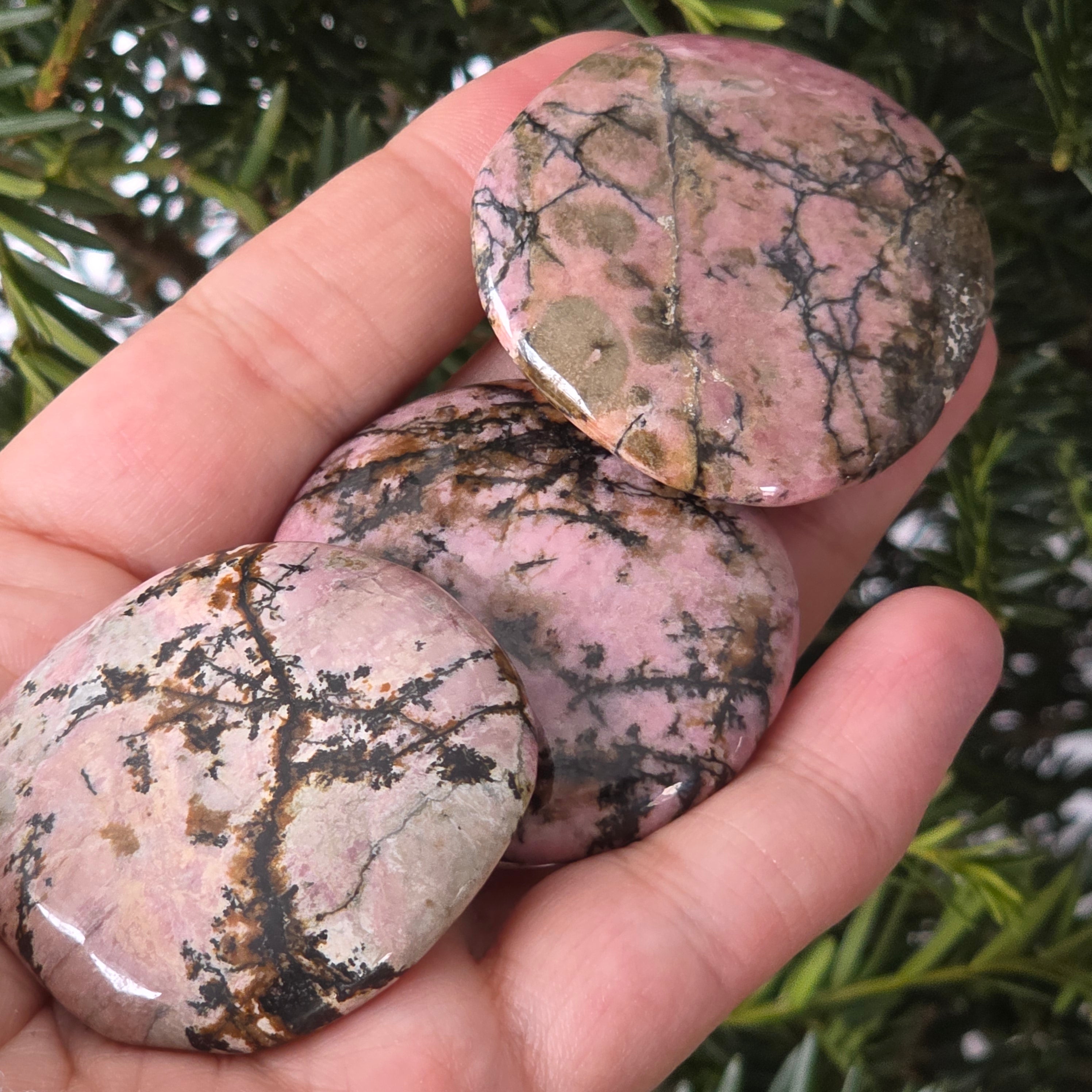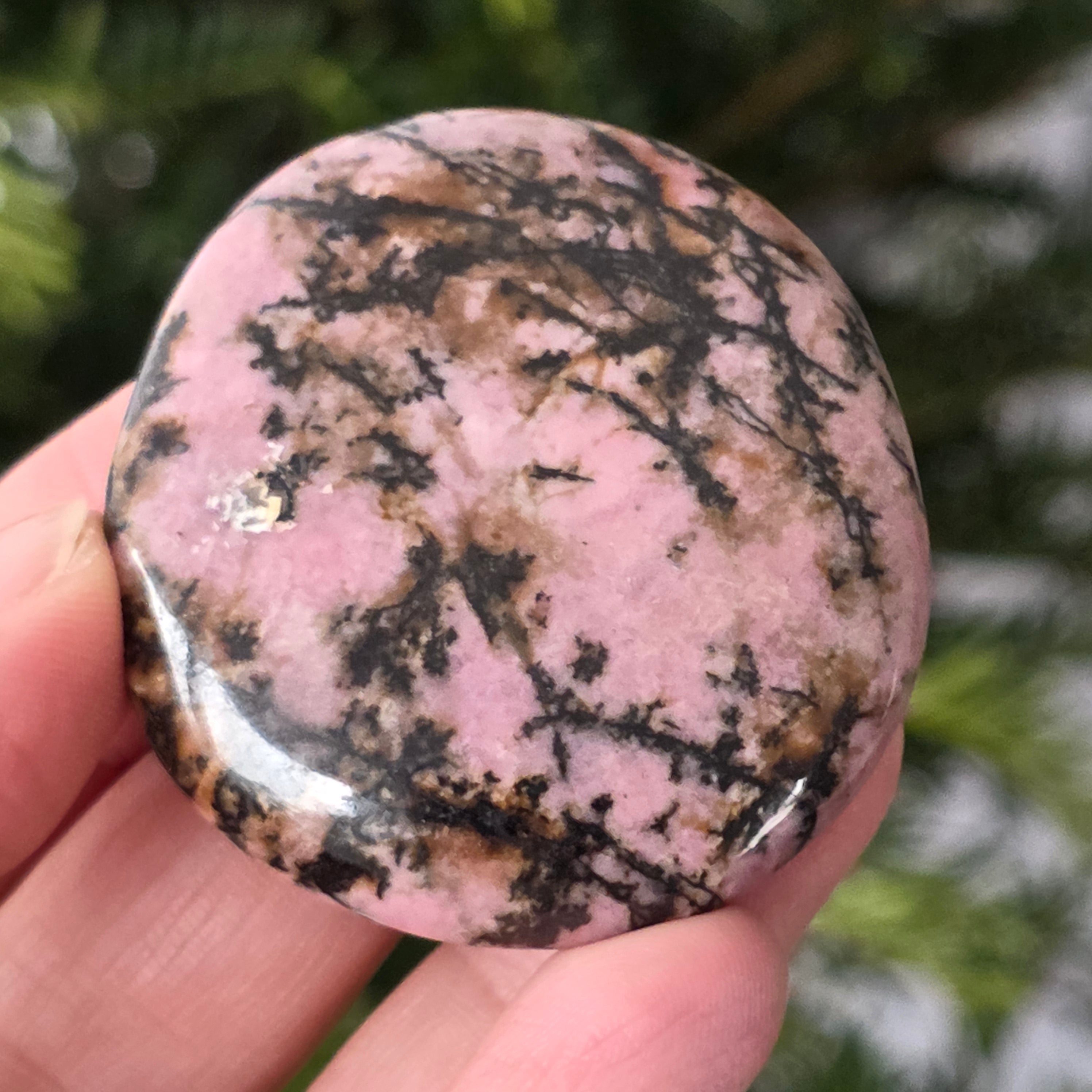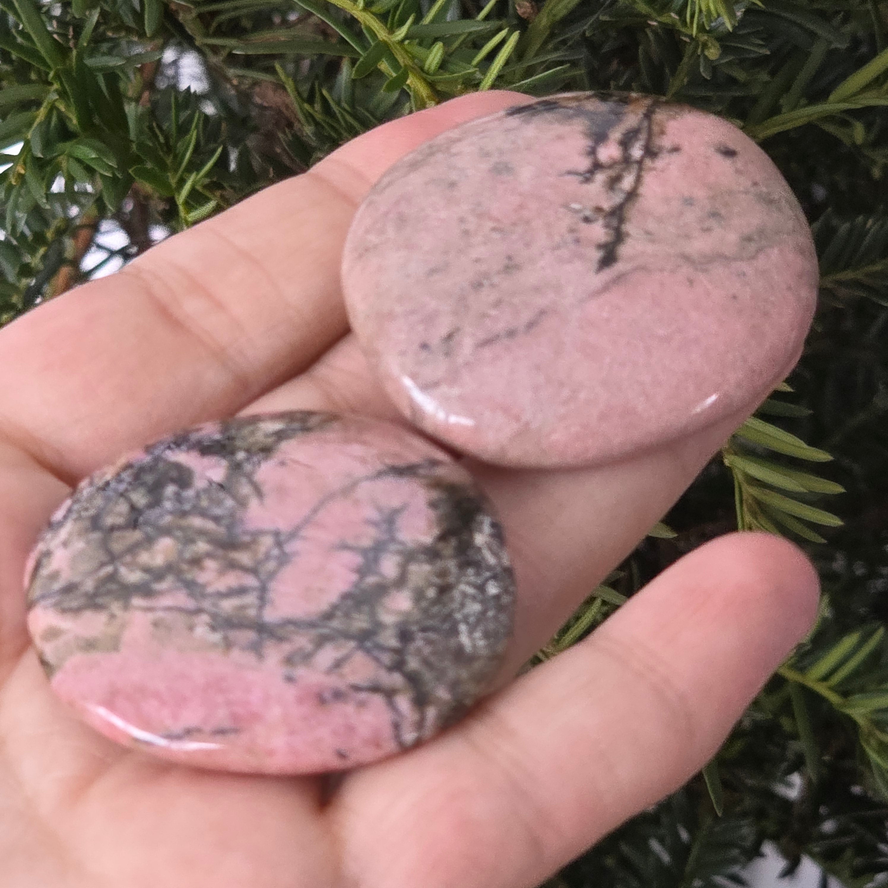 Палмов камък родонит, моля изберете желания размер. Цената се отнася за един брой.