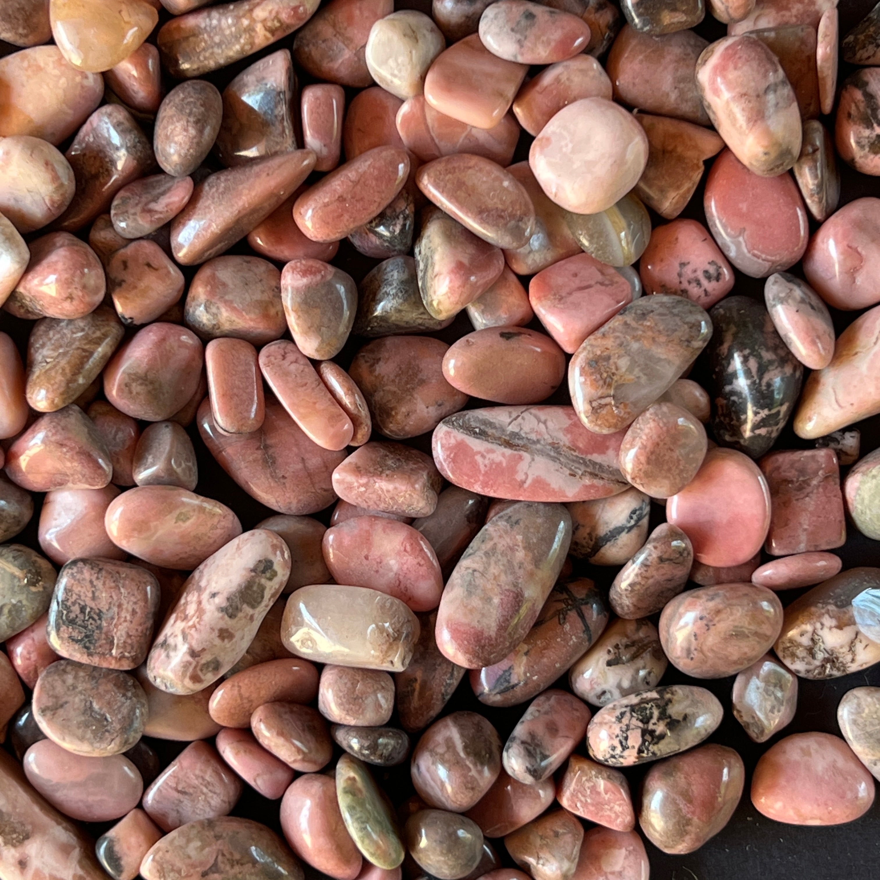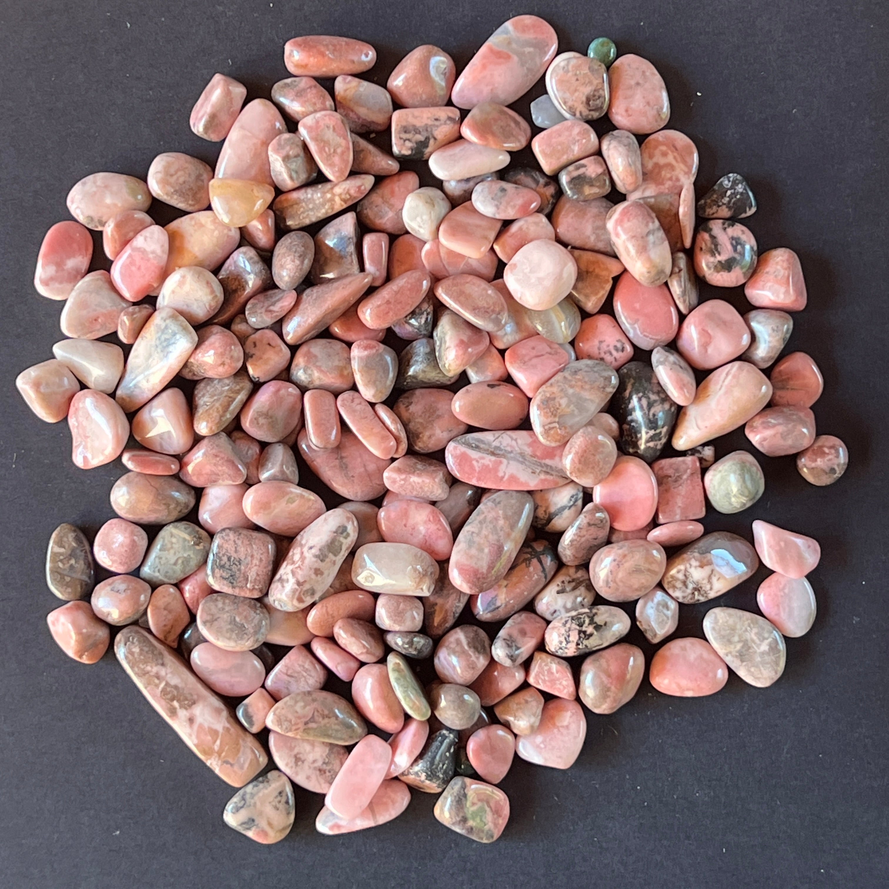 Родонит чипсове са естествени фрагменти от полускъпоценен камък, с интензивнорозови нюанси, вплетени с черни или кафяви вени, които създават уникален и завладяващ контраст. Тези парчета са подходящи за изработката на ръчно направени бижута – гривни, колиета или обеци – както и за креативни декорации или арт проекти. В кристалотерапията, родонитът е известен като камък на състраданието и емоционалния баланс, донасящ спокойствие и подпомагащ вътрешното изцеление. Чипсовете могат да се използват и в кристални решетки, енергийни торбички или като колекционерски елементи.